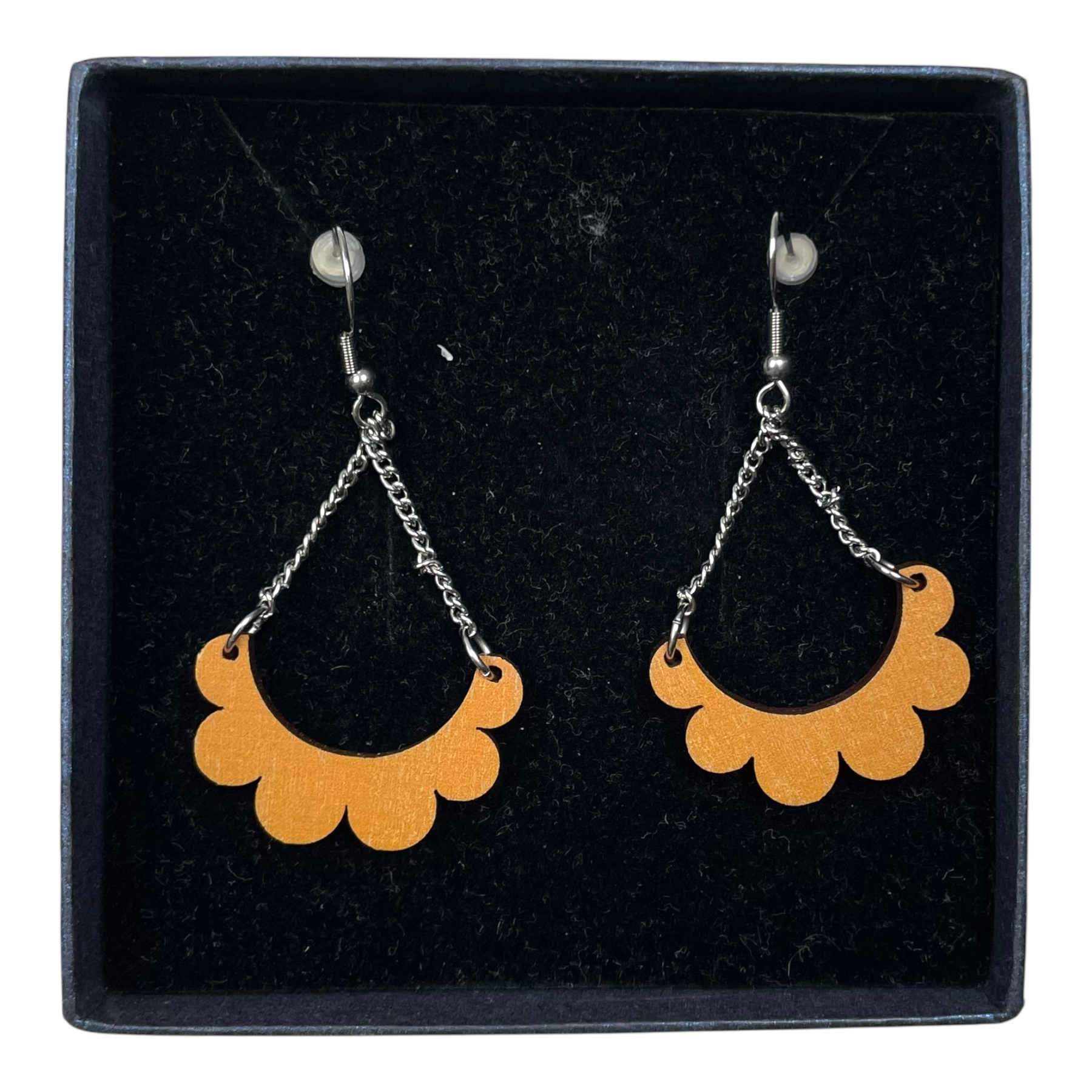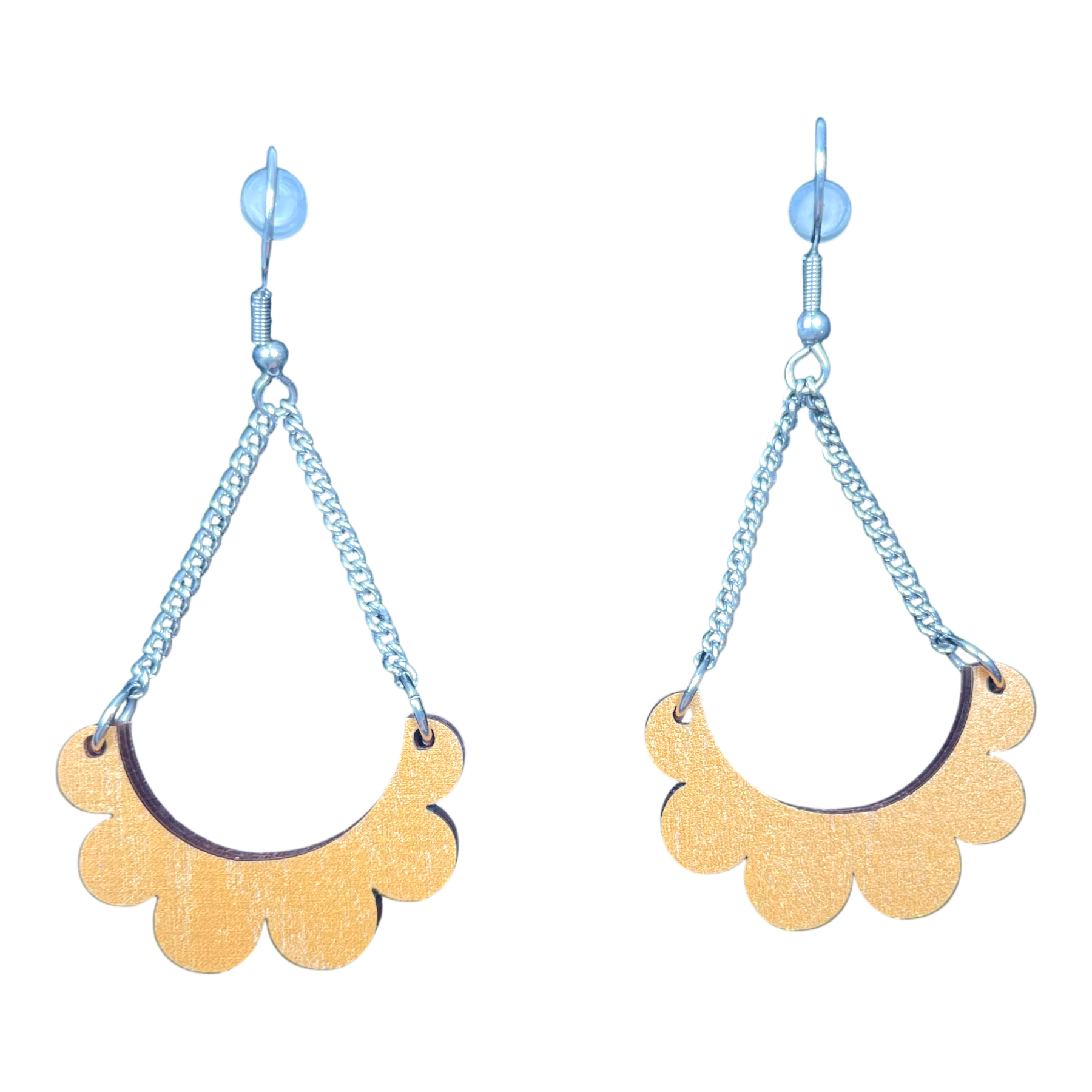Maanantaimalli Kaarella mini earrings. The wooden parts of the earrings are made from birch plywood, which is laser-printed and cut into shape in Helsinki. The earrings are assembled by hand in Turku. The metal parts are made from high-quality stainless steel, which are suitable even for those with nickel allergies