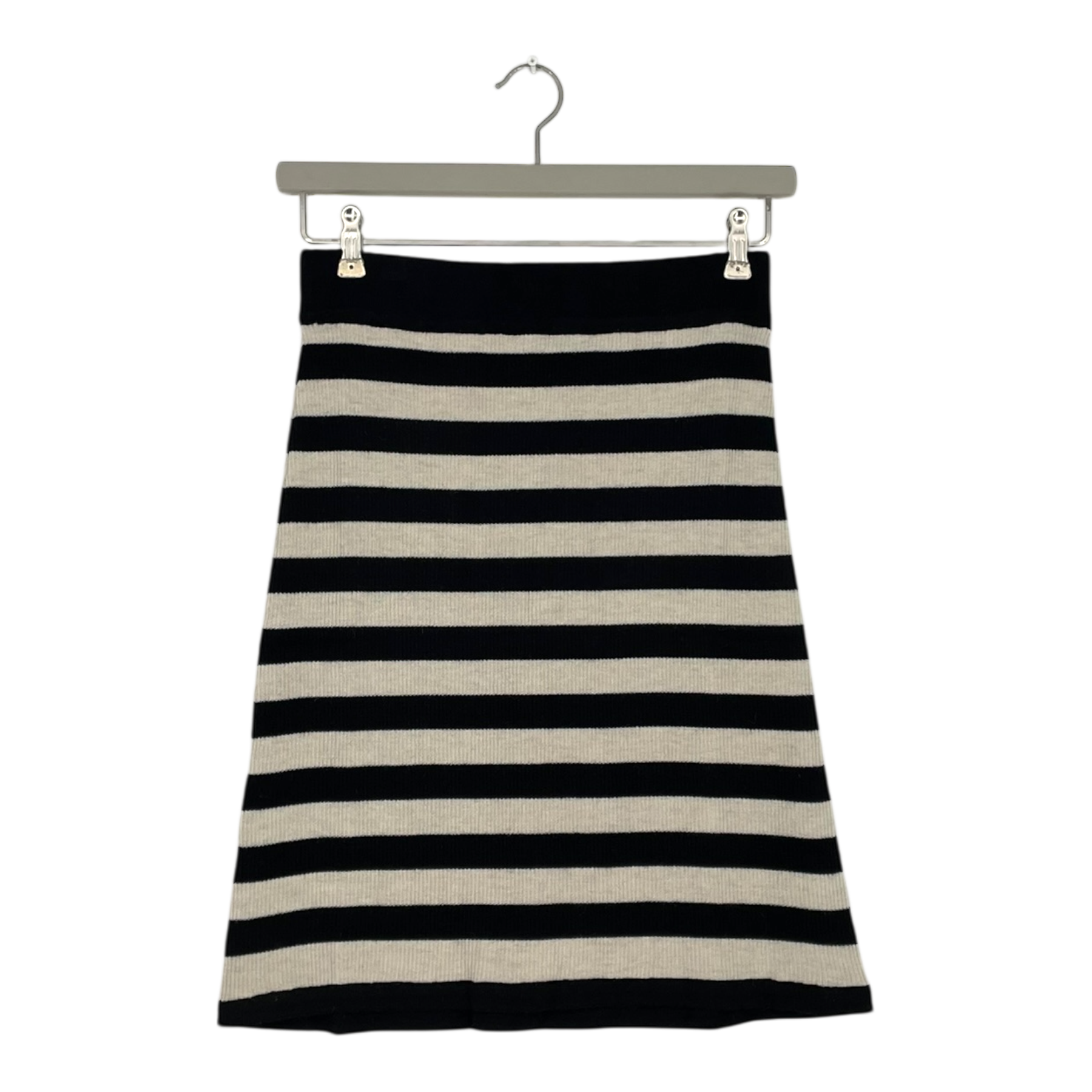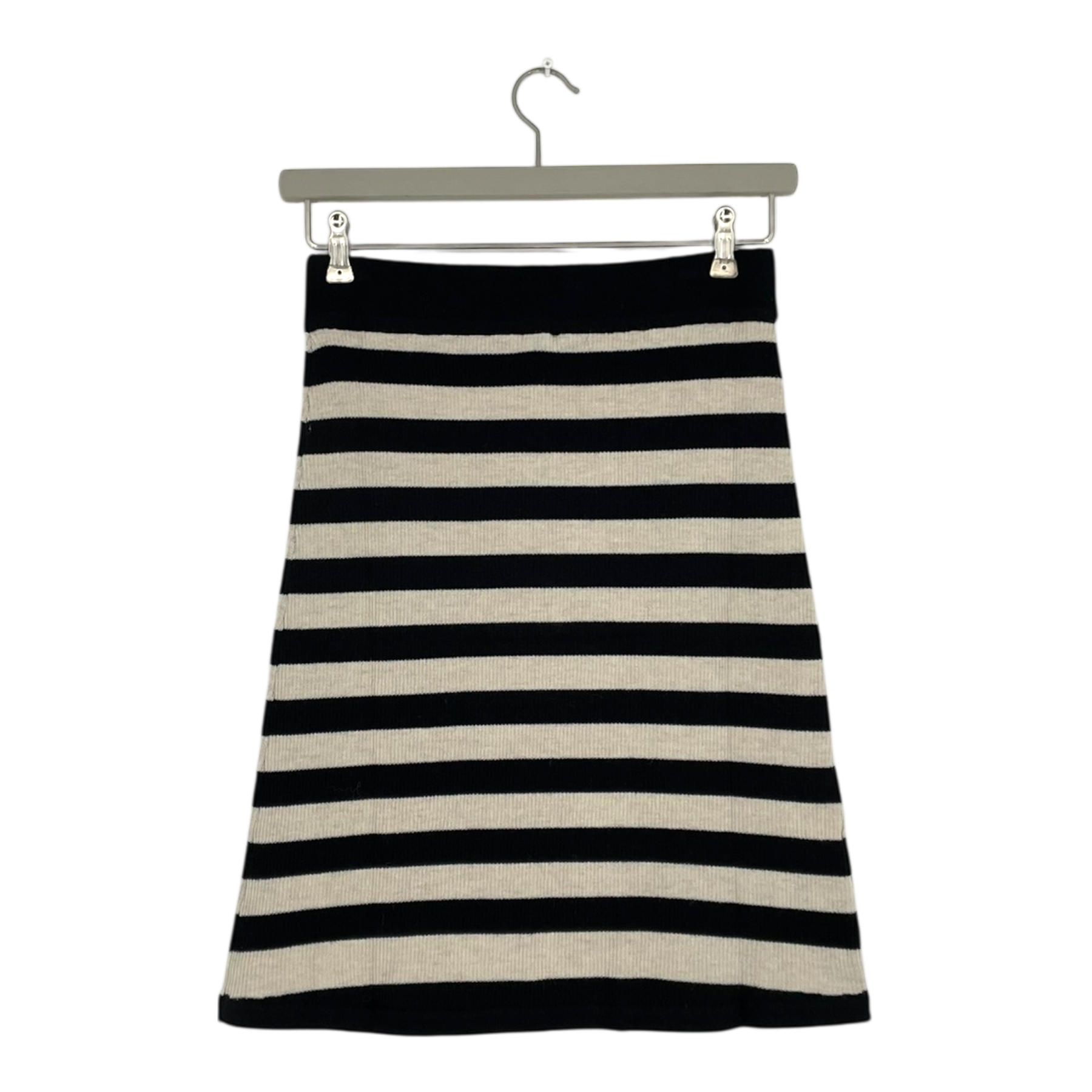 KARINFRAIDENRAIJ Sierra stripes knitted skirt. The skirt features an elastic waistband so it stays in place and is comfortable. The hem is slightly rounded and longer at the back, and the skirt falls to approximately knee‑length.