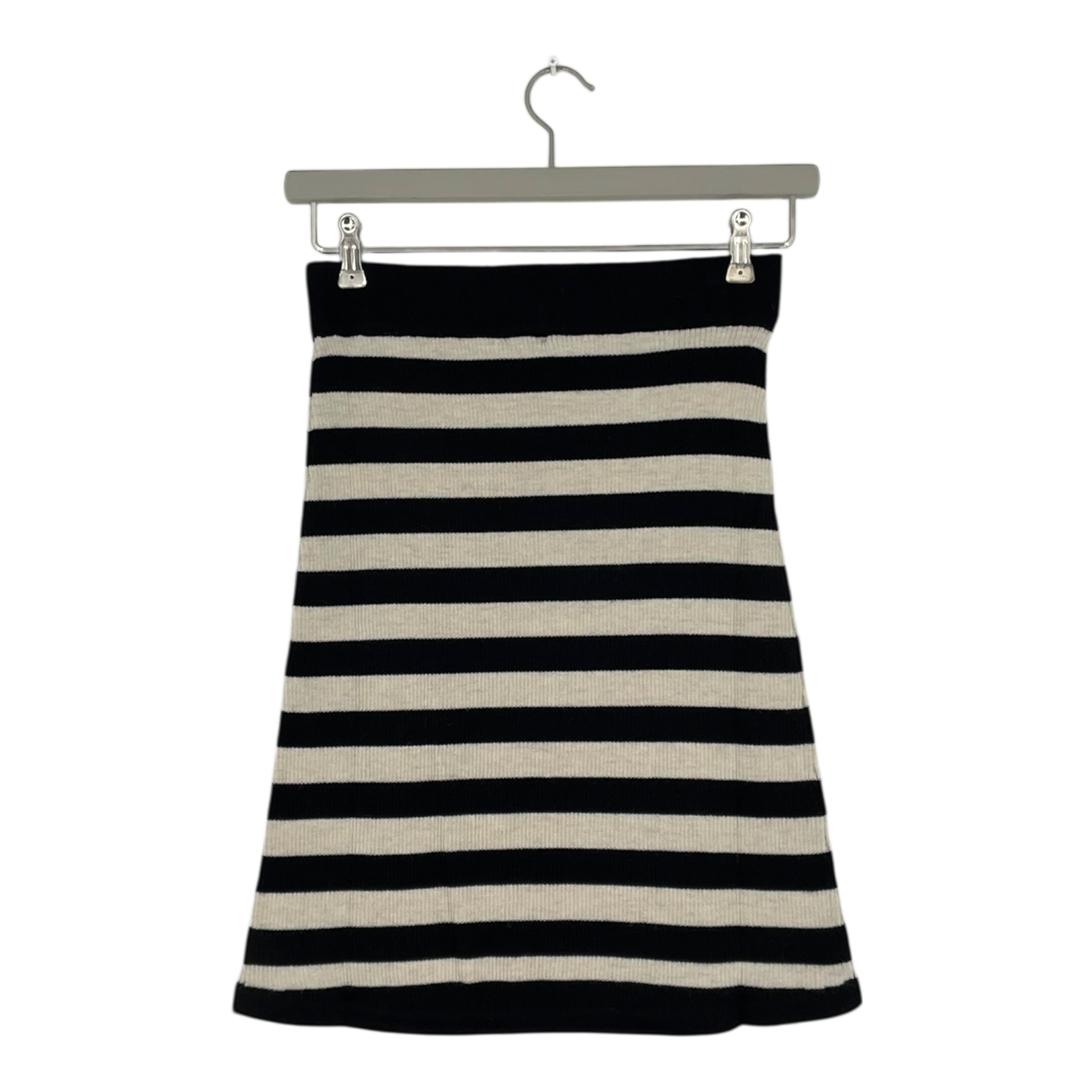 KARINFRAIDENRAIJ Sierra stripes knitted skirt. The skirt features an elastic waistband so it stays in place and is comfortable. The hem is slightly rounded and longer at the back, and the skirt falls to approximately knee‑length.