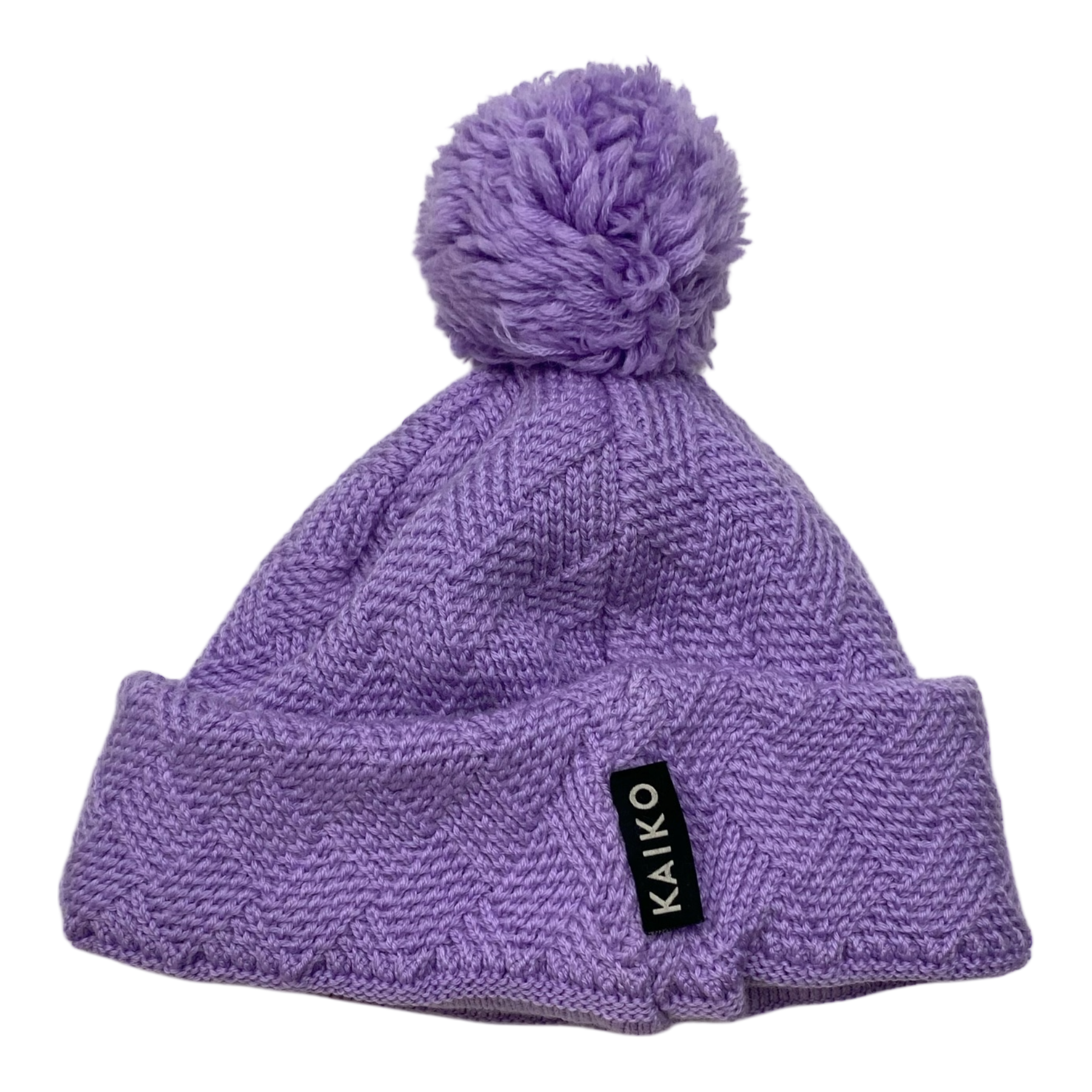 Kaiko’s grid beanie is detailed with a diamond patterned knit and adorned with a pom pom.