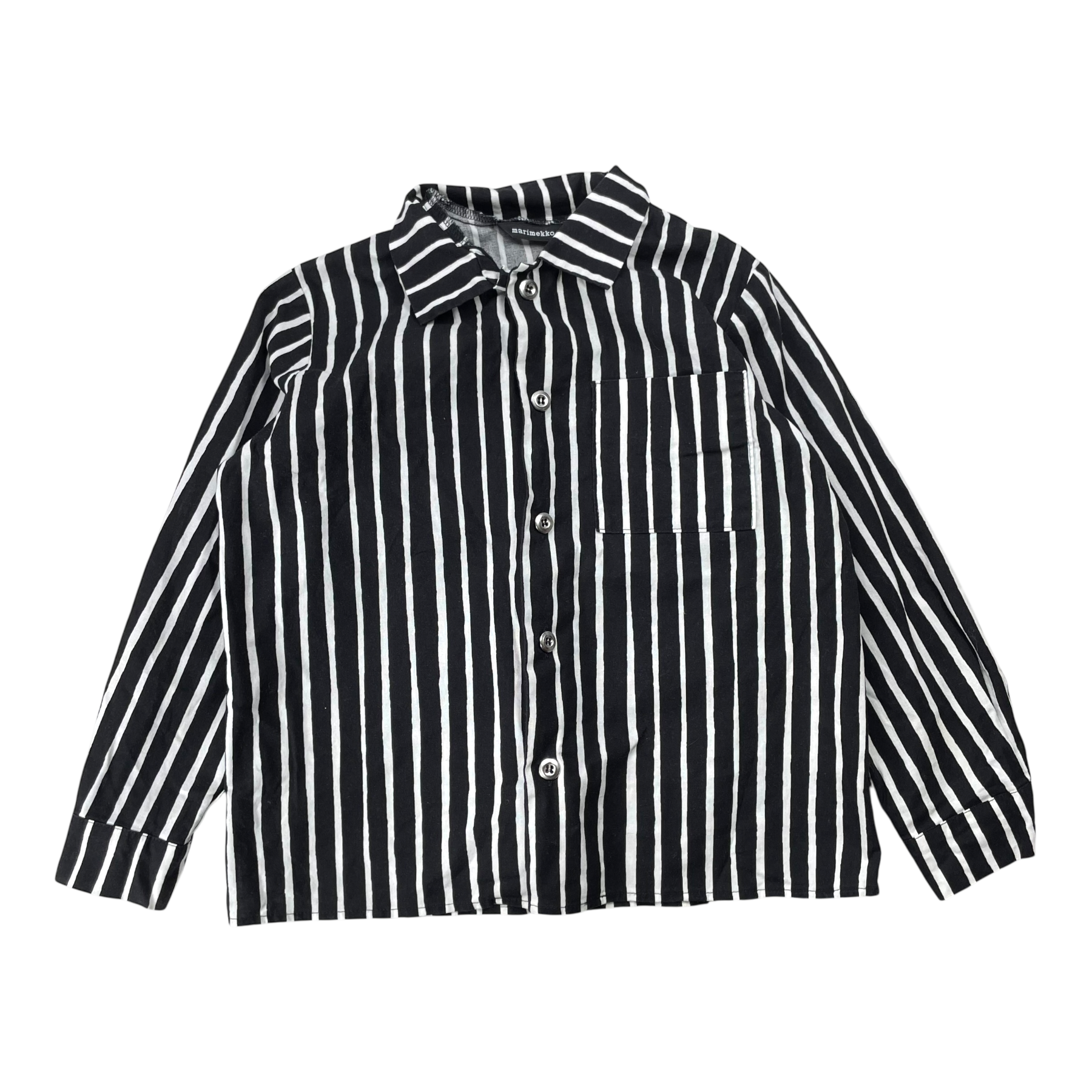 Marimekko long sleeve Jokapoika shirt in stripes print with metal buttons in the front.