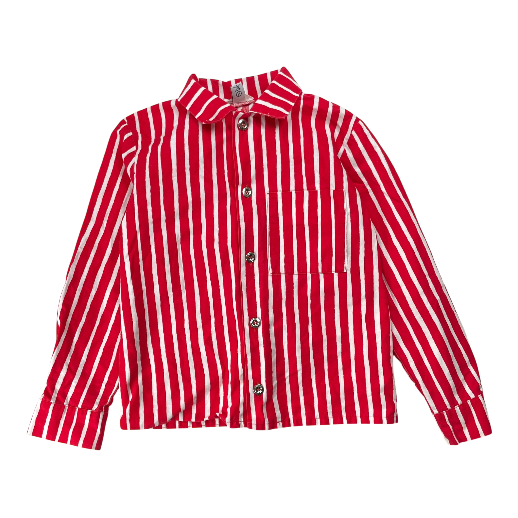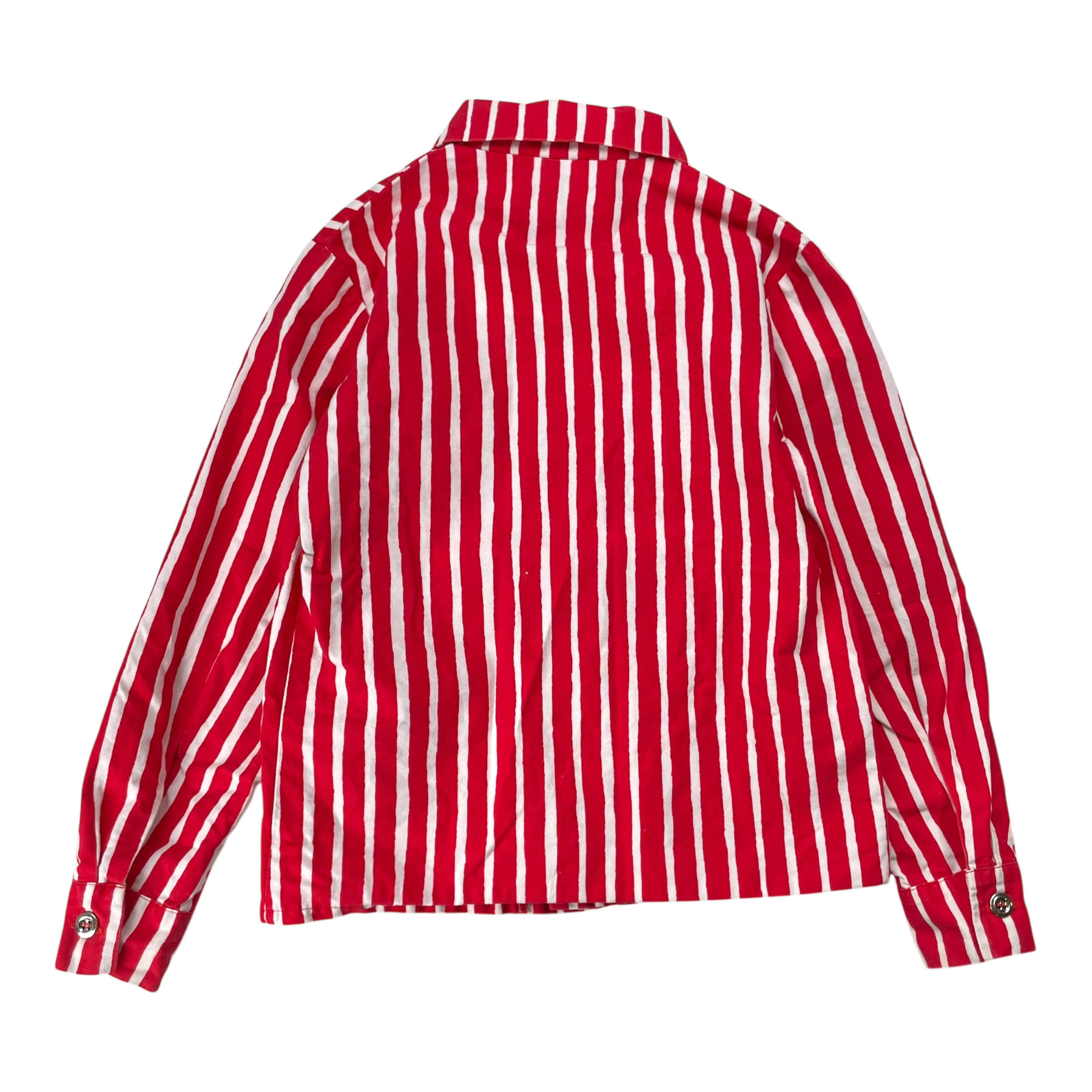 Marimekko long sleeve Jokapoika shirt in stripes print with metal buttons in the front.