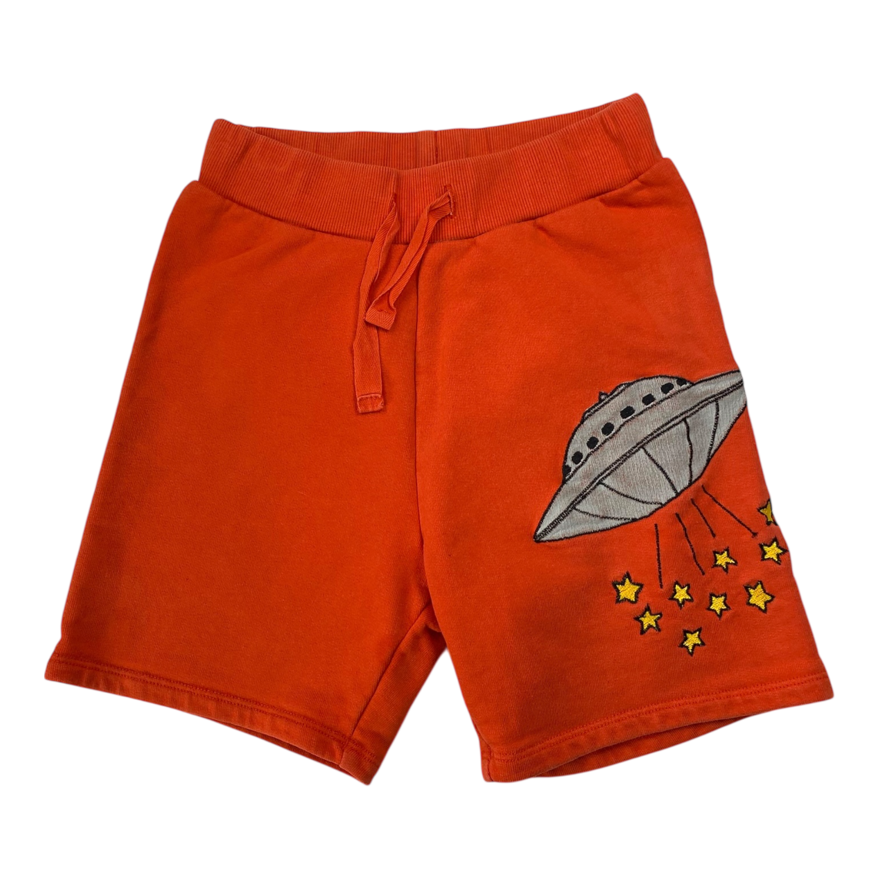 Mini Rodini sweat shorts with drawstrings to adjust the waist in space print.