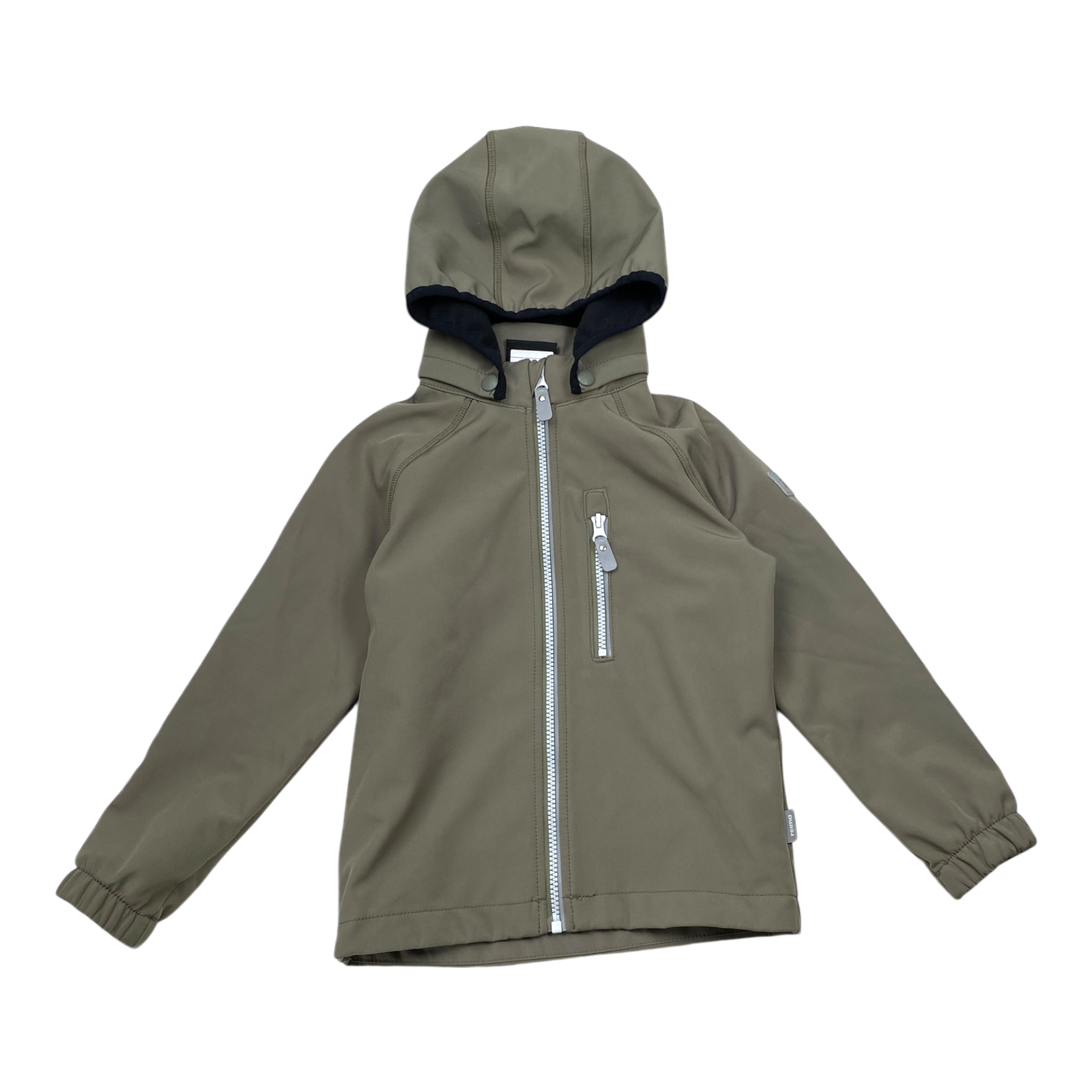 Reima Vantti softshell midseason jacket with detachable hood, zip pocket, and zip closure. The material is originally waterproof up to 10,000mm water column and windproof. The soft fleece on the reverse not only feels nice against the skin but warms too.