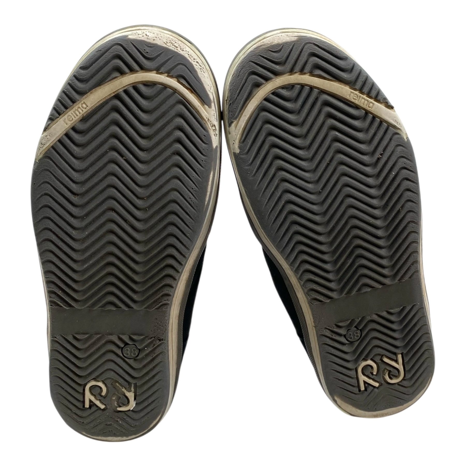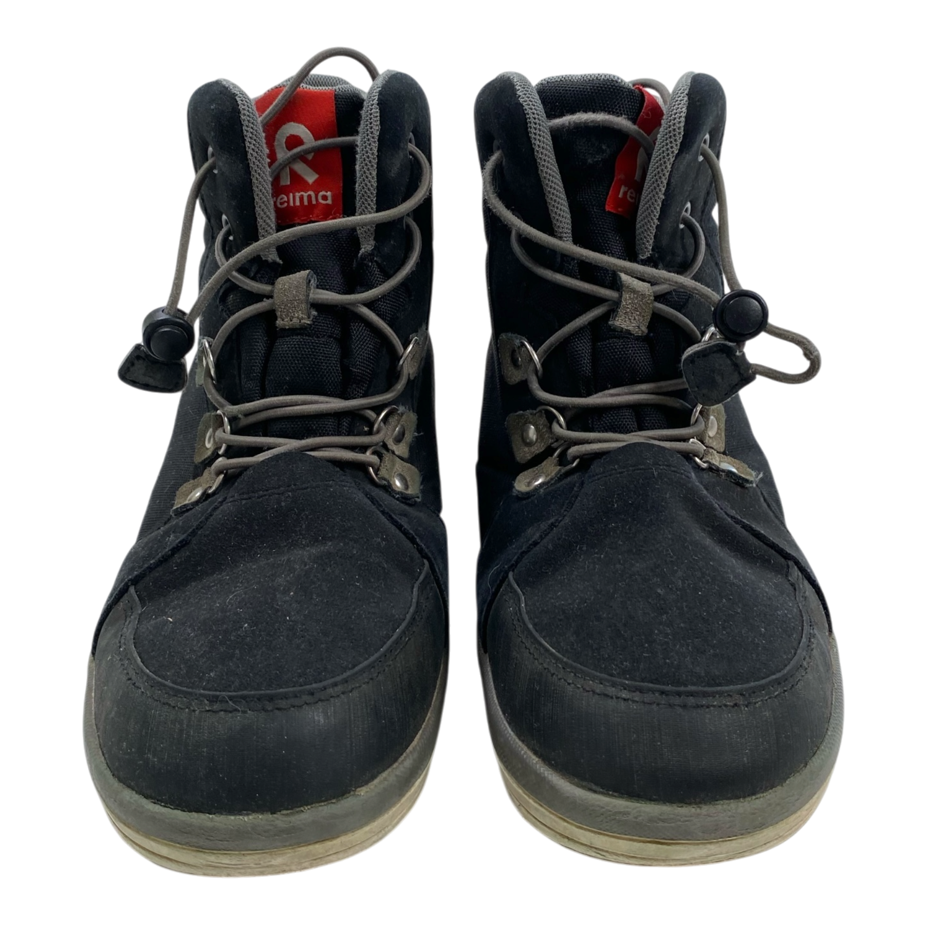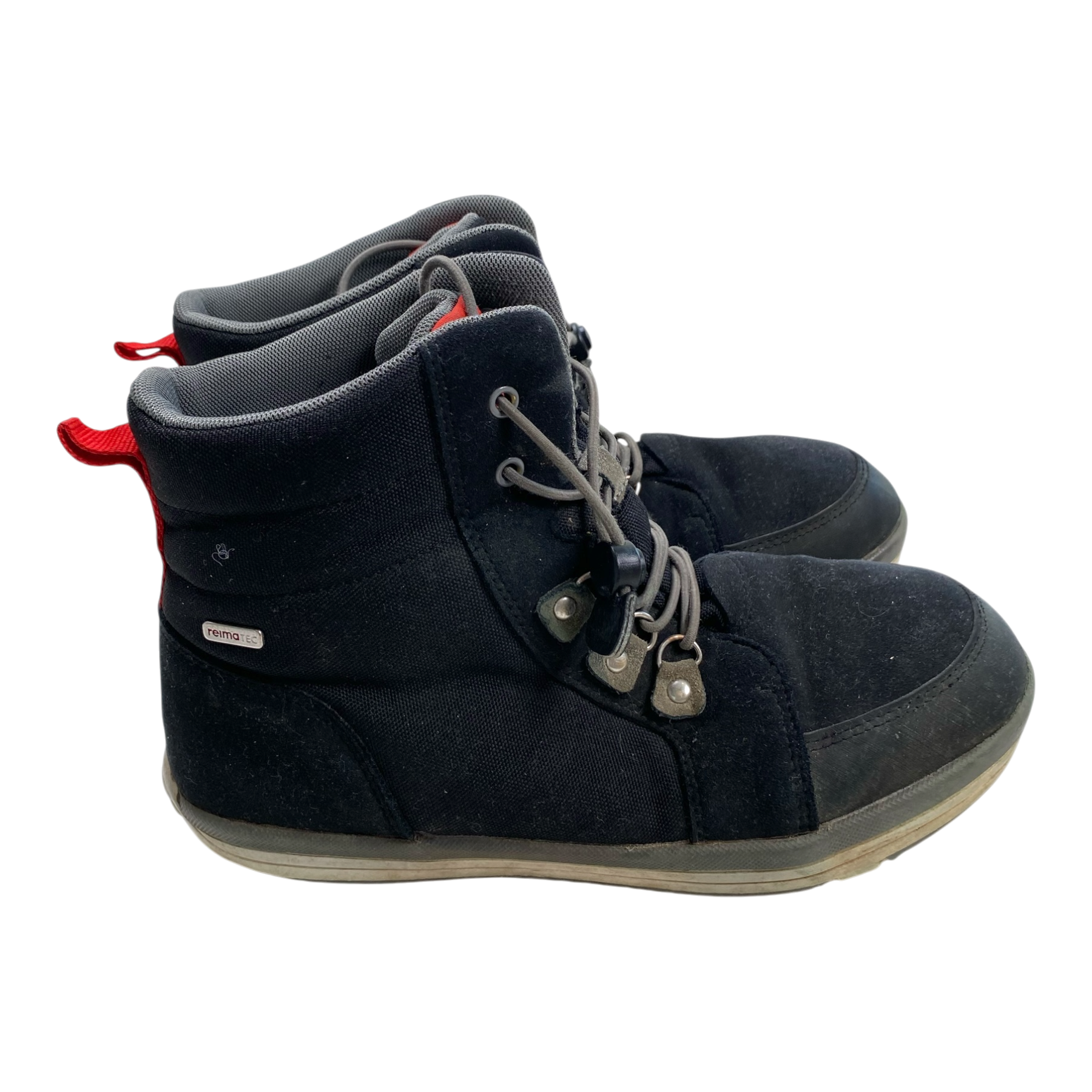 Reima Wetter waterproof boots for kids are equipped with a seam-sealed insert and mesh lining. The upper is made from a durable textile and the toes are reinforced with synthetic material. These boots for kids also come with easy-to-use elastic laces.