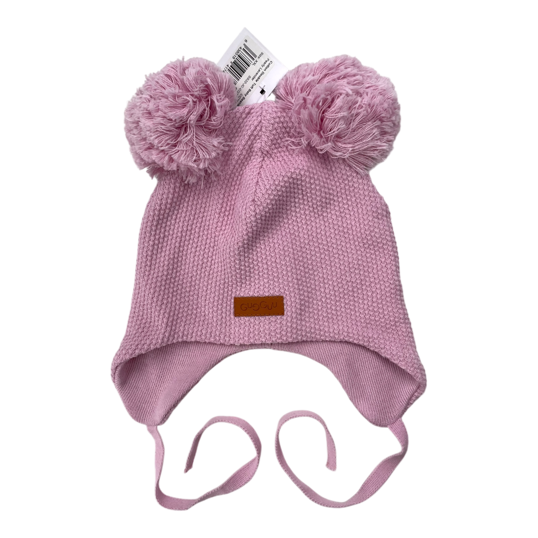 Gugguu knit cotton 2 pom beanie, pink | 56/57cm