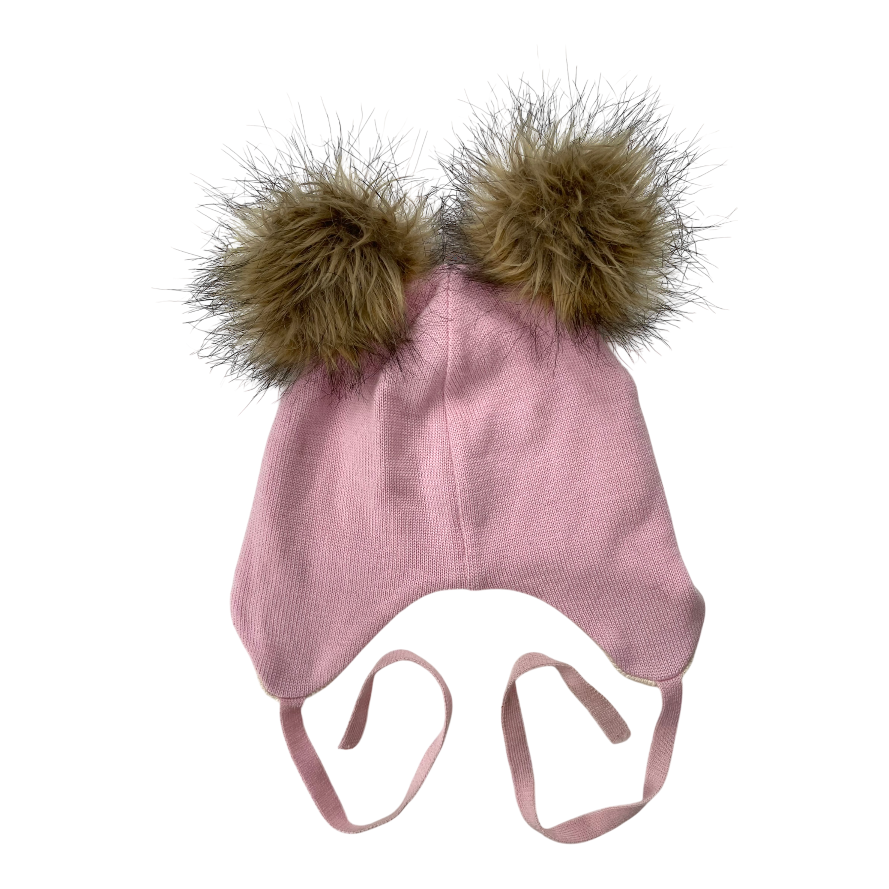 Gugguu merino wool beanie with two furry poms.