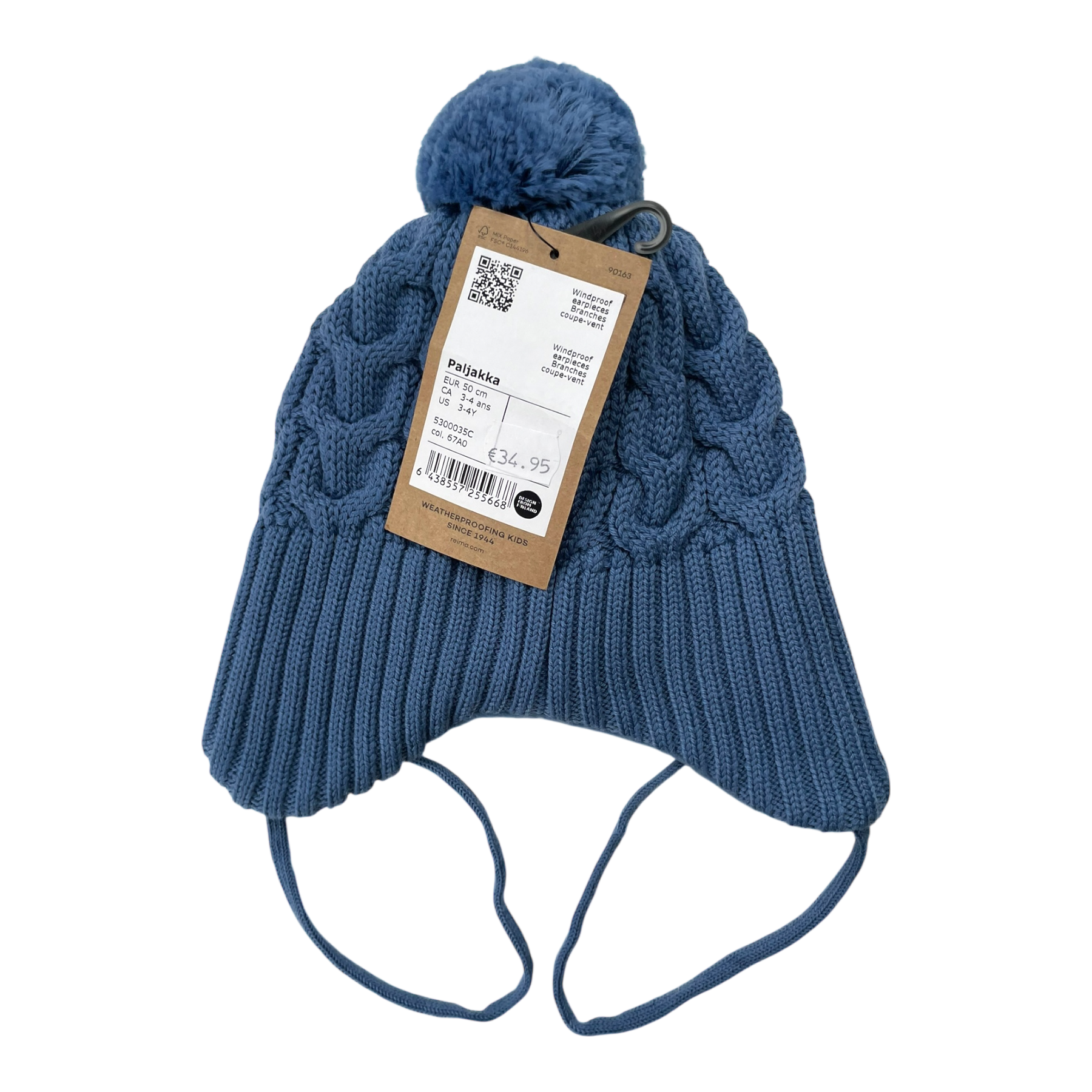 Reima Paljakka beanie with pom and ear-covering, string closure.
