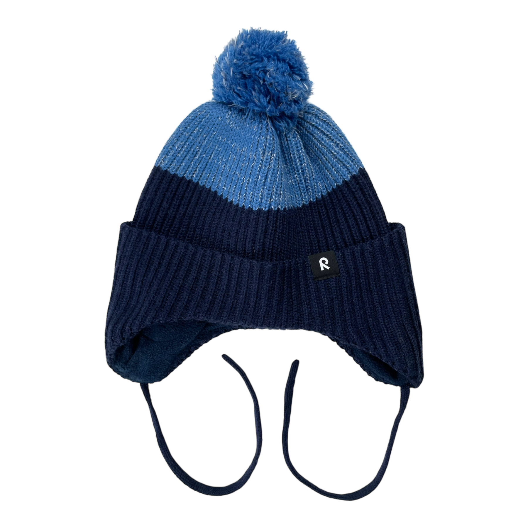 Reima Pilkotus beanie with string closure, pom pom on top and partly reflective yarn. The product tag is cut off.