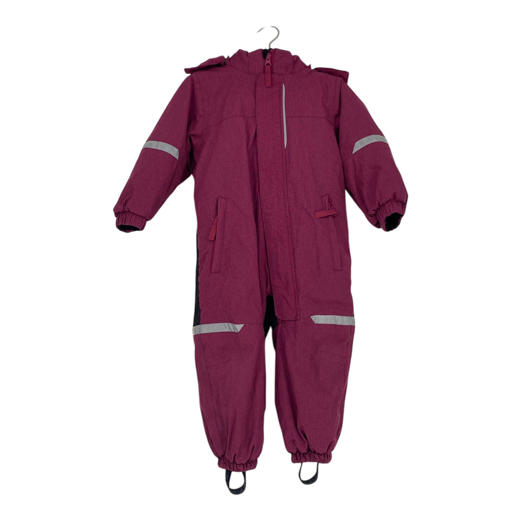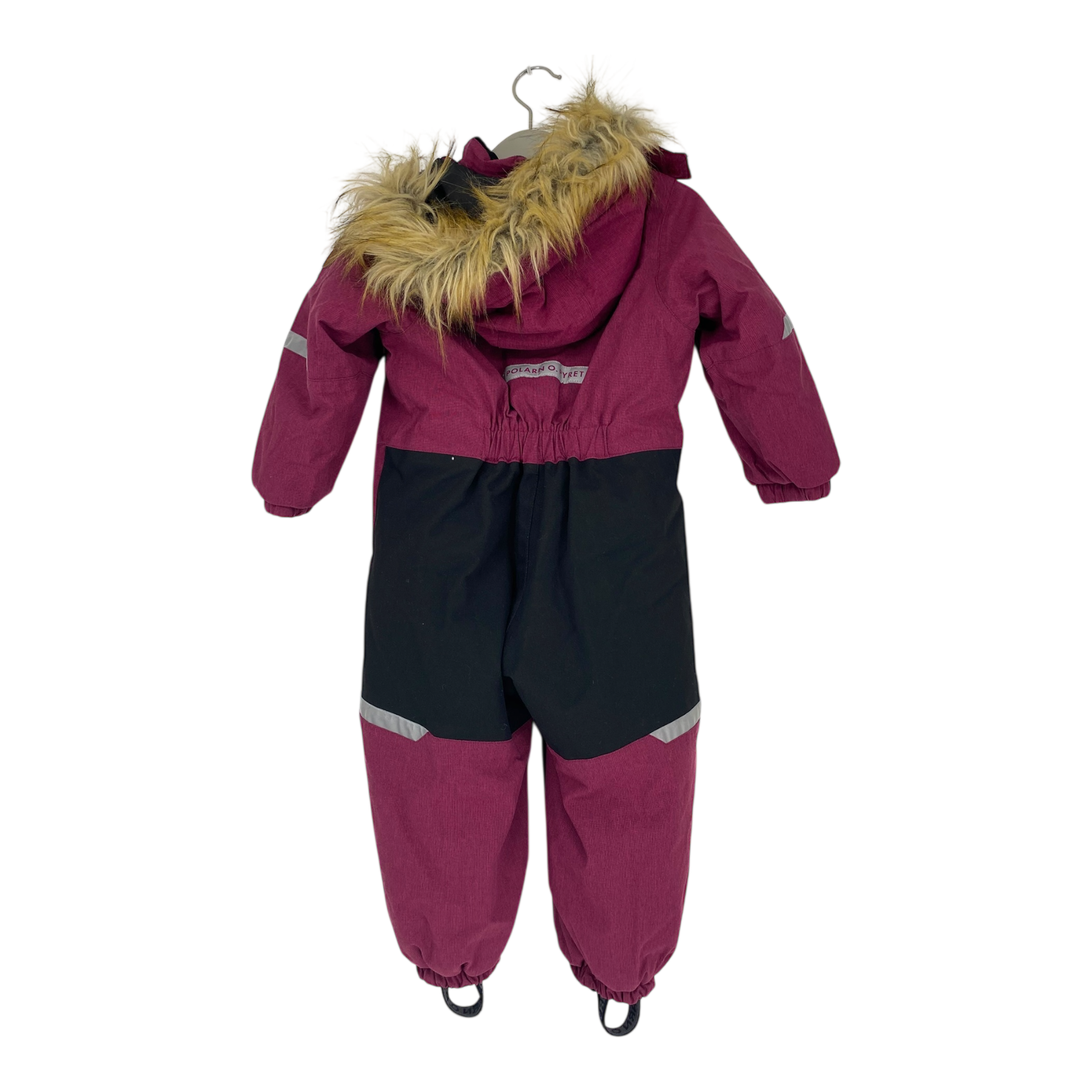 Polarn O. Pyret padded winter overall with detachable faux fur hood, long zip closure, stirrups and reflective details. The material is originally water- and windproof.
