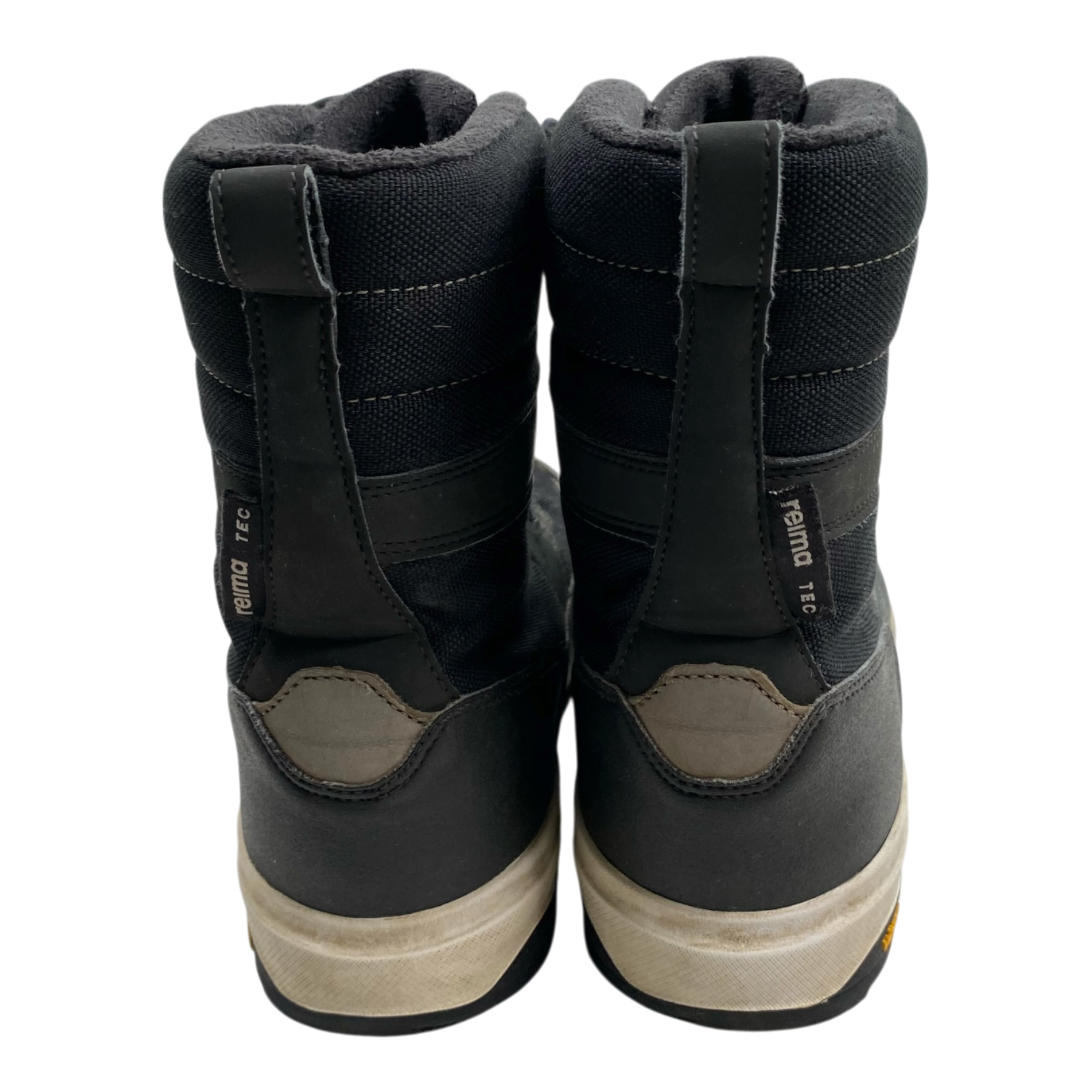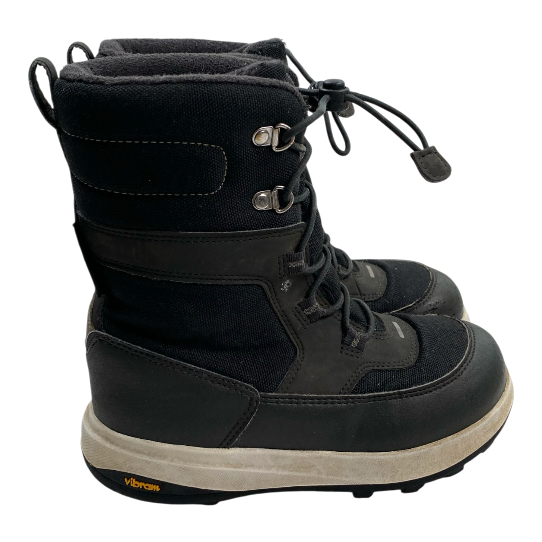 Reima kids' Laplander Arctic Grip winter boots has rubber sole and elastic lacing. Originally waterproof Reimatec boots are made of synthetic textile material and is equipped with a waterproof sealed insert, a warm fleece lining and very warm insulation.