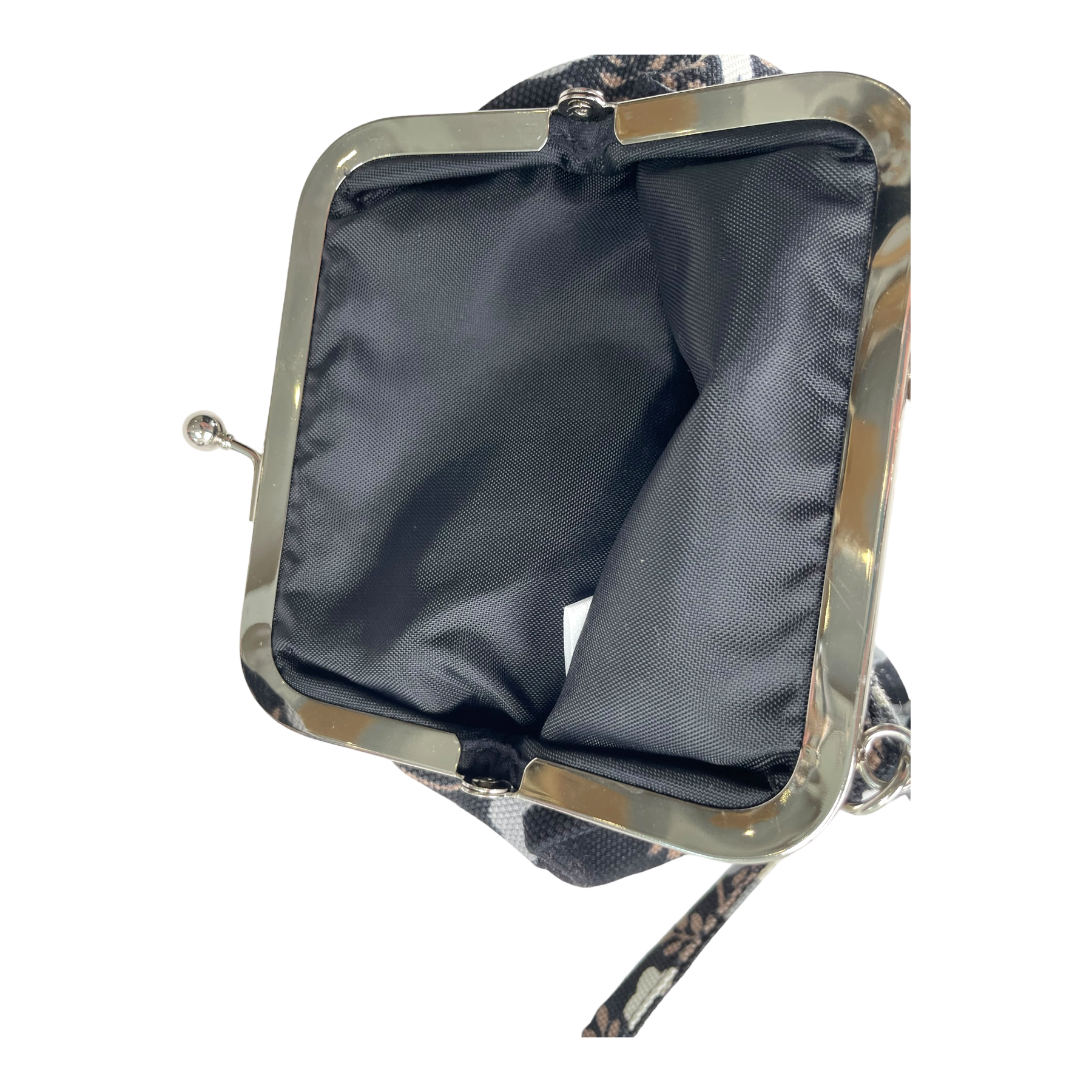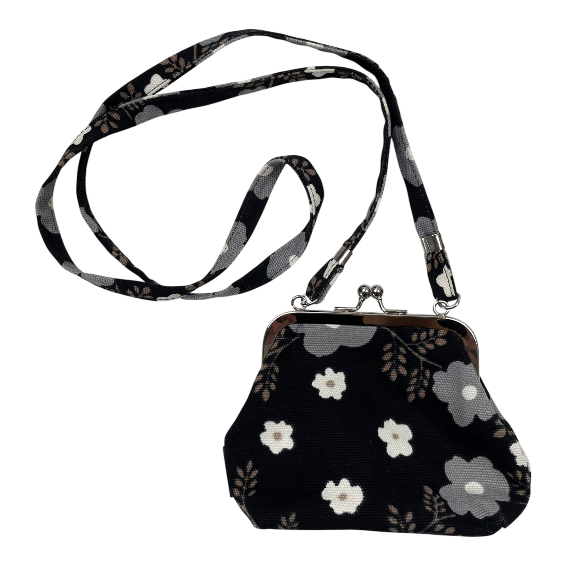 Marimekko classic crossbody bag/ purse in a flower print with kiss lock closure.