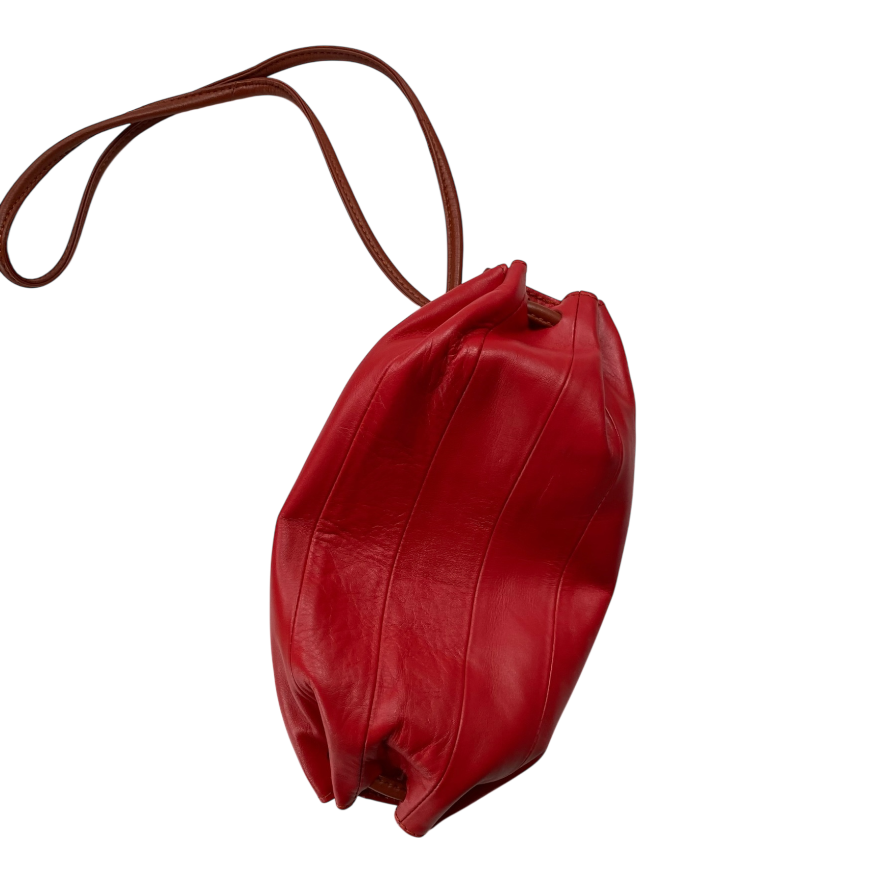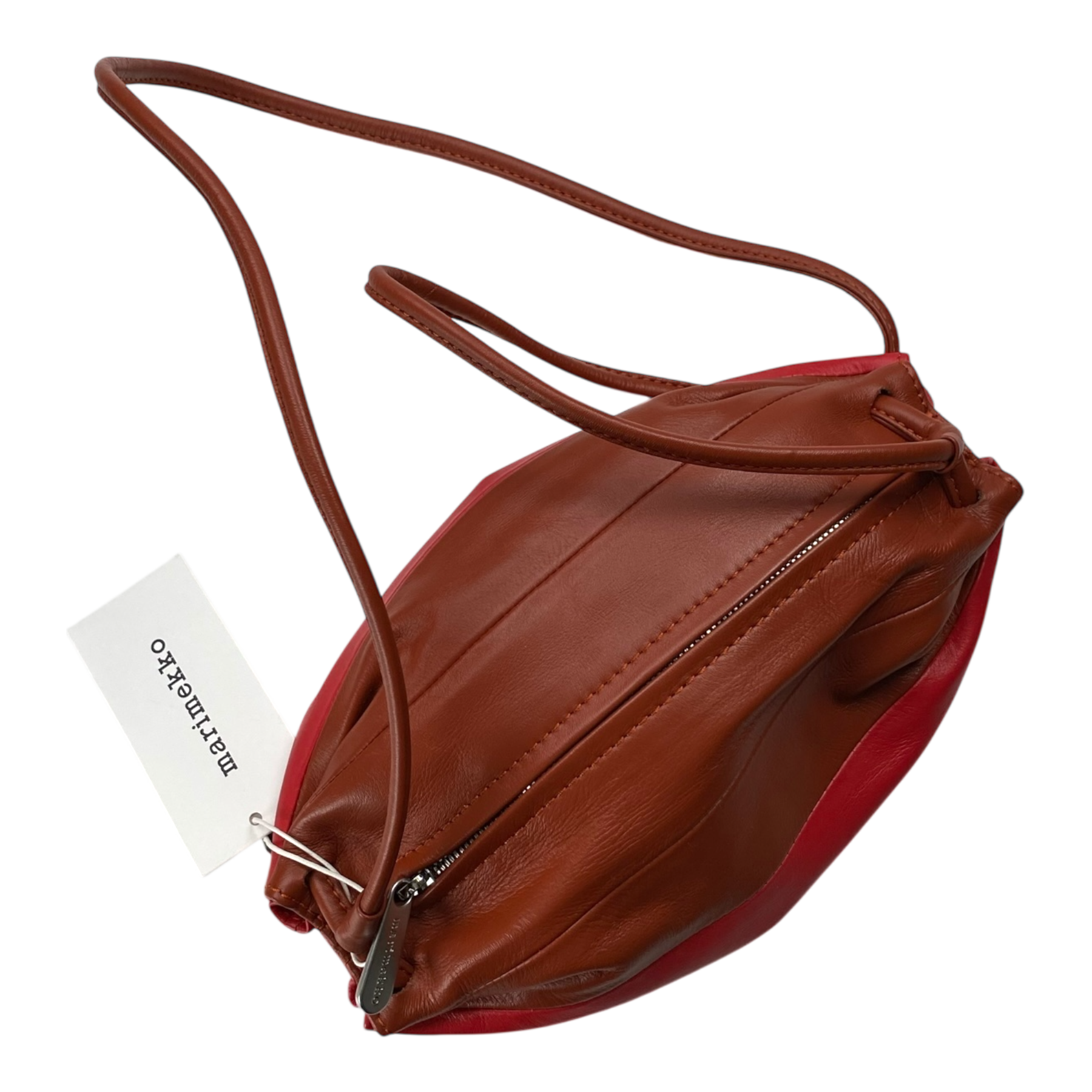 Marimekko Karla bag has become a real classic. This all-time favorite and collector's item in the bag world has inherited its sweet shape from candy paper. There is a zipper and a smaller zipper pocket in the inside. The bag comes with the original dust bag. Size 26 cm x 9 cm x 13 cm.