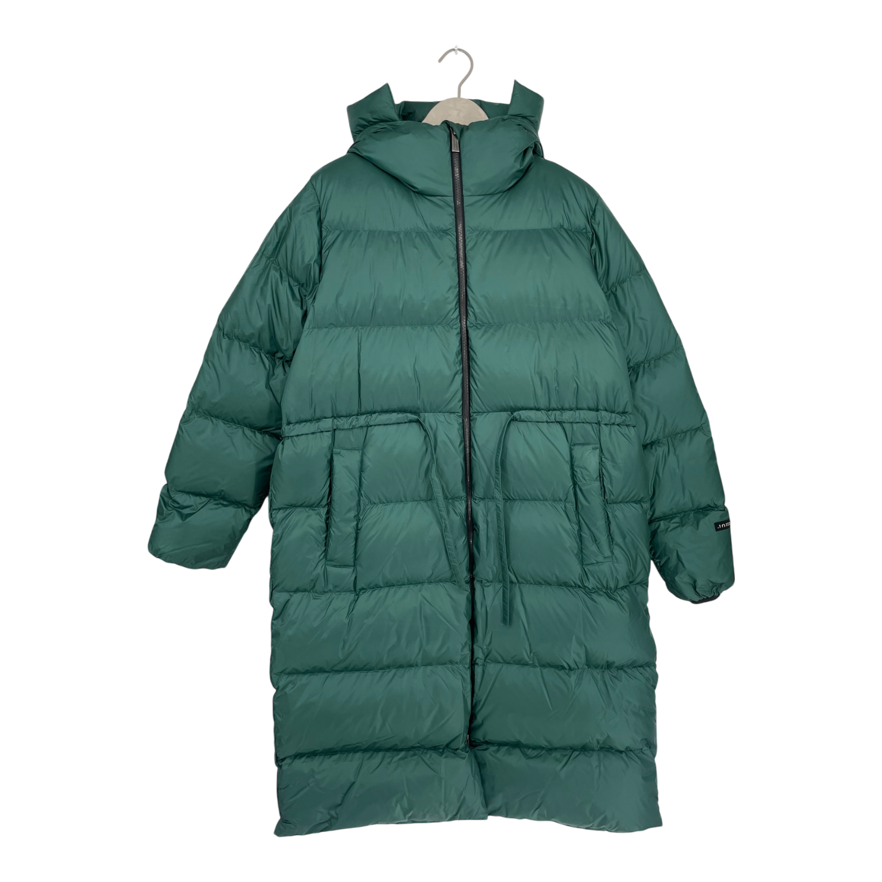 Joutsen Estrid jacket is perfect for colder weathers. Long, dreamy light and soft down jacket has drawstring on the waist so you can easily change its look from a straight to one that hugs the figure. Waistline is thoughtfully placed to beautifully flatter different body types. Estrid jacket has also hood and two zipper pockets.