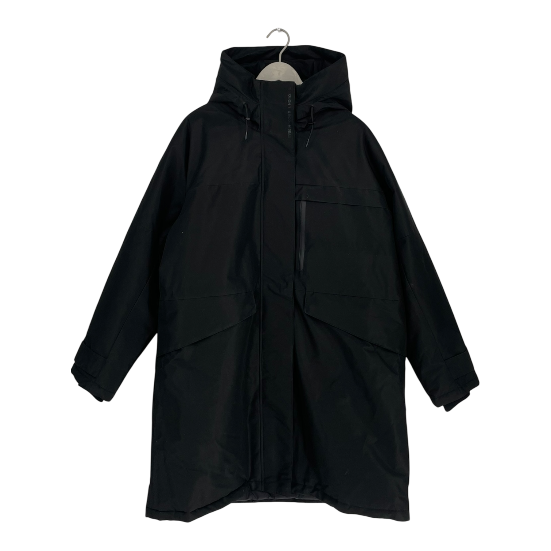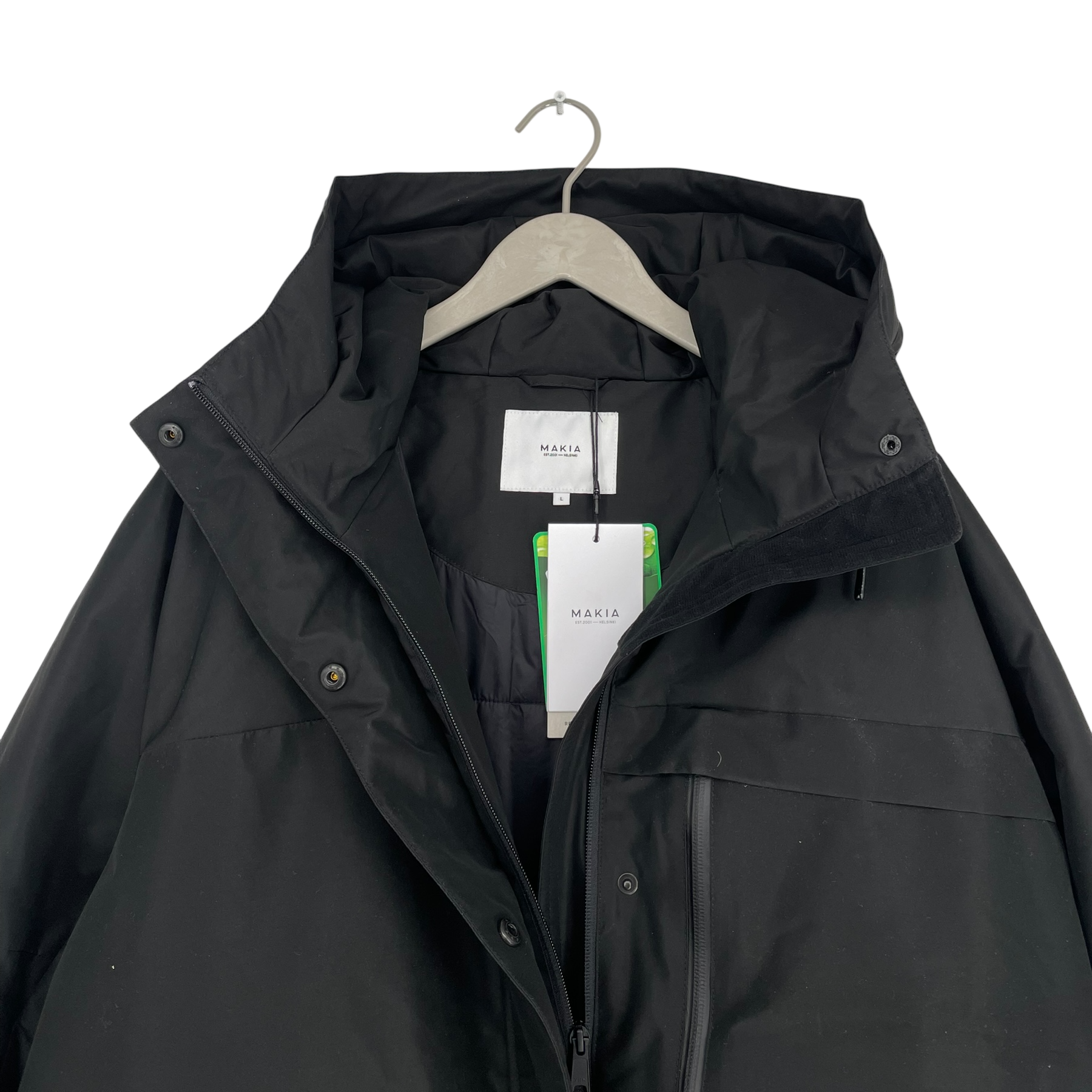 Makia Valfors Padded Jacket is a stylish and functional everyday jacket made from durable recycled polyester with a water-repellent Bionic-Finish® ECO coating. It features a two-way YKK zipper, adjustable hood, fleece-lined pockets, and a relaxed fit, with subtle branding and a patterned interior lining for signature Makia style. Perfect for unpredictable weather and urban adventures.