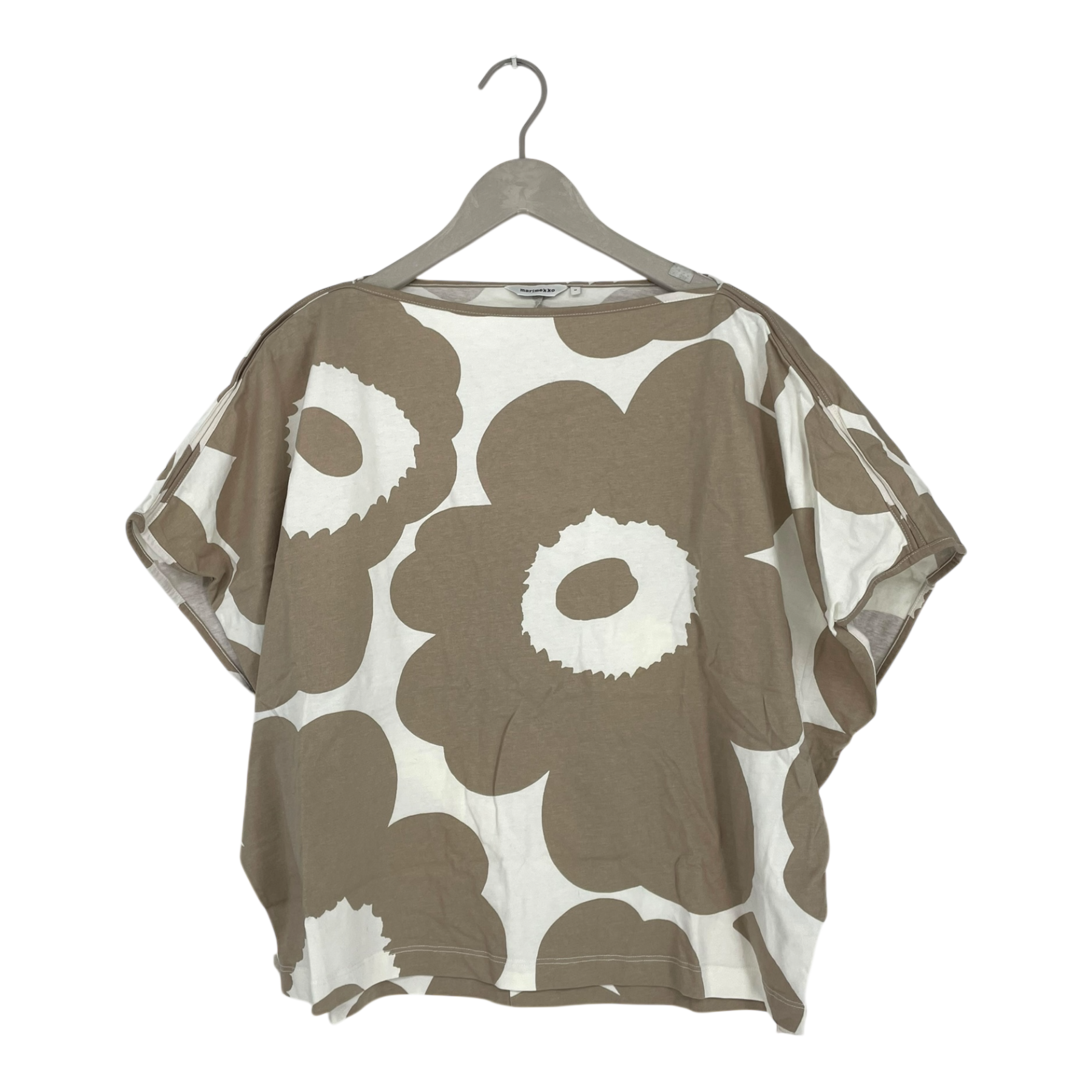 Marimekko Puhvi sleeveless top with boat neckline and wide loose short sleeves in the Unikko print.