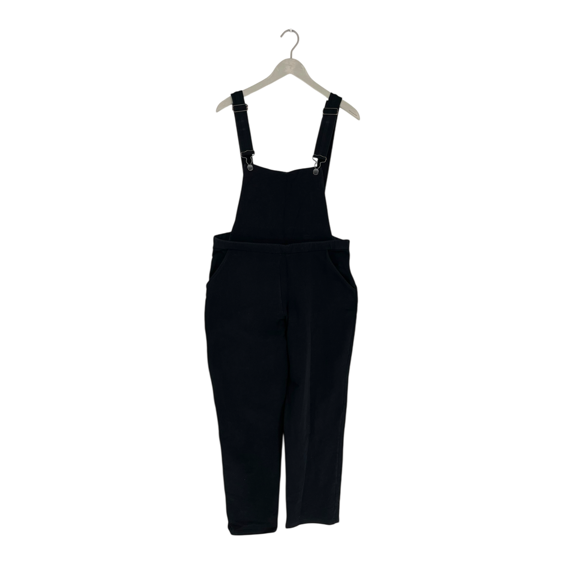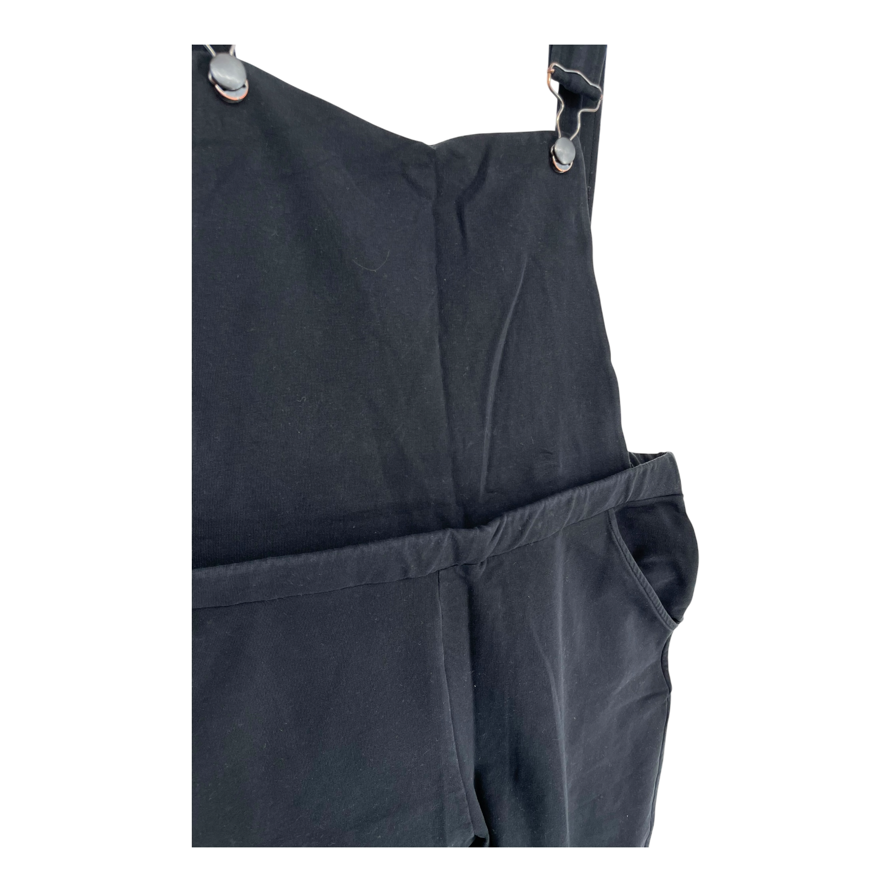 Kaiko women's black overalls. The buttons and fasteners are slightly worn.