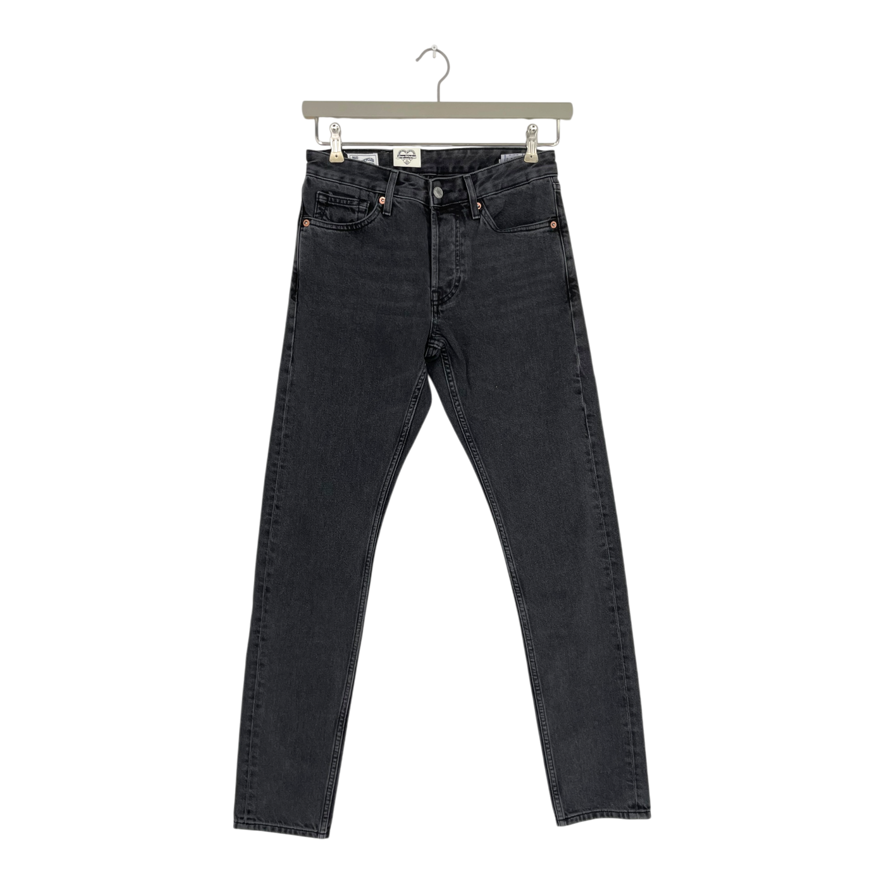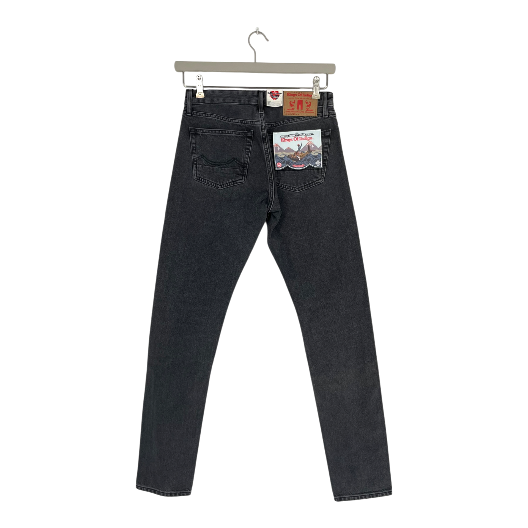 Kings of Indigo slim-fit jeans in washed black denim. Features classic five-pocket styling with button fly closure and tapered leg silhouette.