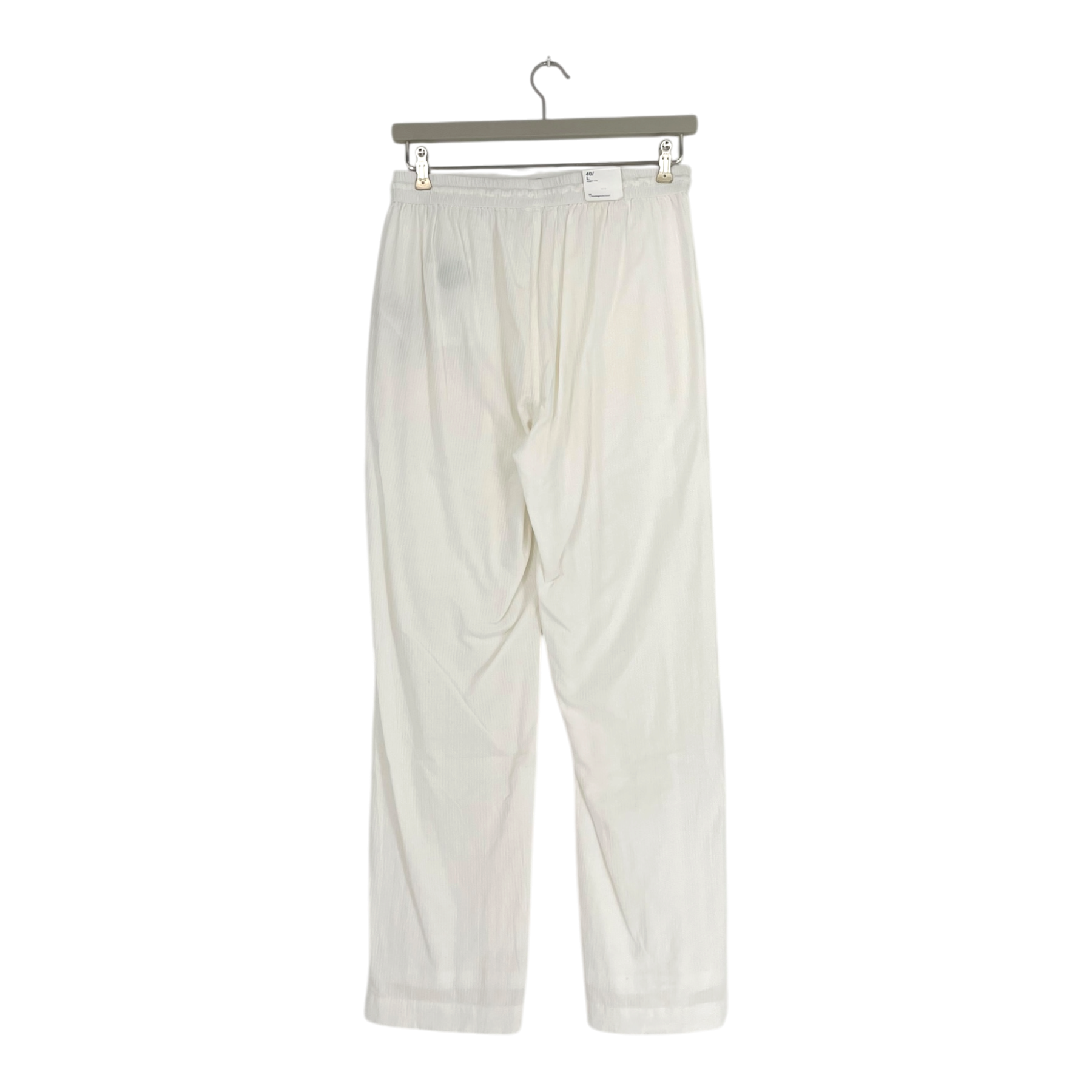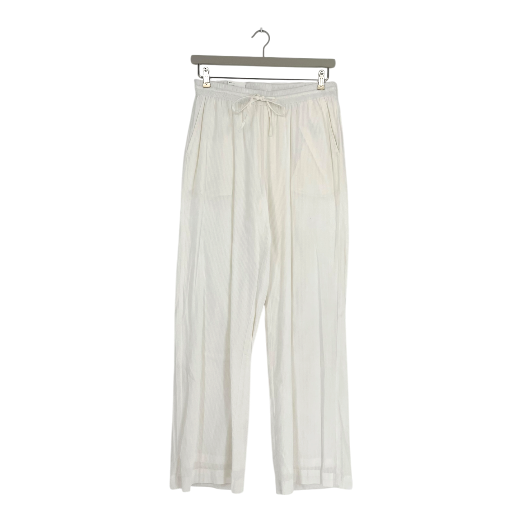 Knowledge Cotton Apparel wide-leg pants in offwhite with elastic waistband and drawstring tie. Features relaxed, flowing silhouette with straight-leg cut. Side seam pockets and comfortable fit perfect for casual wear.