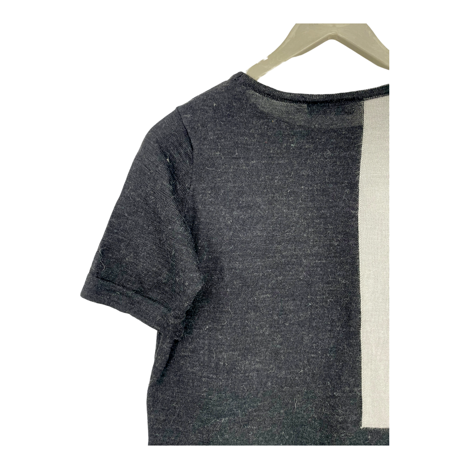 Alpa knitted t-shirt in an abstract design. The item has multiple pulls of elastic thread on its´ surface.