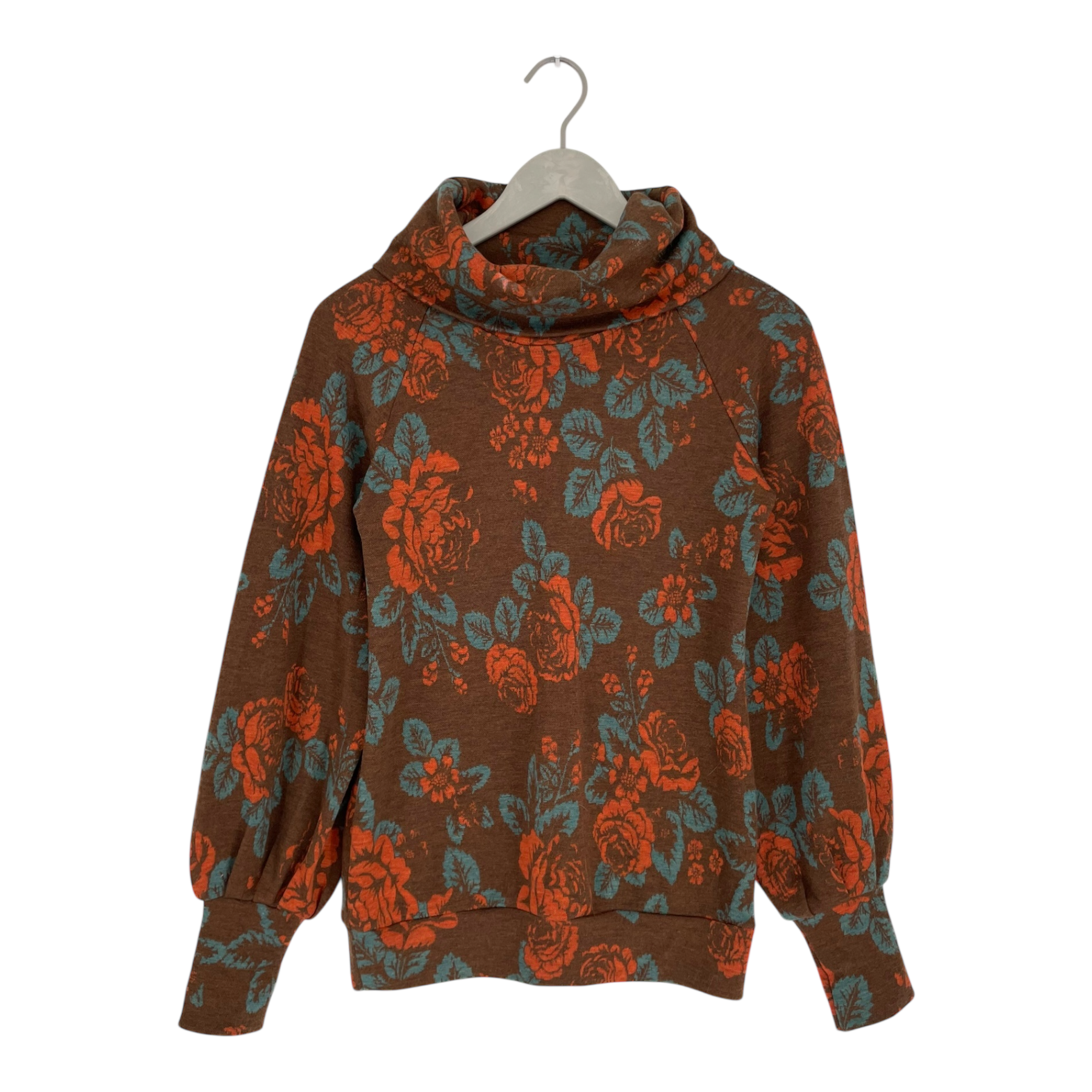 Ommellinen merino turtleneck shirt, babushka roses | woman S