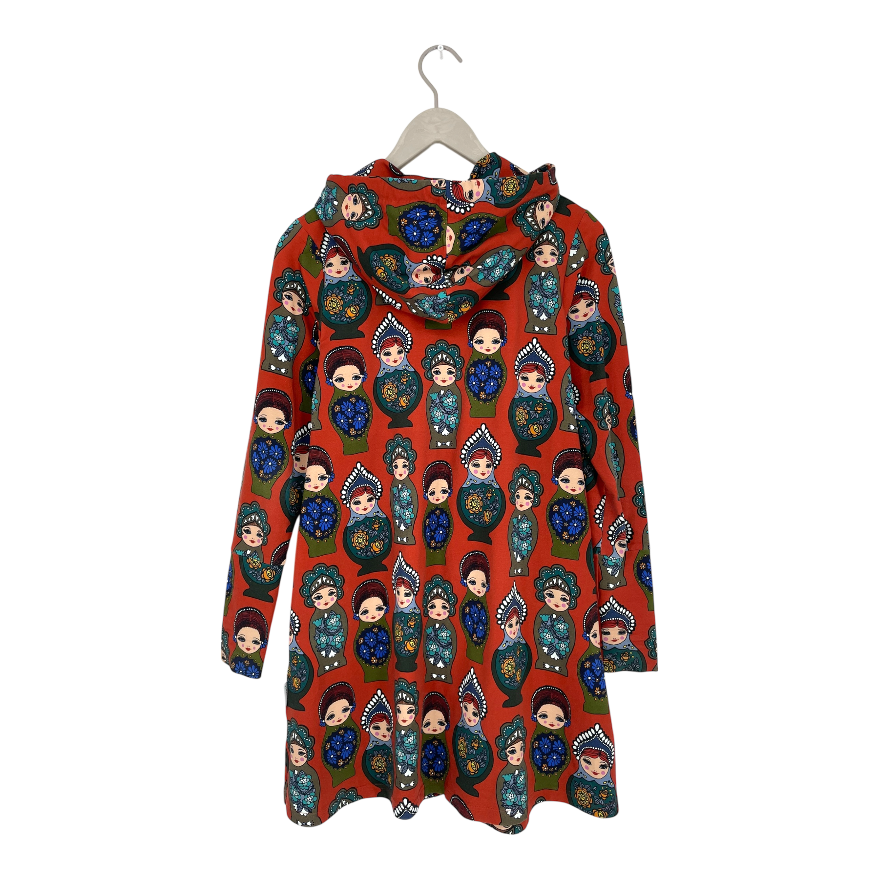 Versonpuoti hooded tunic with a long zipper in Maatuska print. Pockets on both sides and full-length sleeves.
