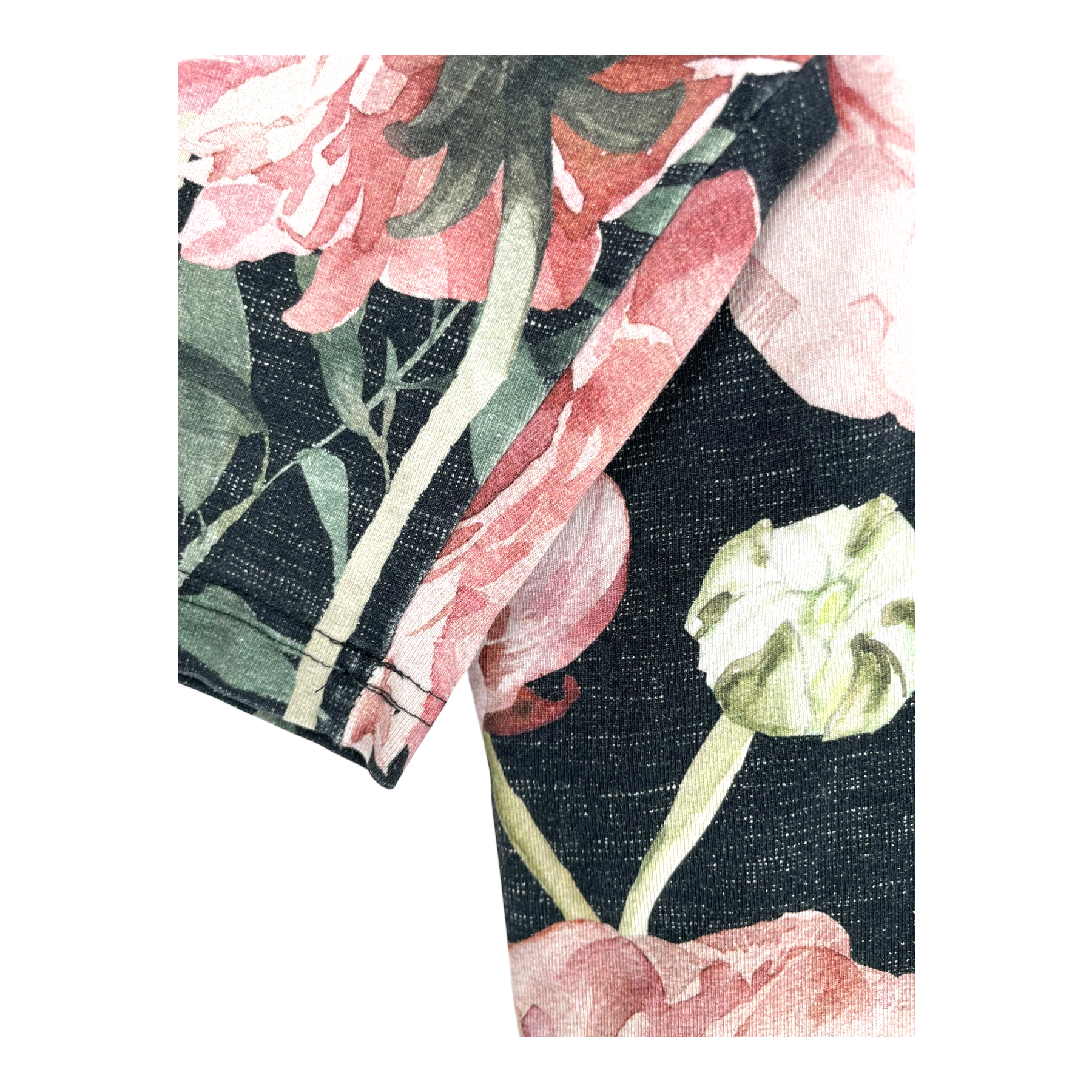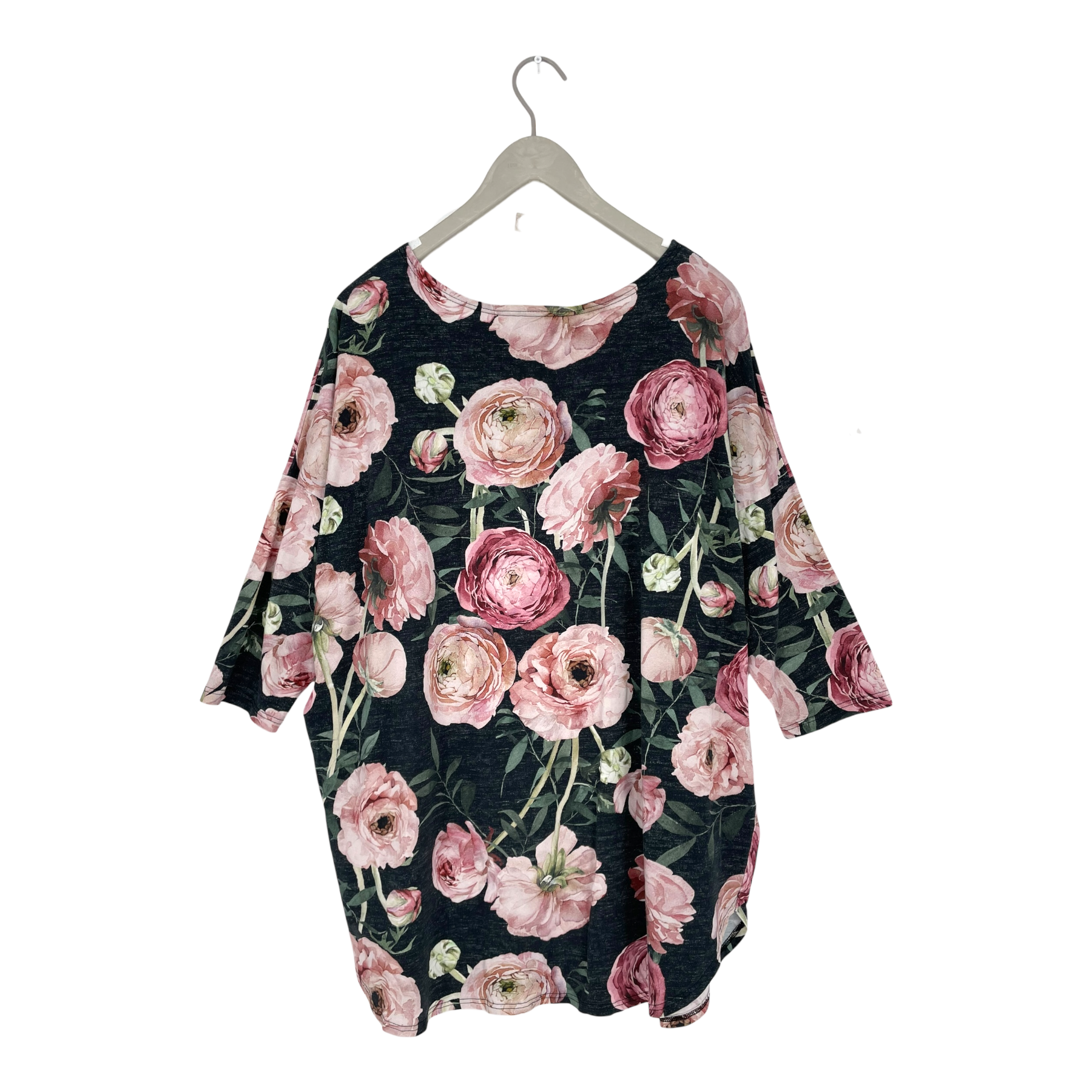 Versonpuoti long-sleeved shirt in flower print. Shirt is slightly longer, it has rounded hem and a boat neck.