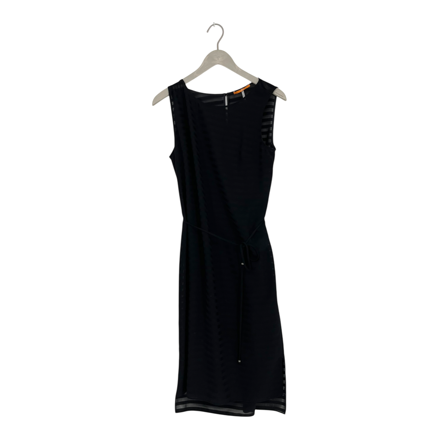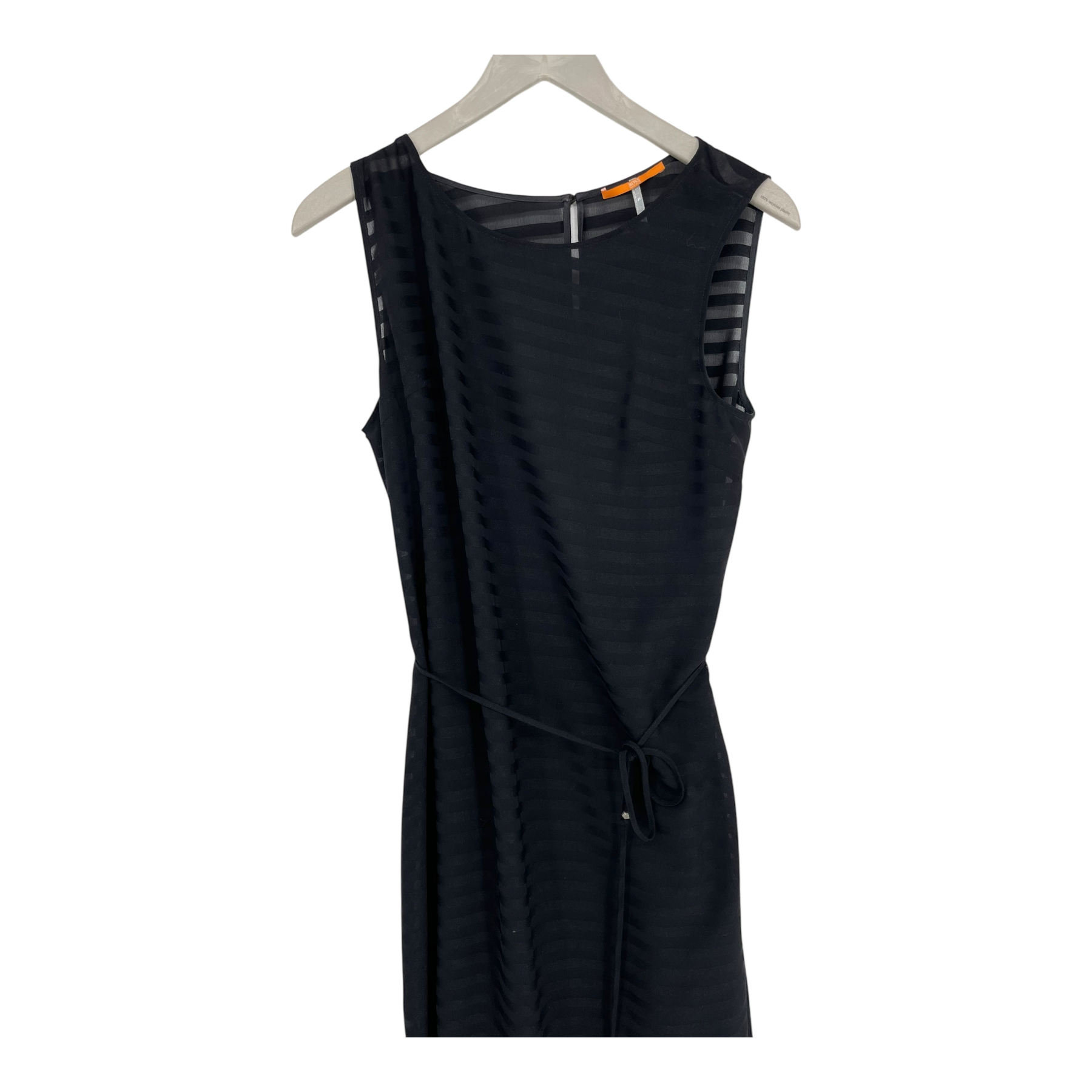 Hugo Boss dress with a see through stripe pattern. Slip dress inside. Ribbon on the waist.