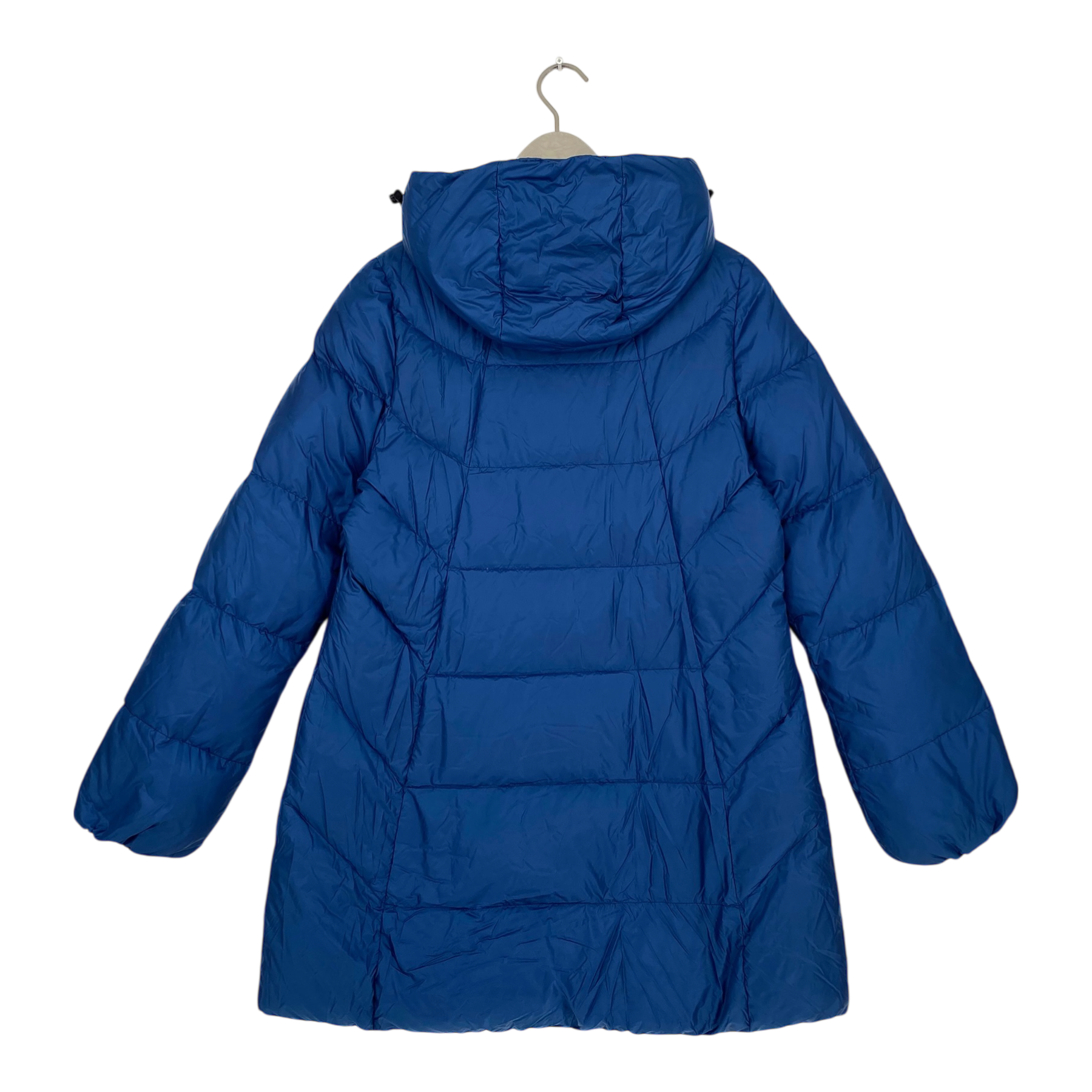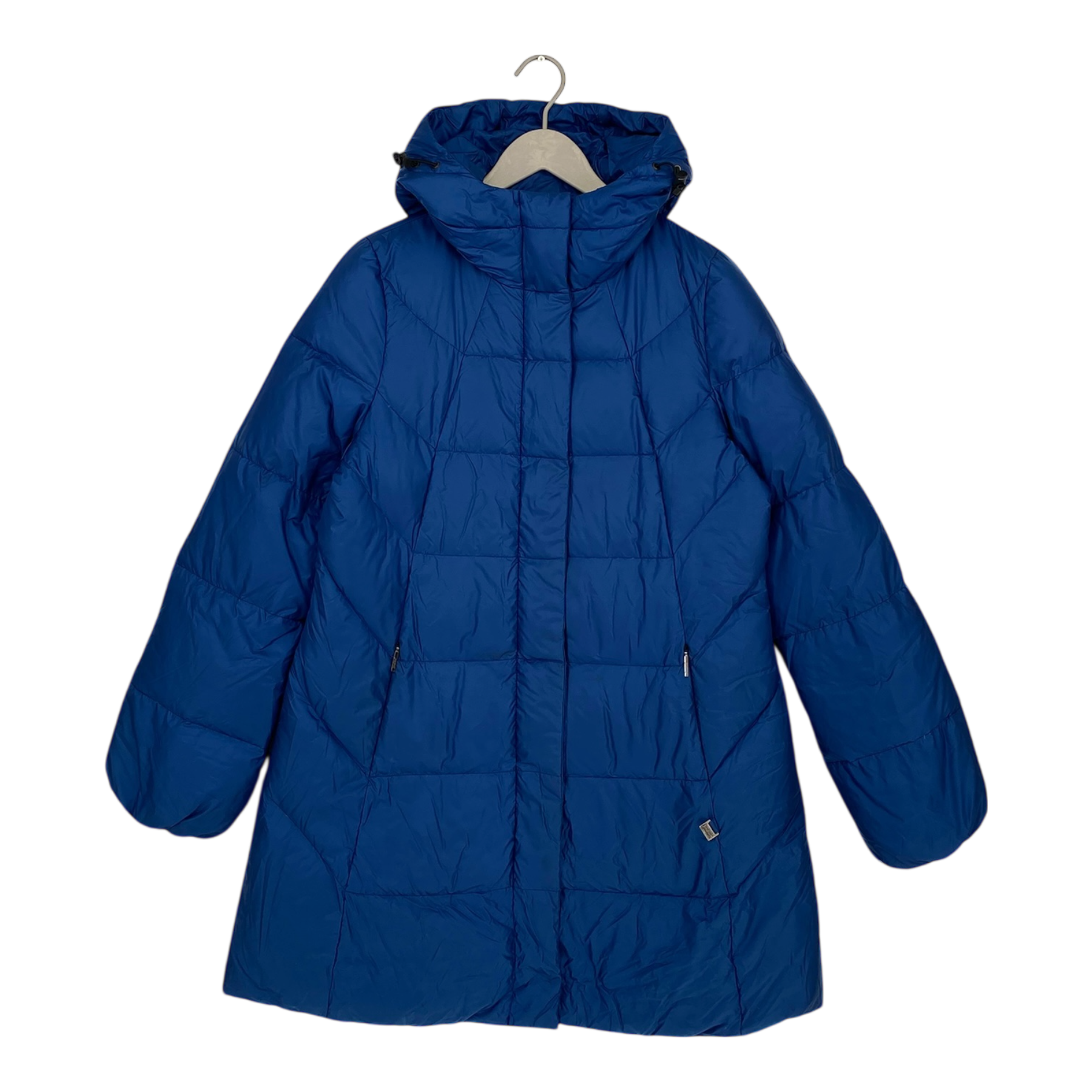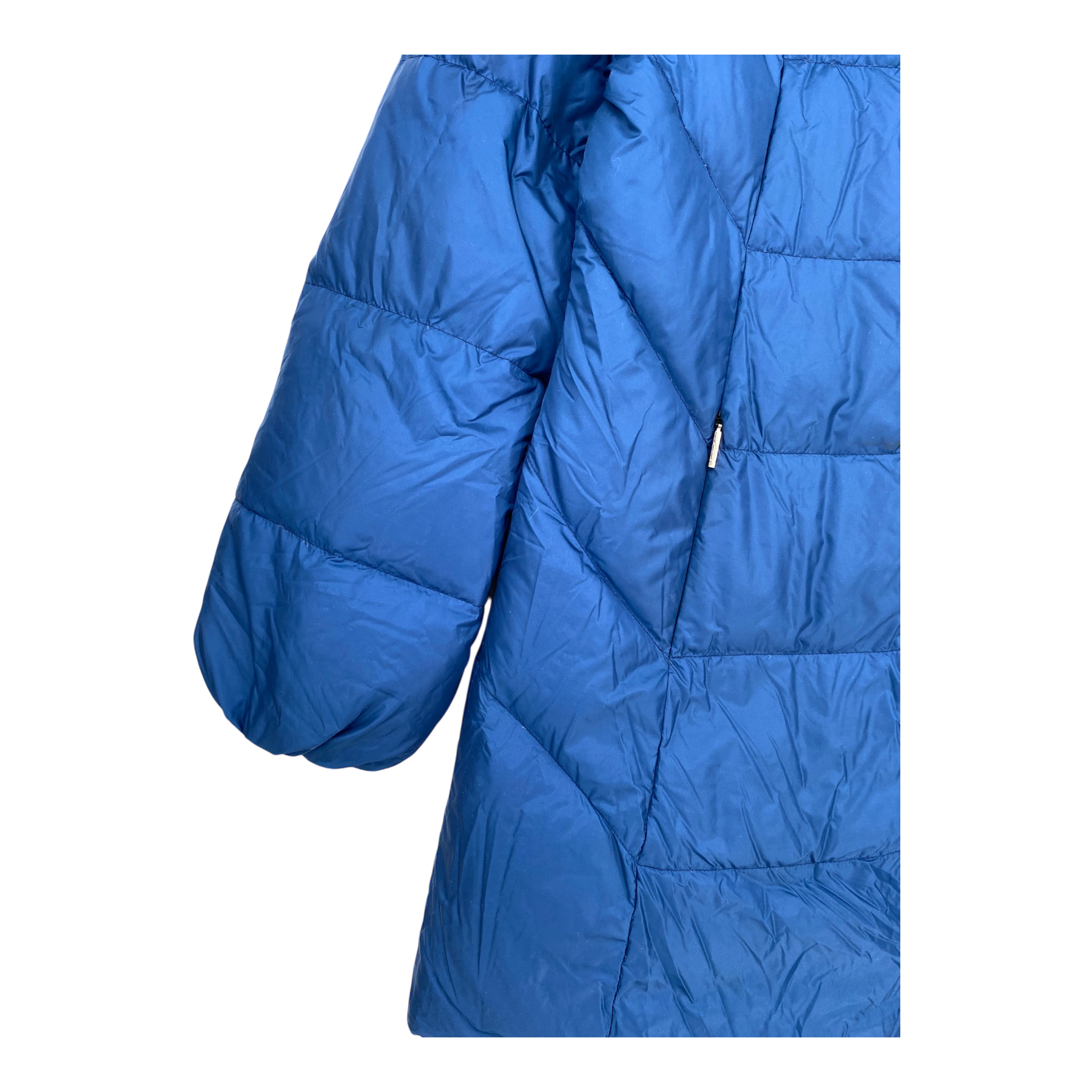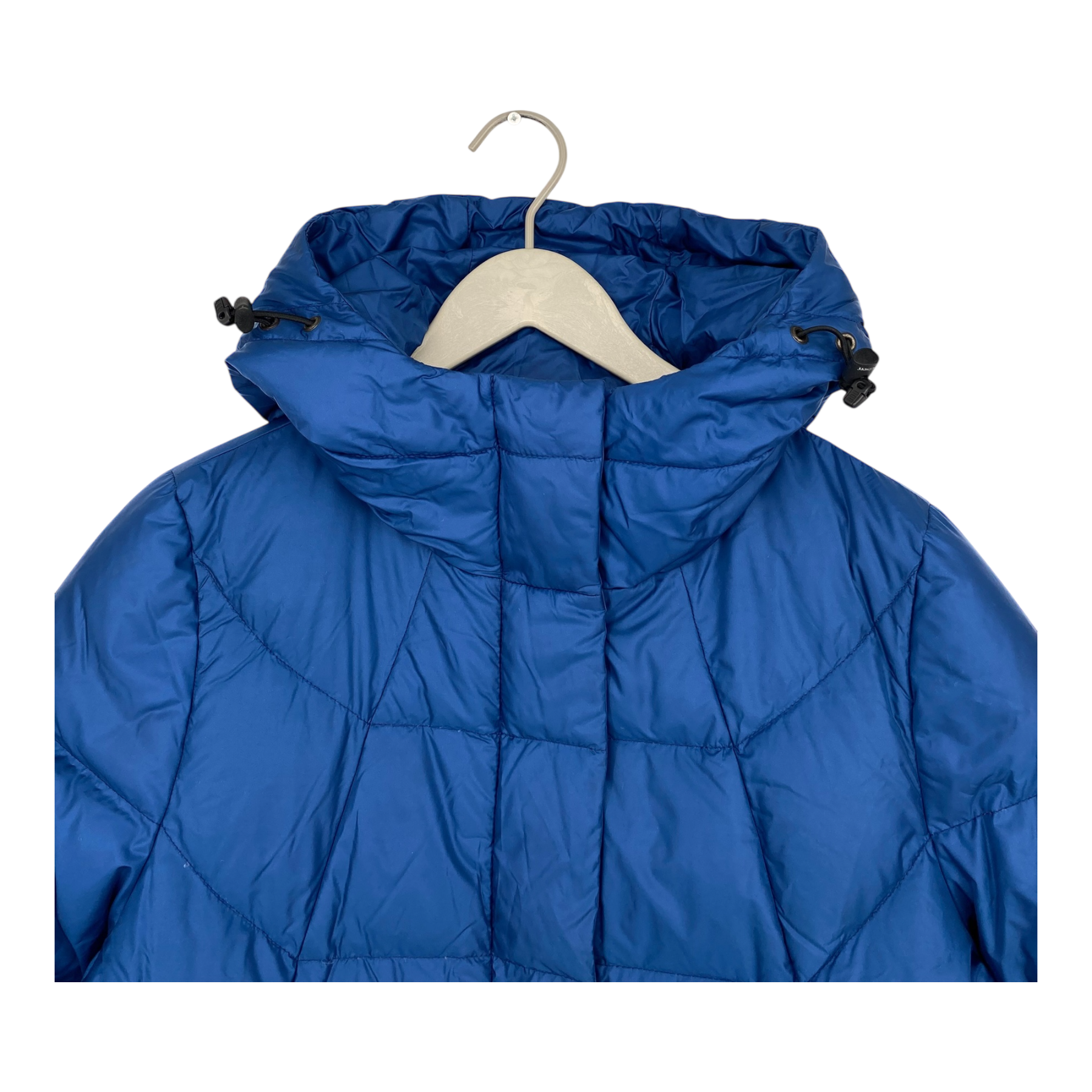 Joutsen Meri jacket is a down jacket perfect for the colder weathers. There is a horizontal stitching and two sealed side pockets. There is snap buttons and a double-slider fastening zipper that adds comfortability and daily functionality in the front. The adjustable hood can be worn down or up according to the weather and there is a high stand-up collar for protection.