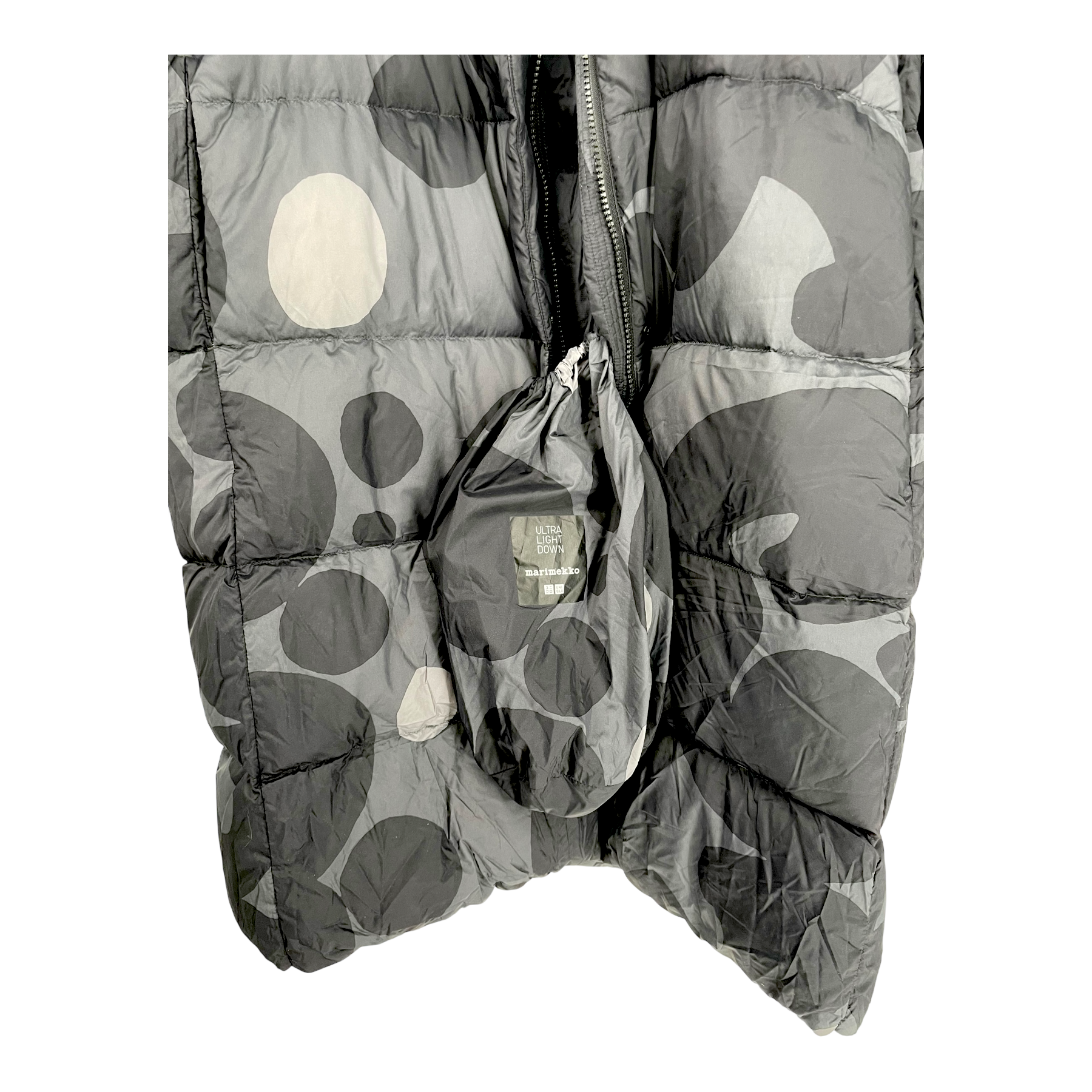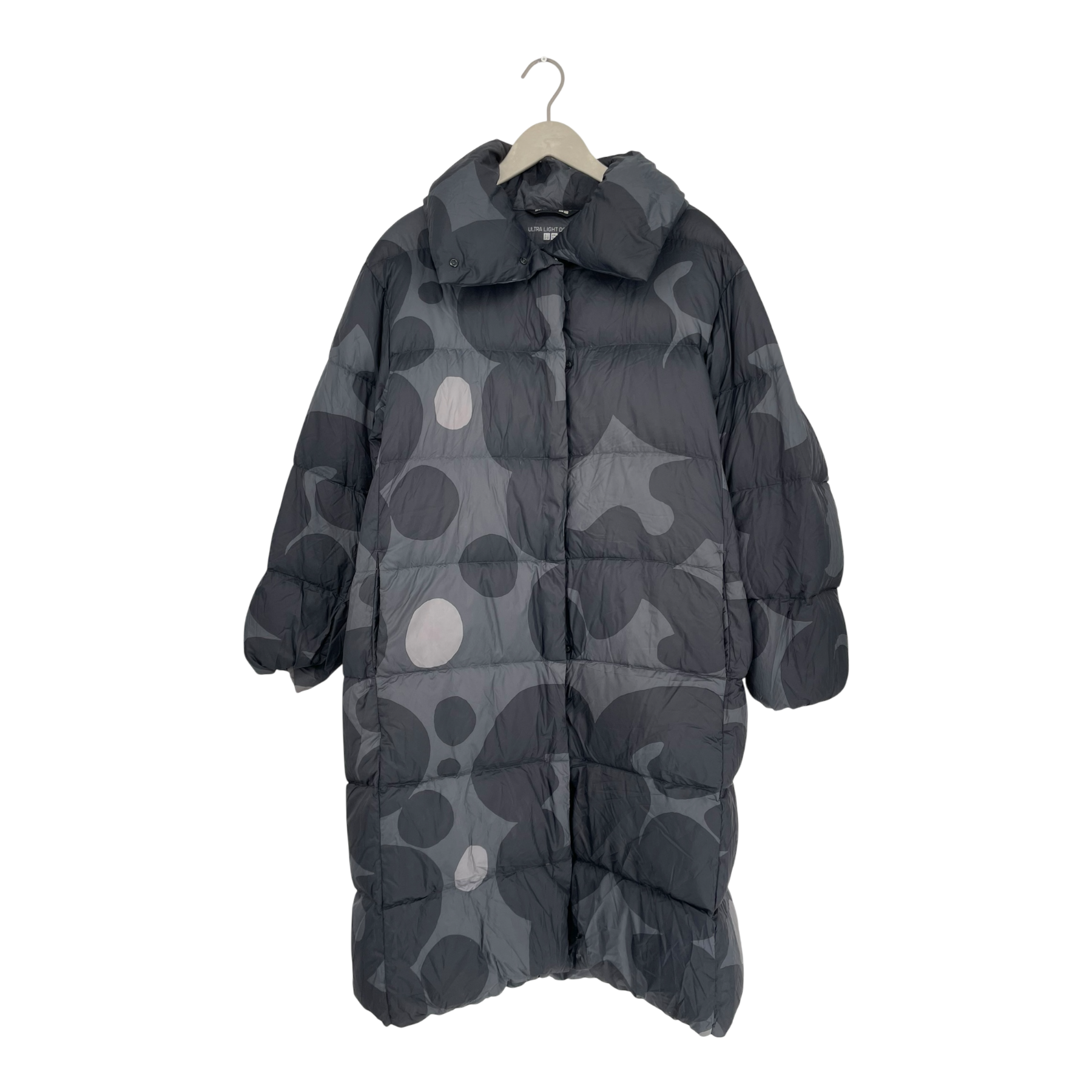 Marimekko x Uniqlo ultra light down jacket, black and grey | woman L