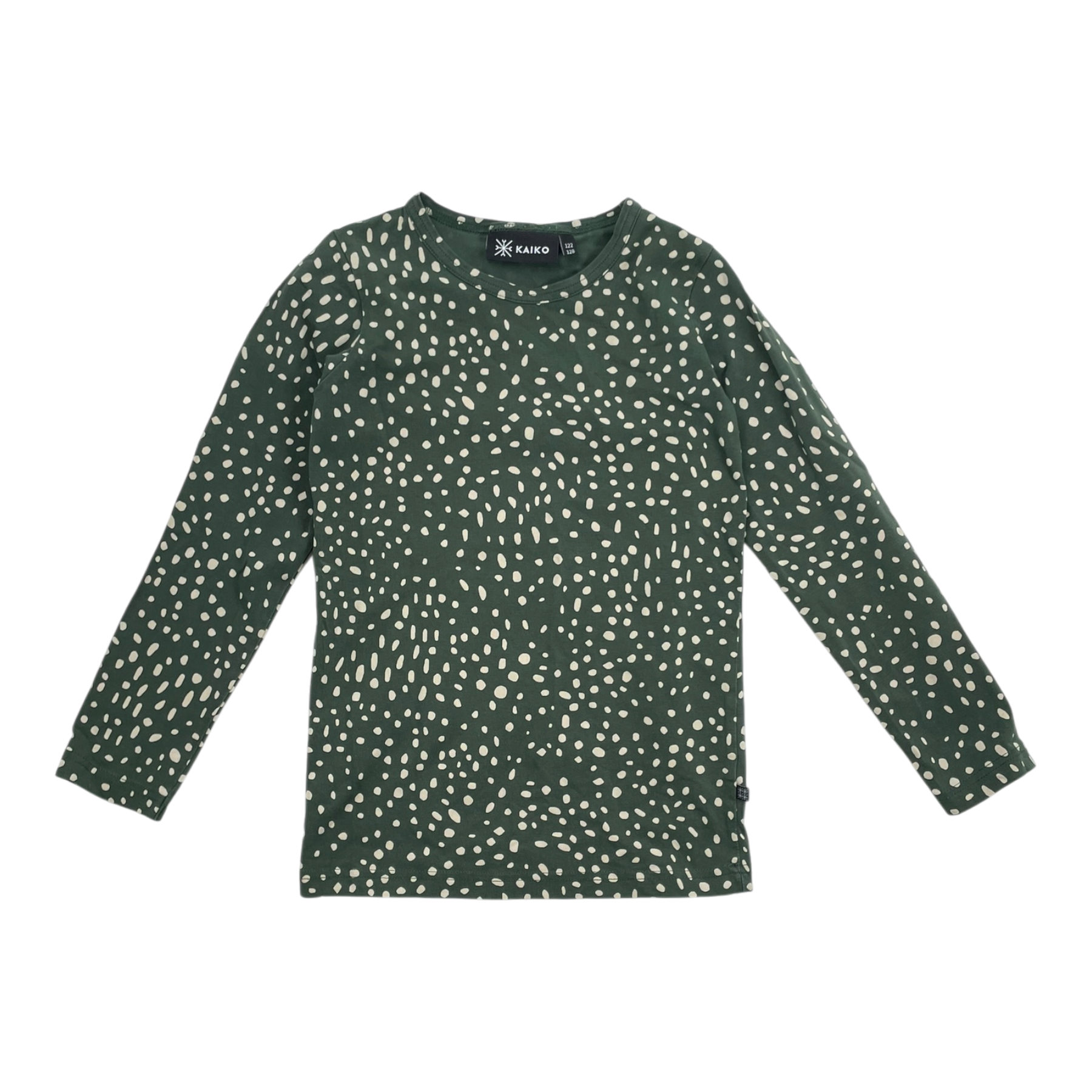 Kaiko long sleeve shirt in green and beige print.