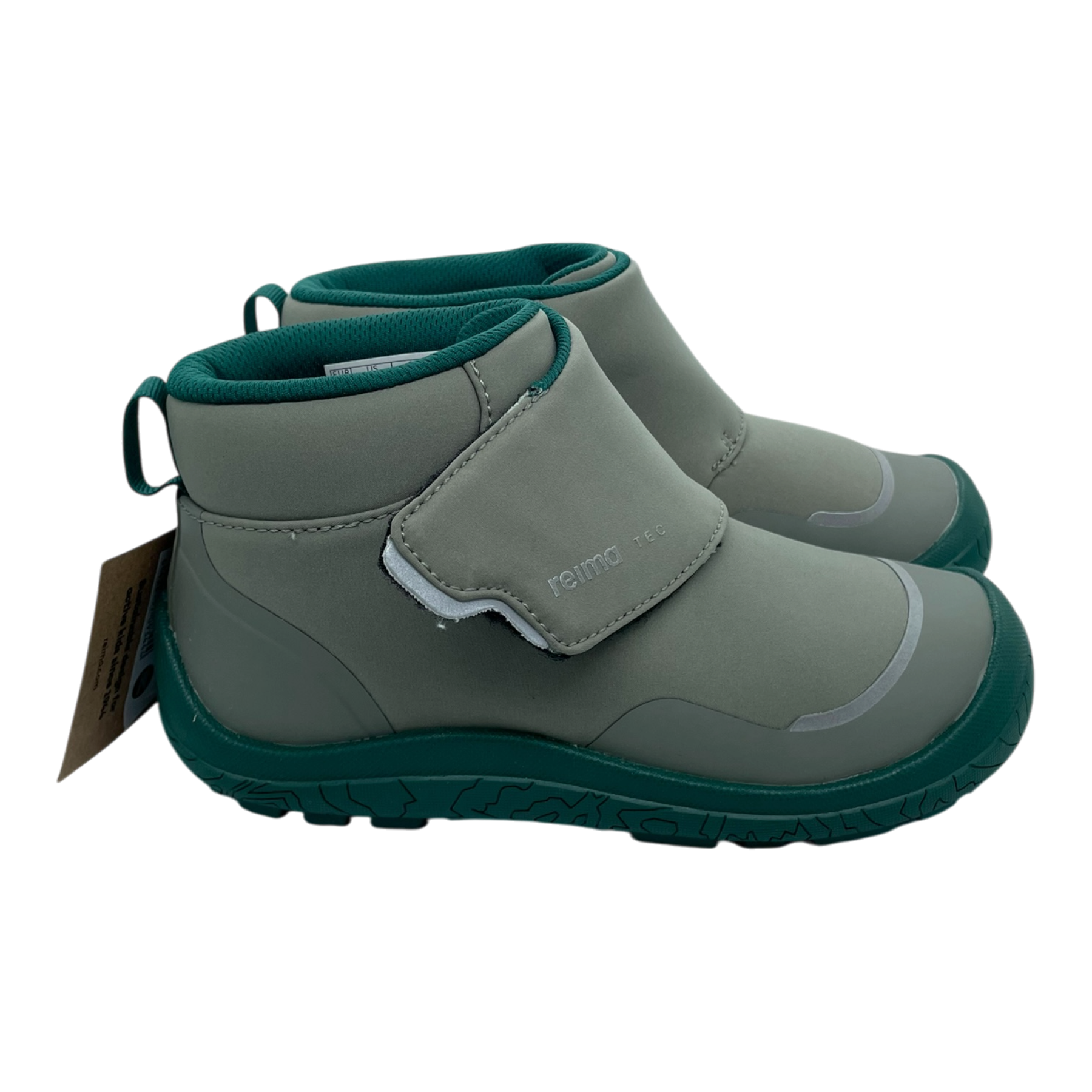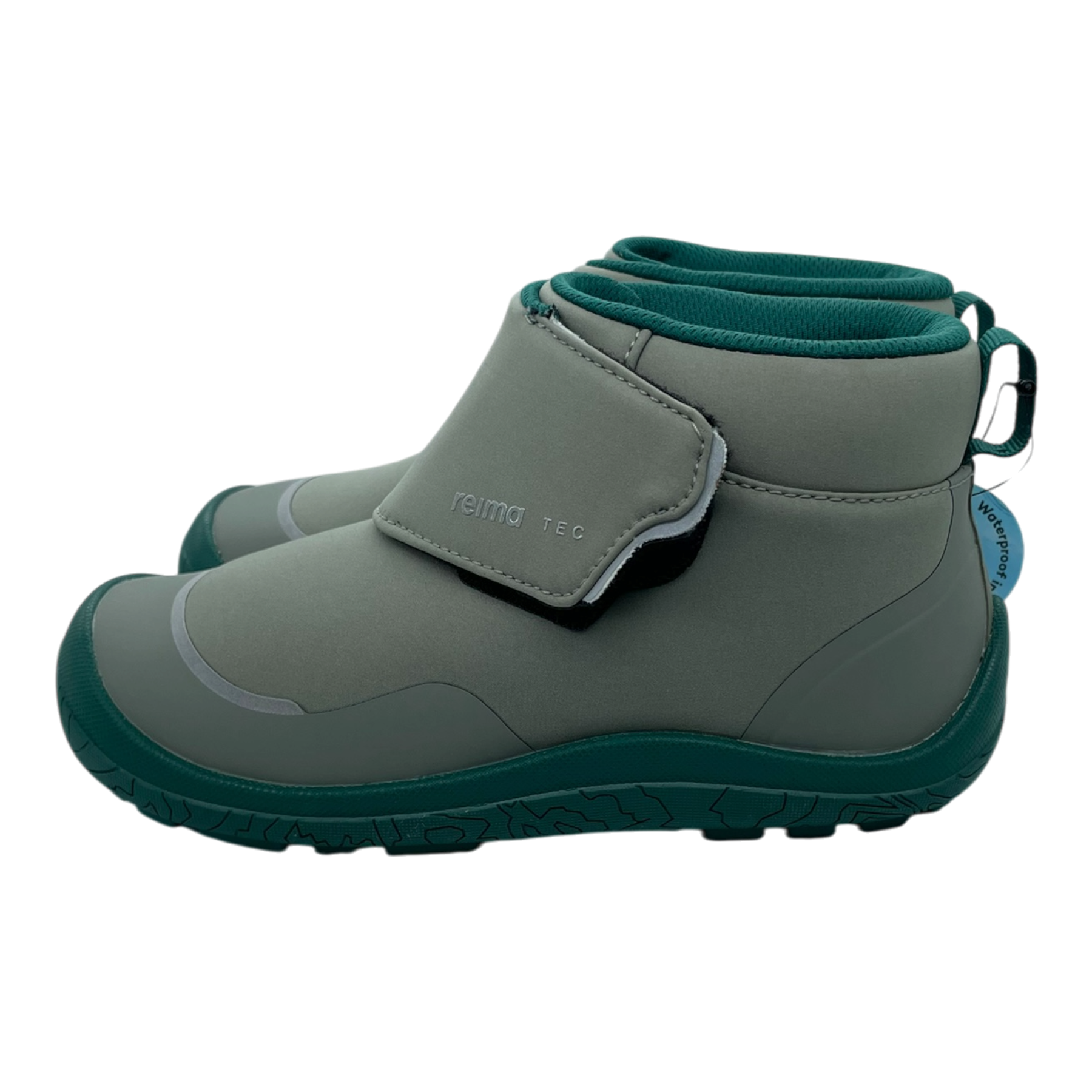 Reima Hyppii barefoot shoes with hook-and-loop fastening. Easy-to-use, comfortable all-weather boots for fall and spring. Shoes are originally waterproof and boots offer a waterproof membrane and comfy lining to keep kids' feet dry.