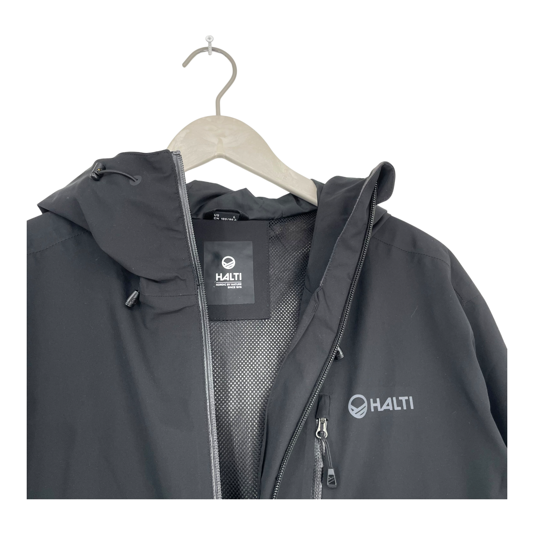 Halti men’s Biegga shell jacket with a hood, zippered pockets in the front and a drawstring on the bottom. The main purpose of use for the jacket is outdoors and trekking. Originally waterproof Drymaxx shell.
