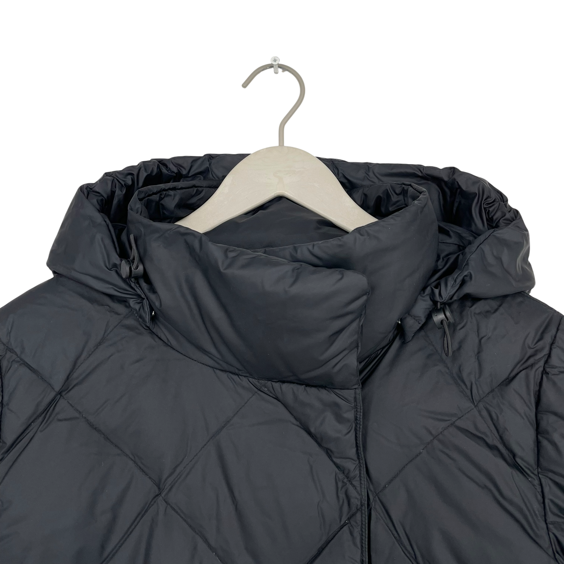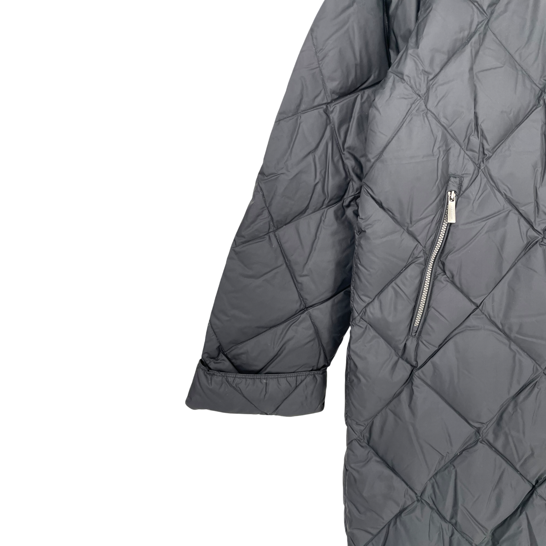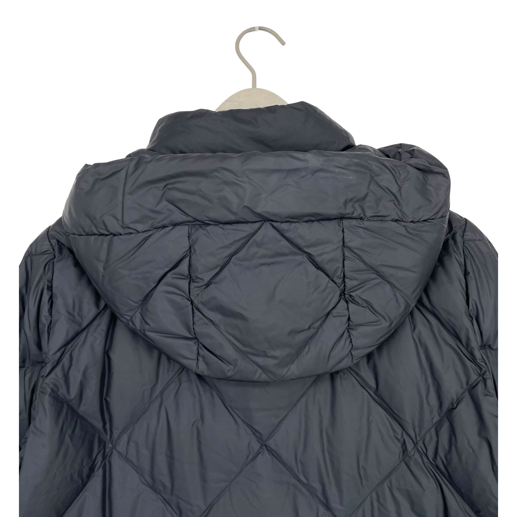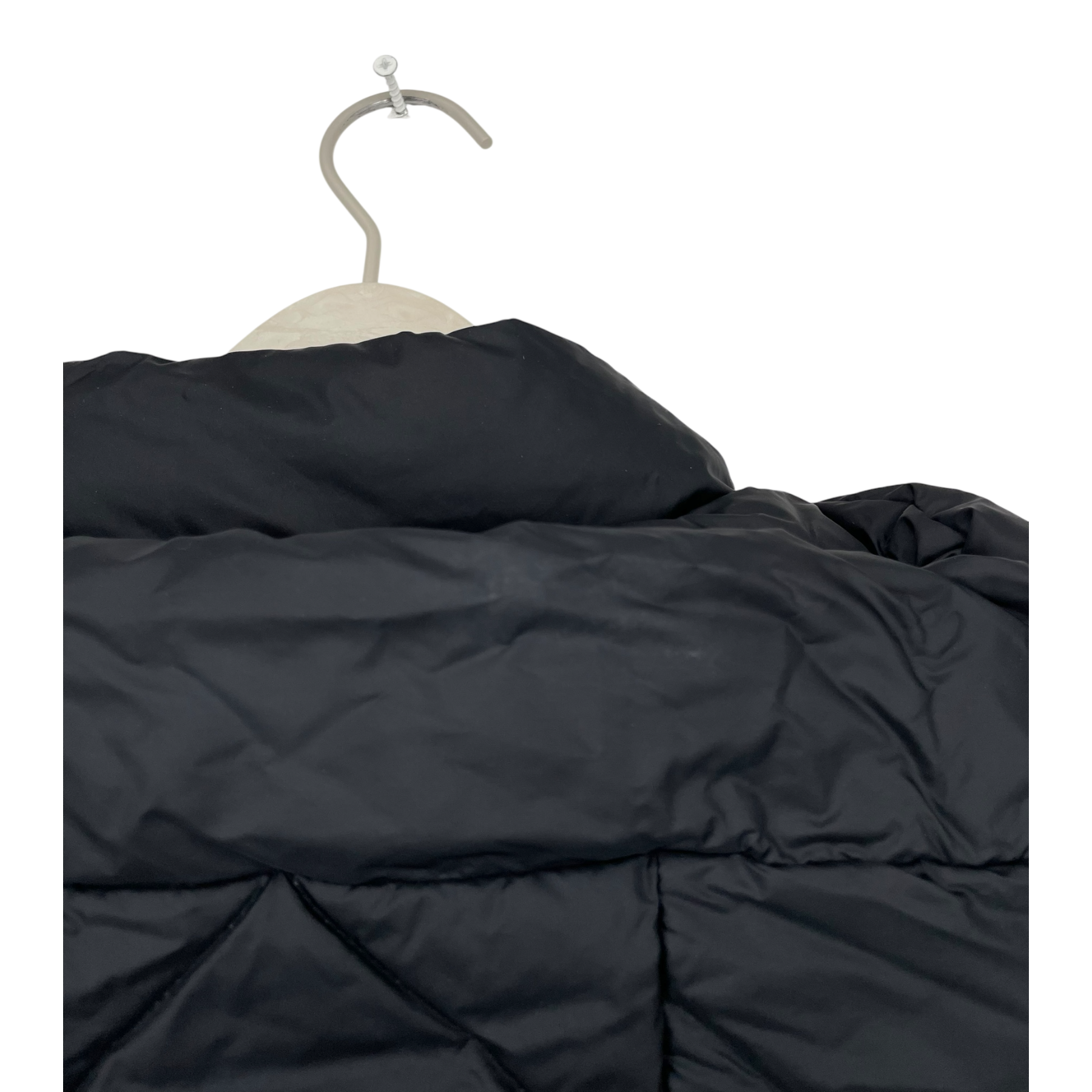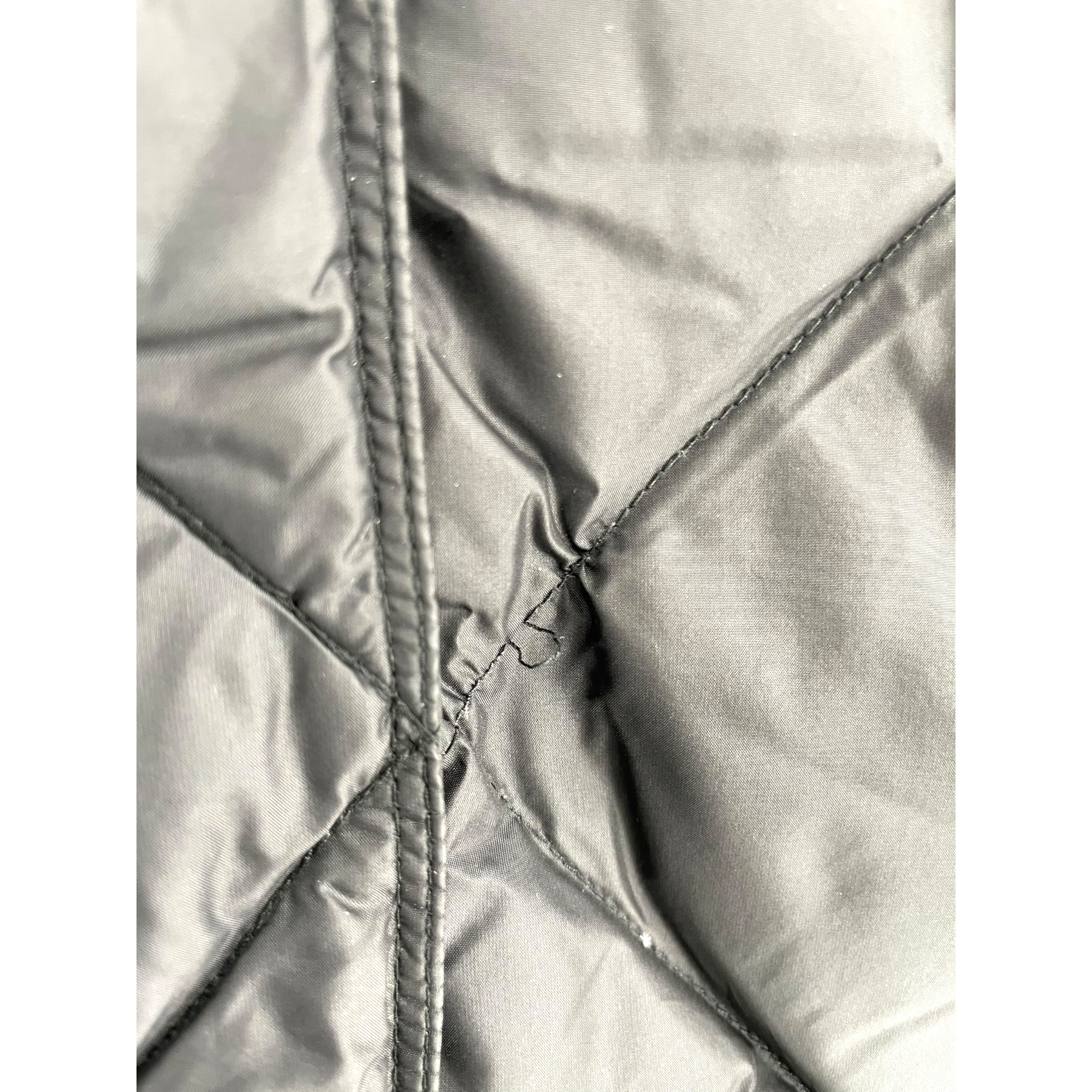 The jacket is otherwise in good condition, but there is a faint stain on the hood that can be removed, and a small skipped stitch on the front.
