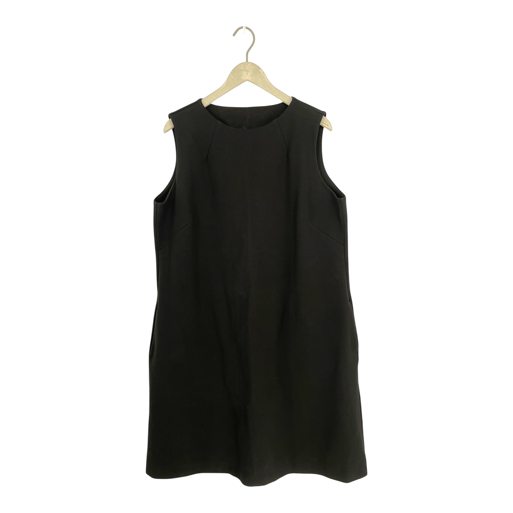 Papu sleeveless dress with side pockets, round neck, cut and sew detail on the center back.