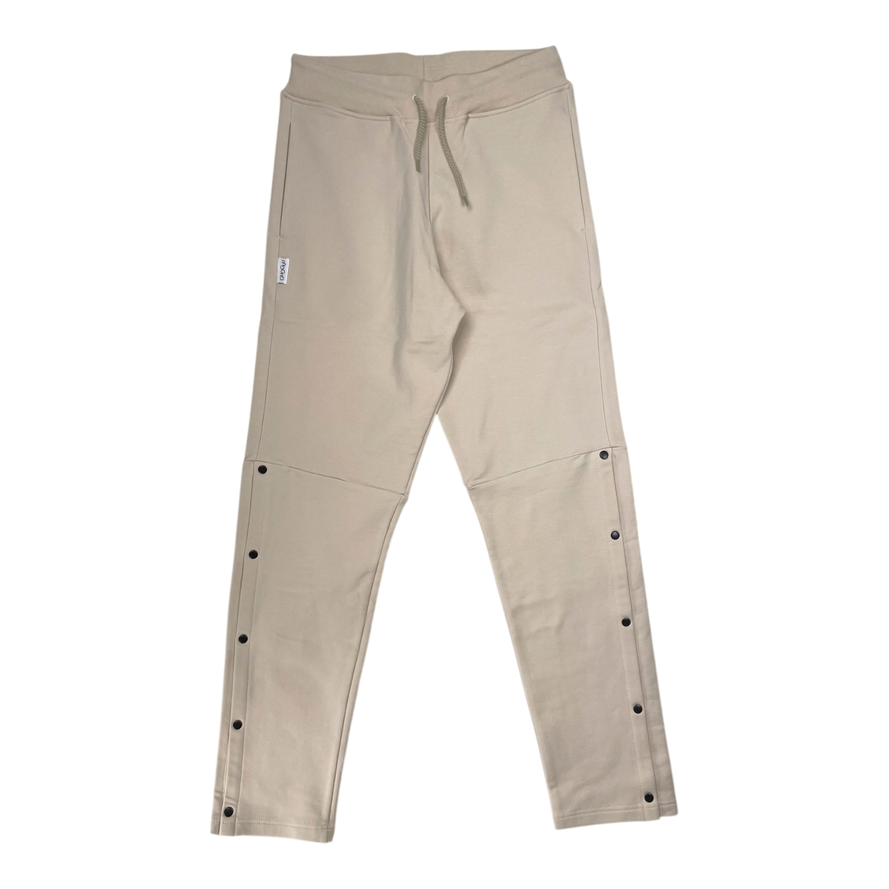 Gugguu sweatpants with a drawstring waistband, two pockets and snap buttons on the sides.
