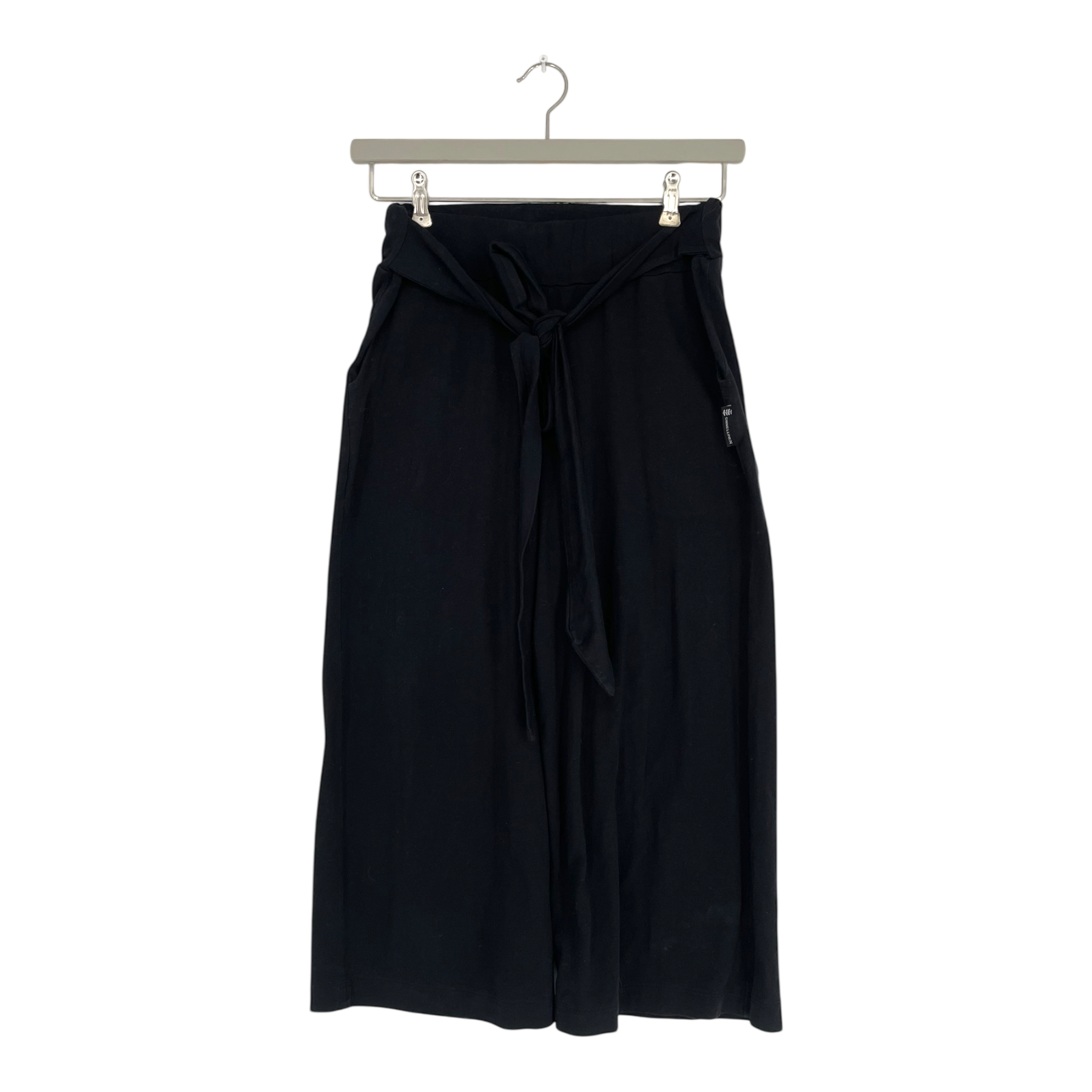 Ommellinen wide leg pants with a fabric belt. The fabric has fluffed somewhat and there is a small discoloration, as shown in the last picture.