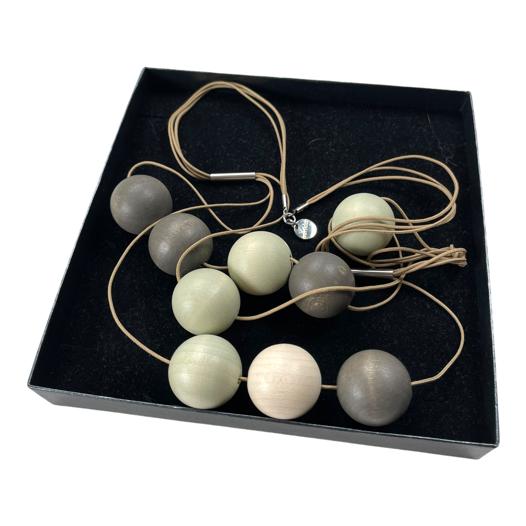 Aarikka lightweight necklace with multi-layered wooden balls.