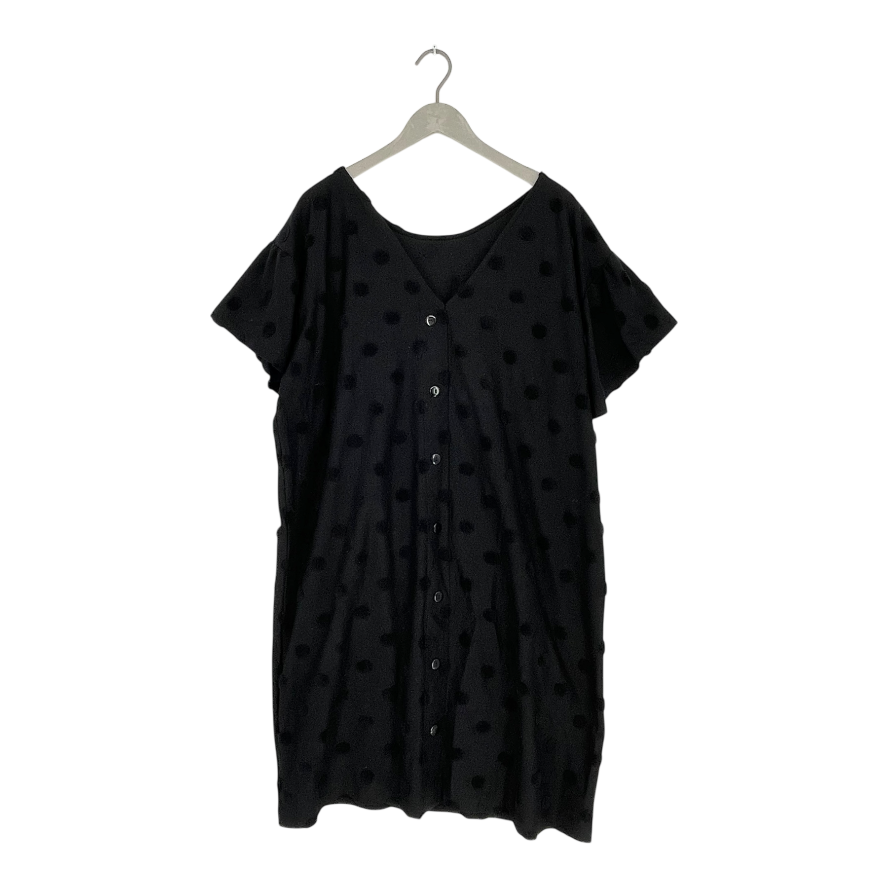 Aarre women's Aida dress is made of a wonderful structural material! The Big Dot is a tricot-thick knit with terrycloth dots that rise from the surface of the knit, making it wonderfully lively. The design of the dress is straight and quite loose, and it suits many different body types. The dress has short frill sleeves and a V-neckline. The hem is knee-length.