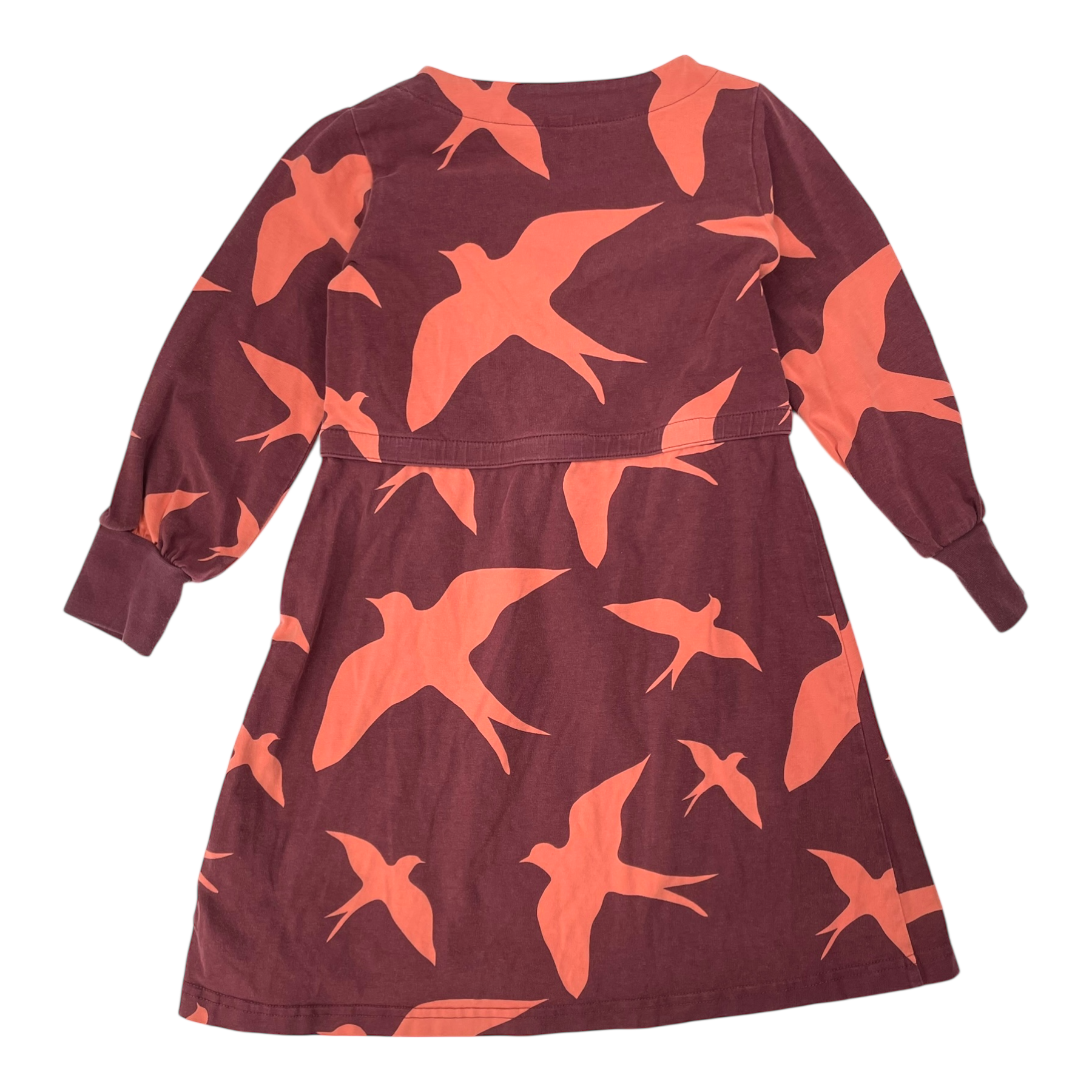 Blaa long sleeve sweat dress in a bird print. There is some light fading on the seams.
