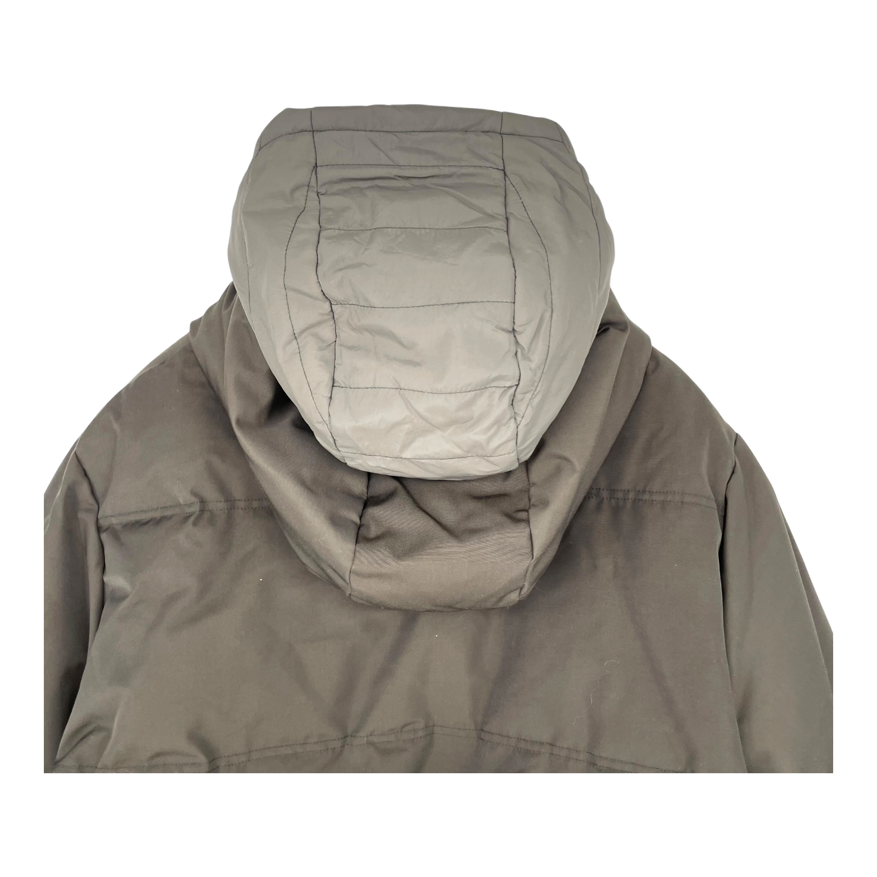 Embassy of Bricks and Logs Brookville parka with double hood, fleece lined pockets, and ribbed cuffs.