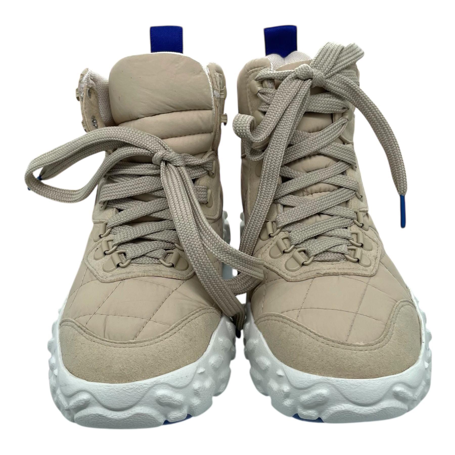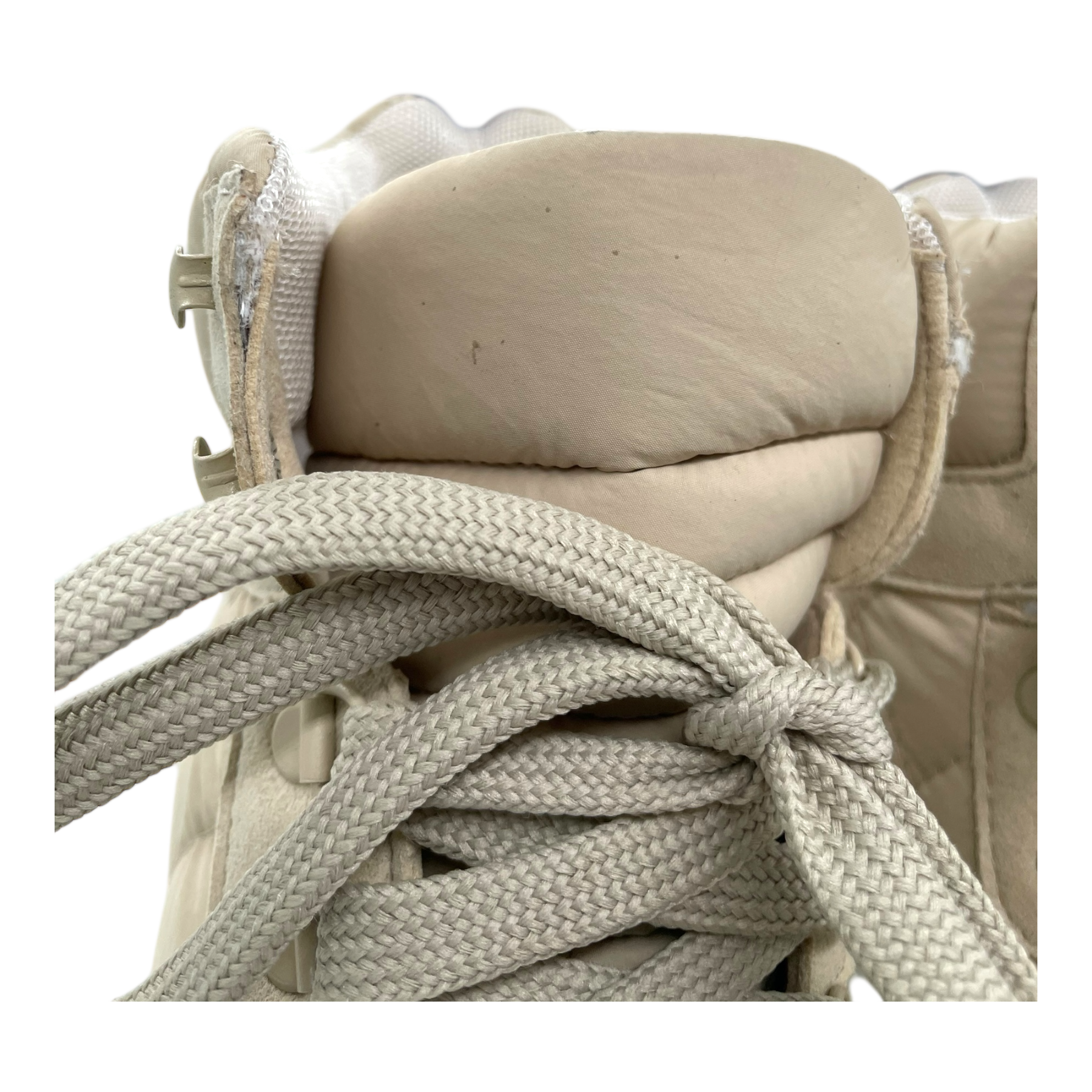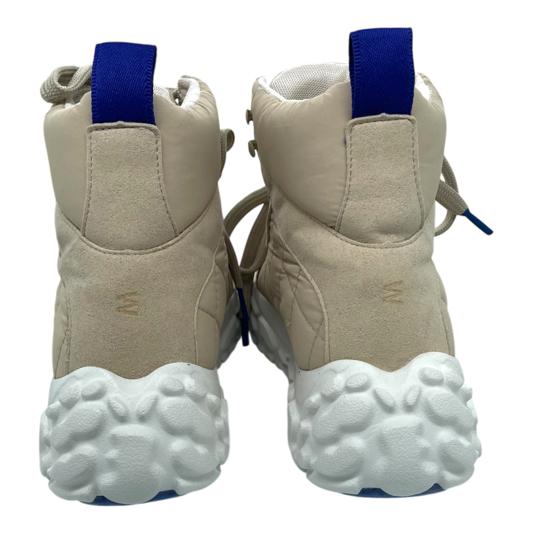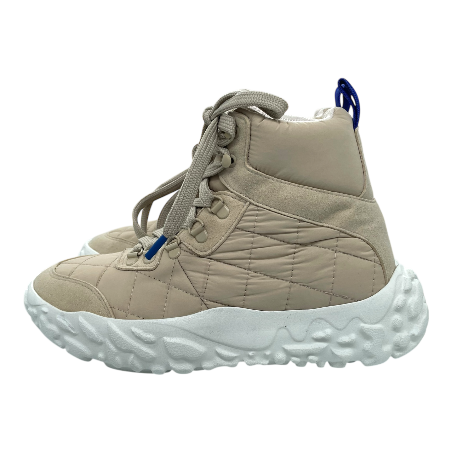 Embassy of Bricks and Logs Coventry hiker solid boot with a high ankle and special sole in beige puffer jacket style fabric, vegan and eco-friendly.