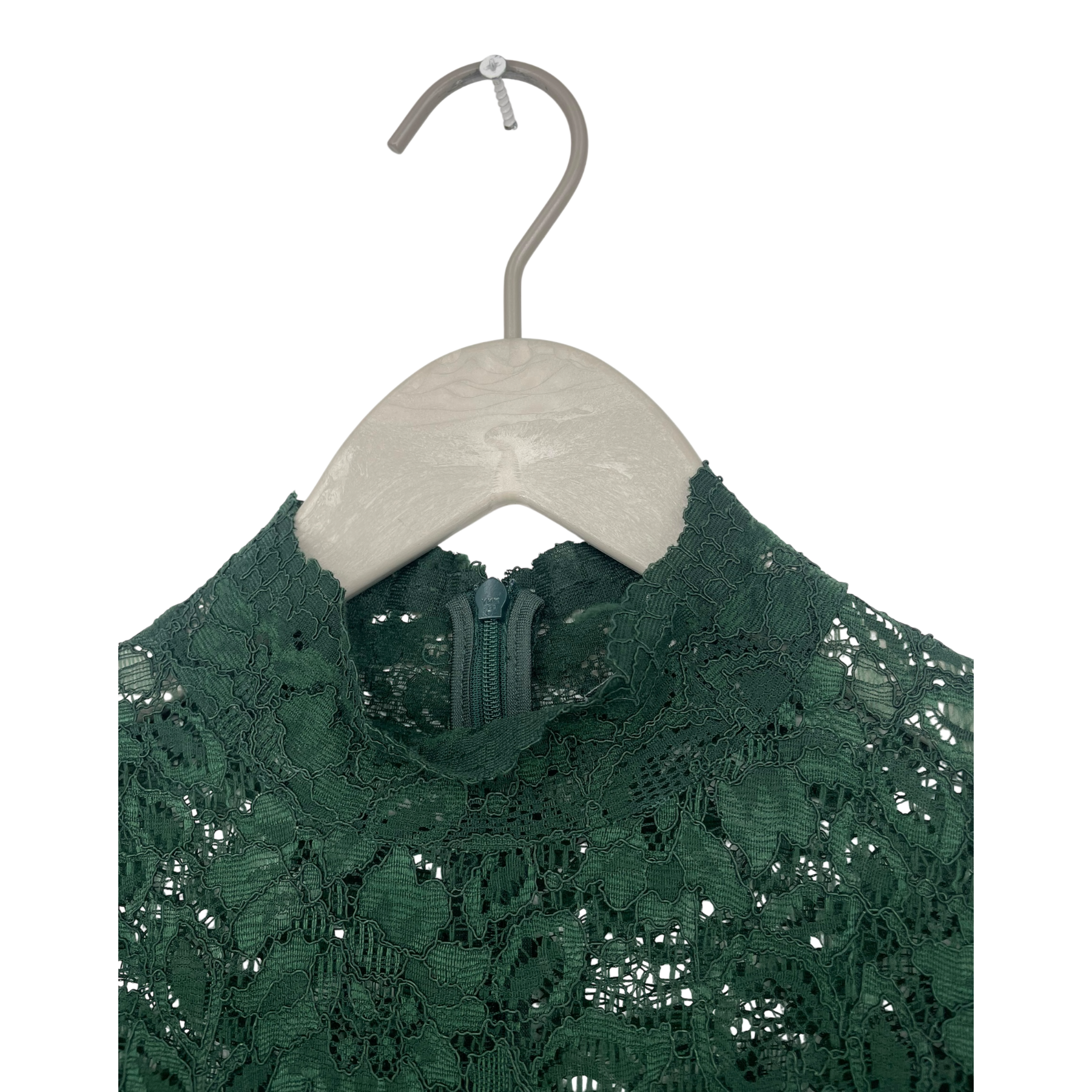 Ganni lace dress with a high neckline and a back zipper.
