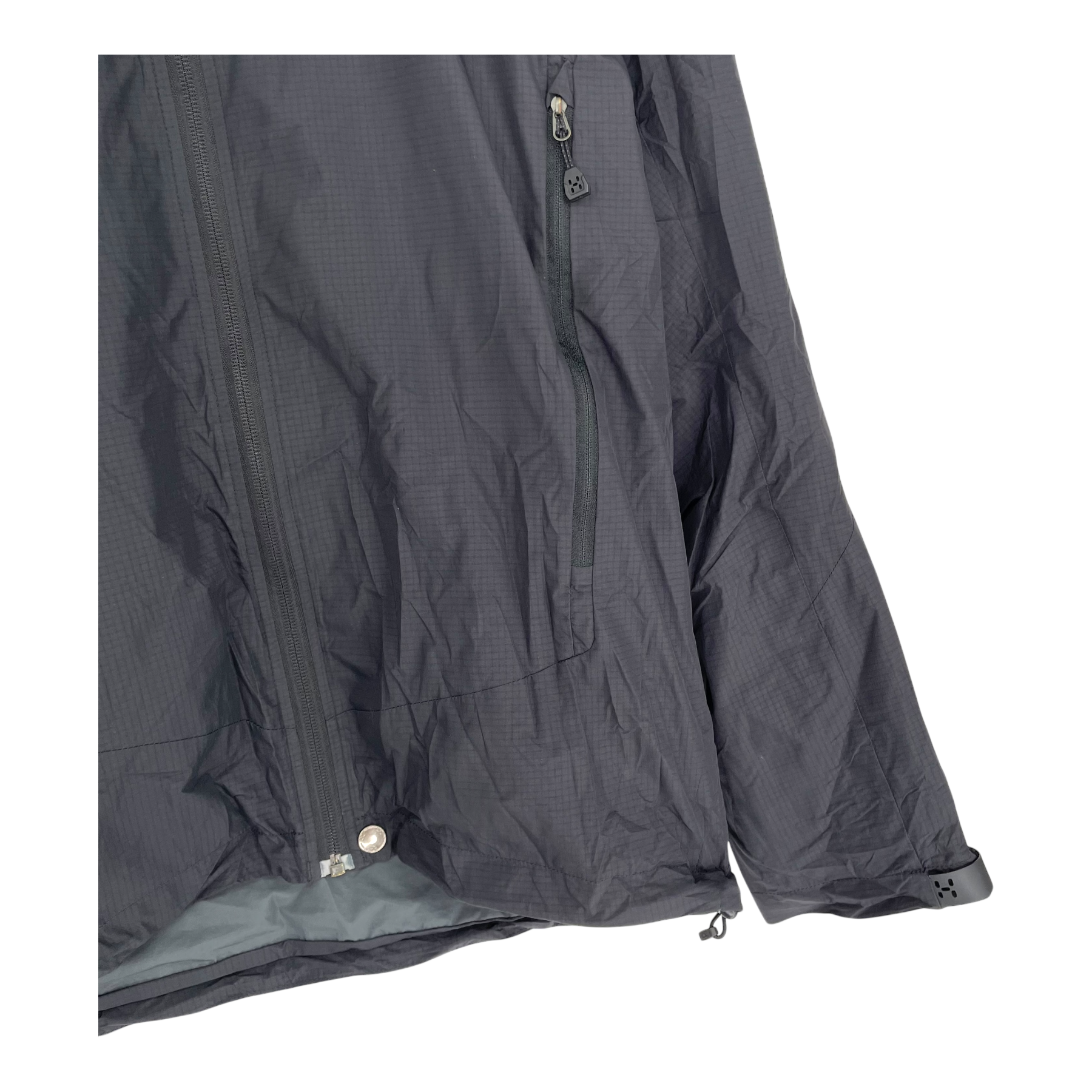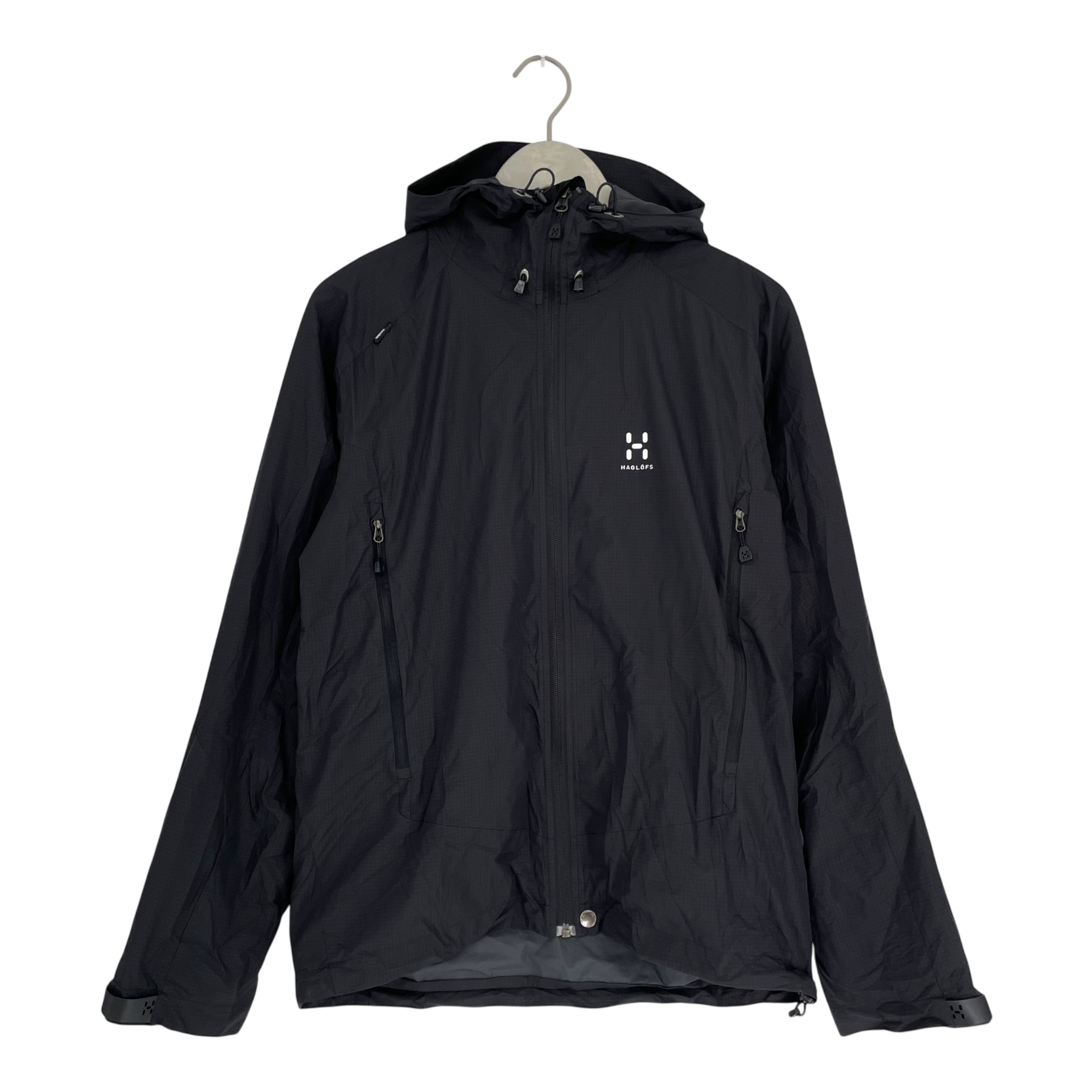 Haglöfs men's Glide shell jacket is a light, packable, breathable and windproof shell jacket with Gore-Tex® WINDSTOPPER® mambrane. Two pockets, extended back hem with an adjustable drawstring, and a three-way adjustable hood.