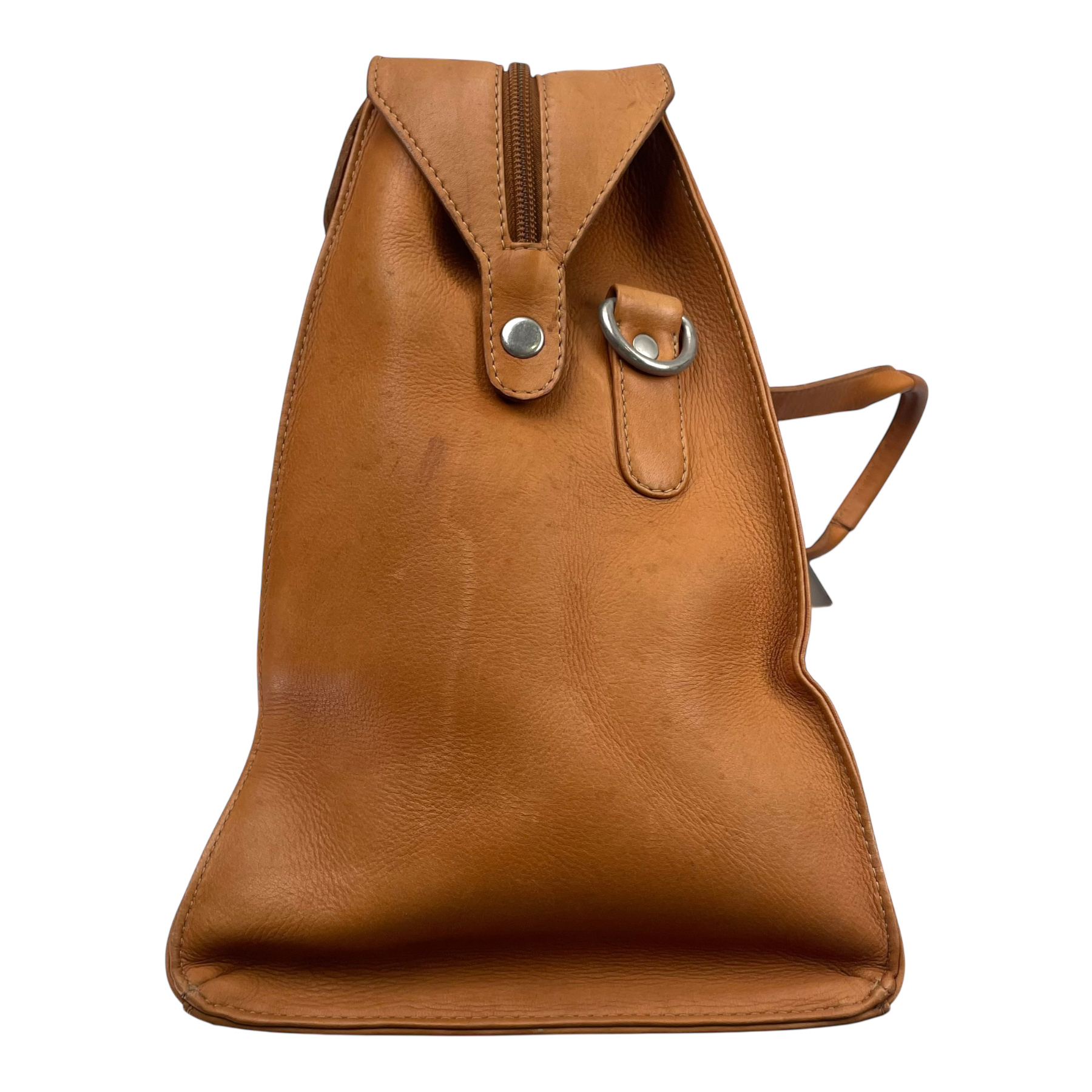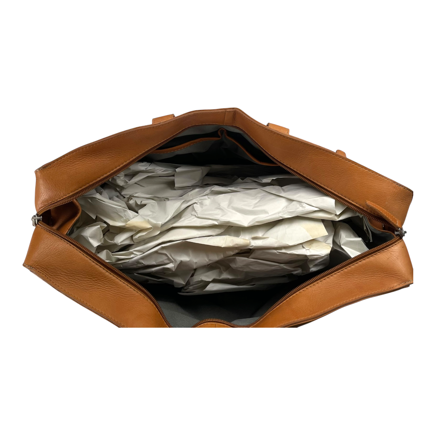 Harold's Bags weekender bag with two handles. The combination of the high-quality processed leather and the timeless cuts of the bags convey an authentic feeling that emphasizes the the beautiful patina created by regular use. There is a zipper closure main compartment and one small pocket on the back.