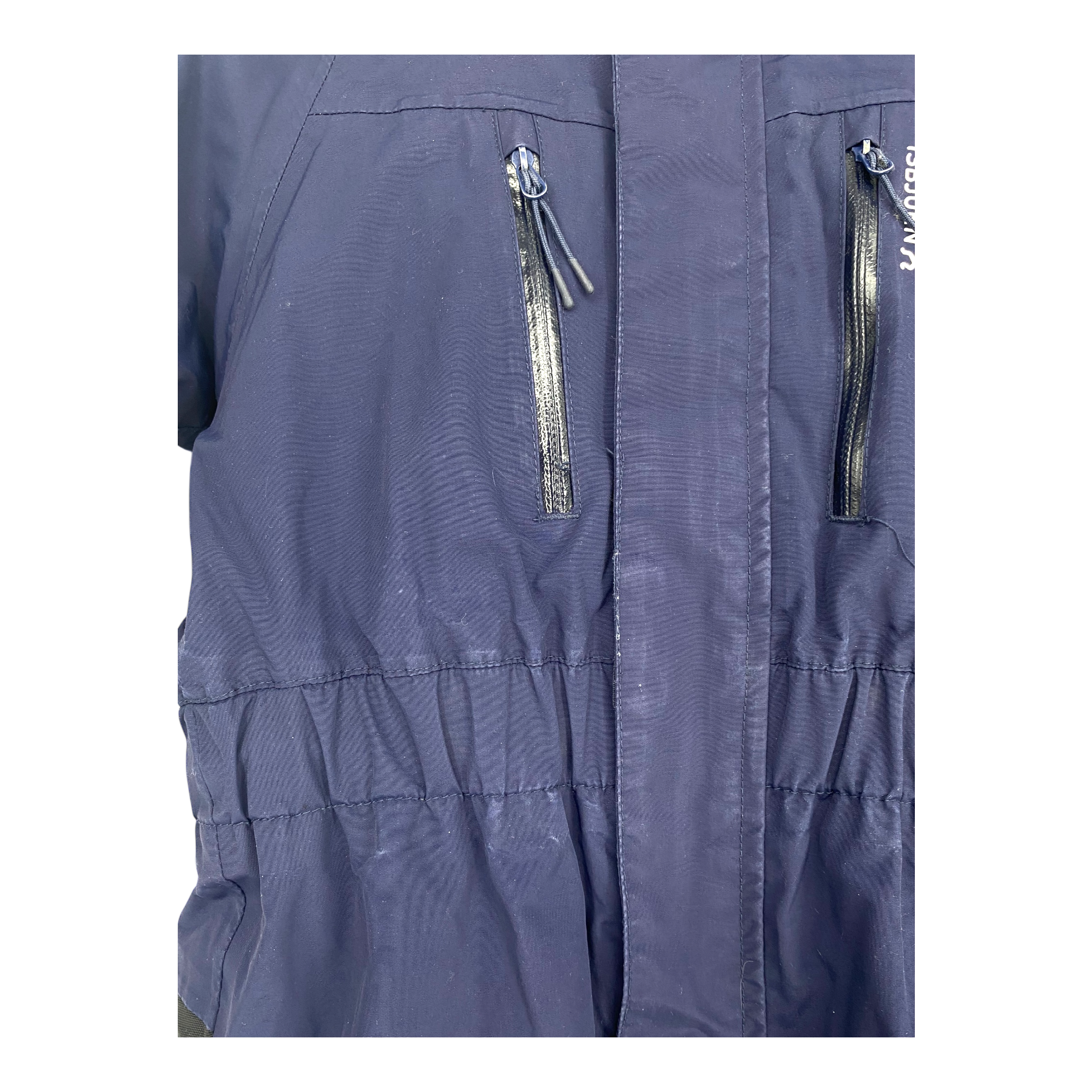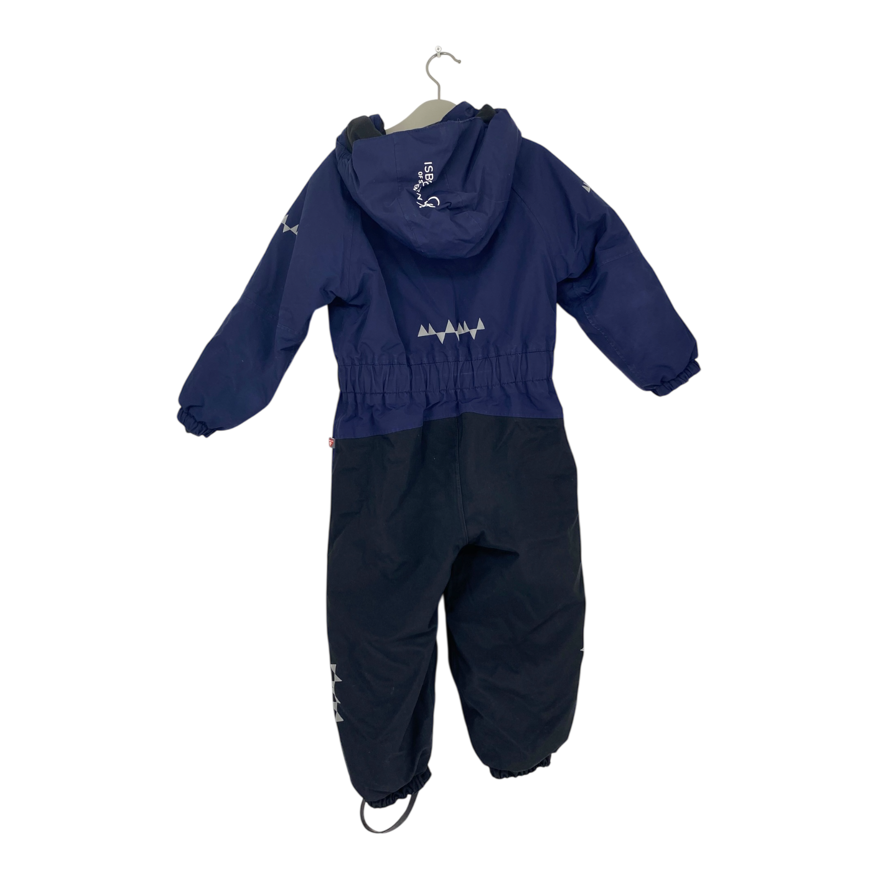 Isbjörn of Sweden winter snowsuit overall is originally a durable waterproof winter snowsuit. Overall is padded and has two pockets on the front. One foot loop is missing.