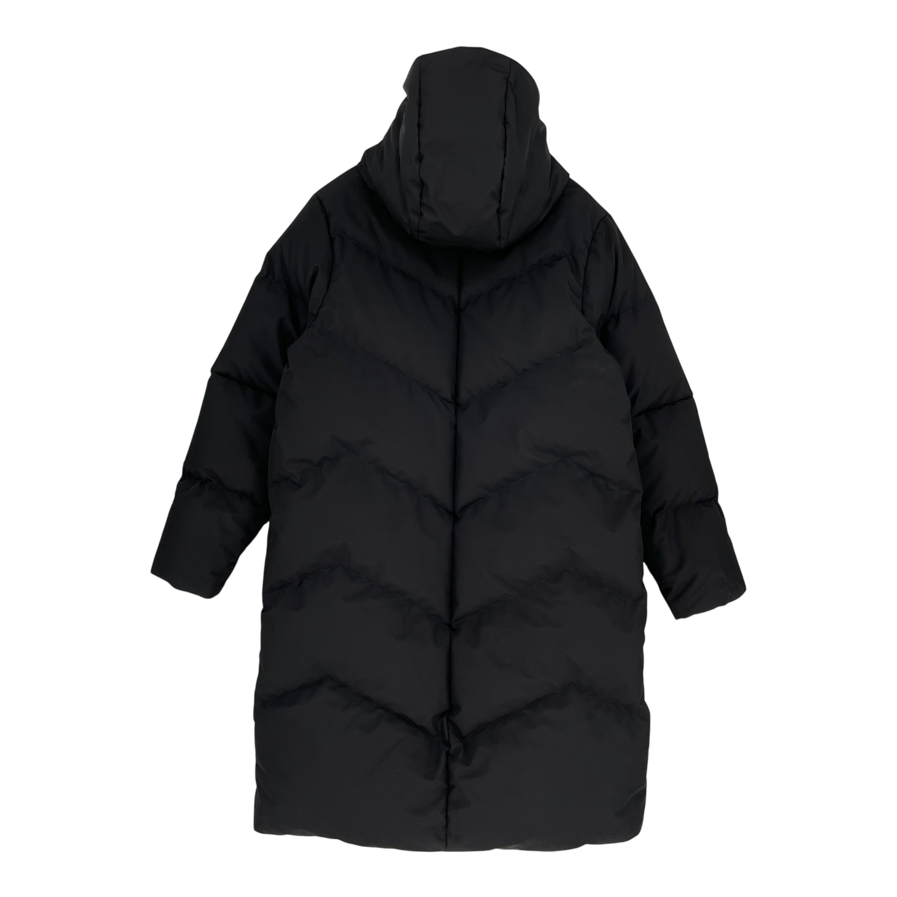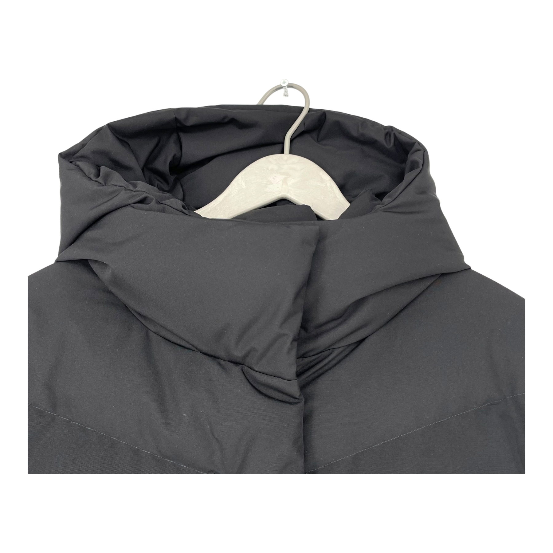 Joutsen Reina down jacket has a diagonal stitching that creates a striking zigzag pattern that stands out from the crowd. The jacket tapers gently downwards and is attractively plush. The sleeves have a nice loose fit. The sleeves taper slightly towards the cuffs. The practicality of the Reina jacket is enhanced by its large hood and soft inner collar, which provide warmth and protection against cold weather. The warmth is guaranteed by the 100% responsibly produced and scientifically pure down filling. The jacket has two front pockets with zippers. The snap buttons and the double-slider fastening zipper adds comfortability and daily functionality in the front.