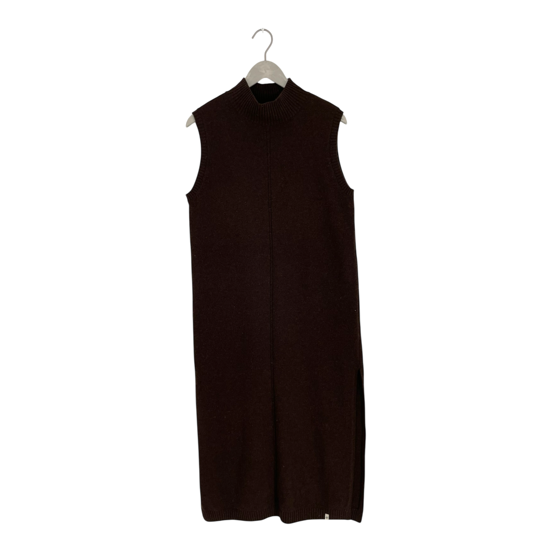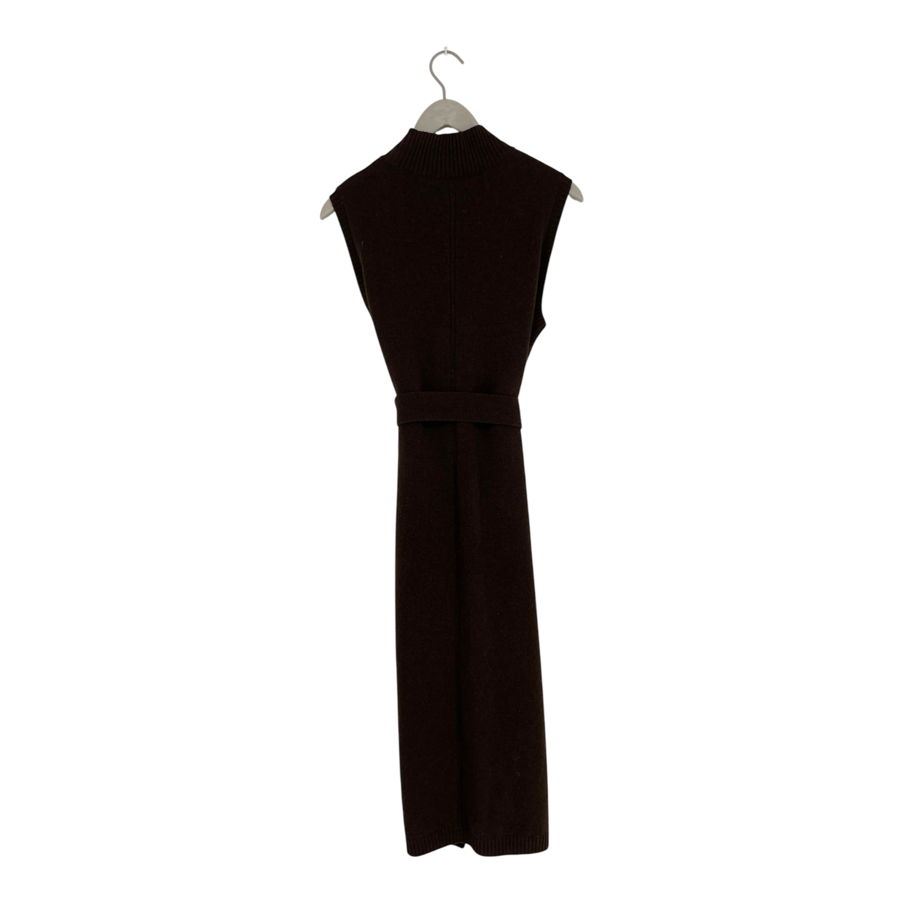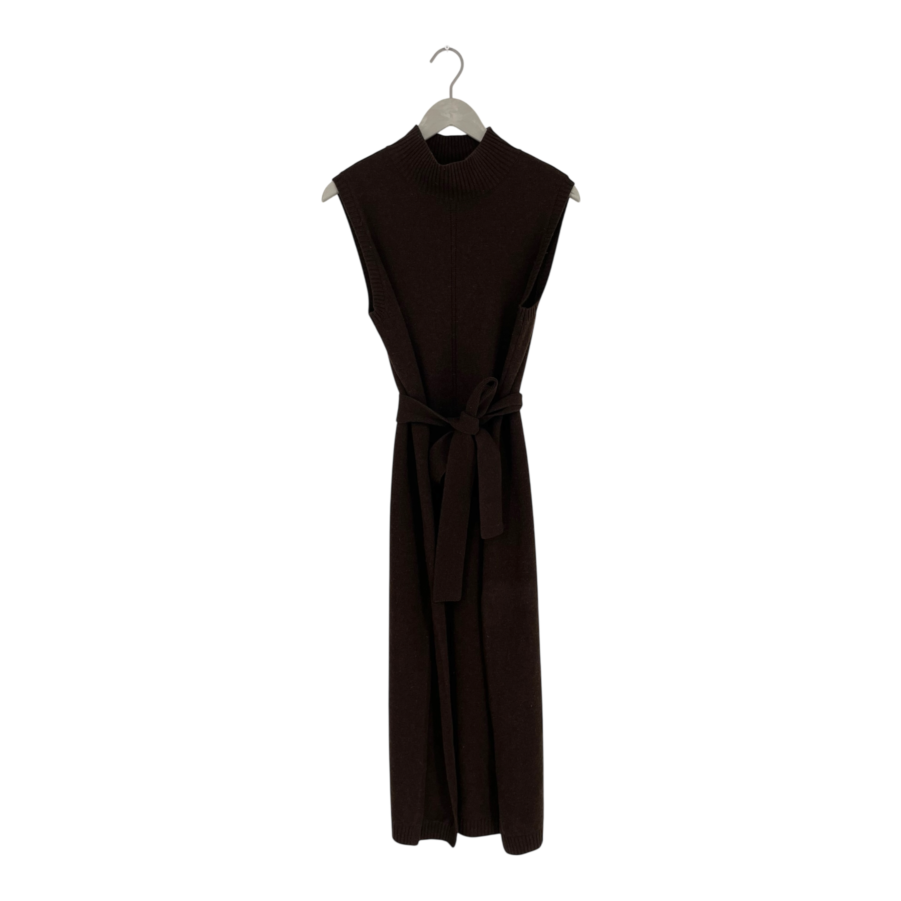Kaiko sleeveless turtleneck wool dress with removable knit belt and slits on the sides.