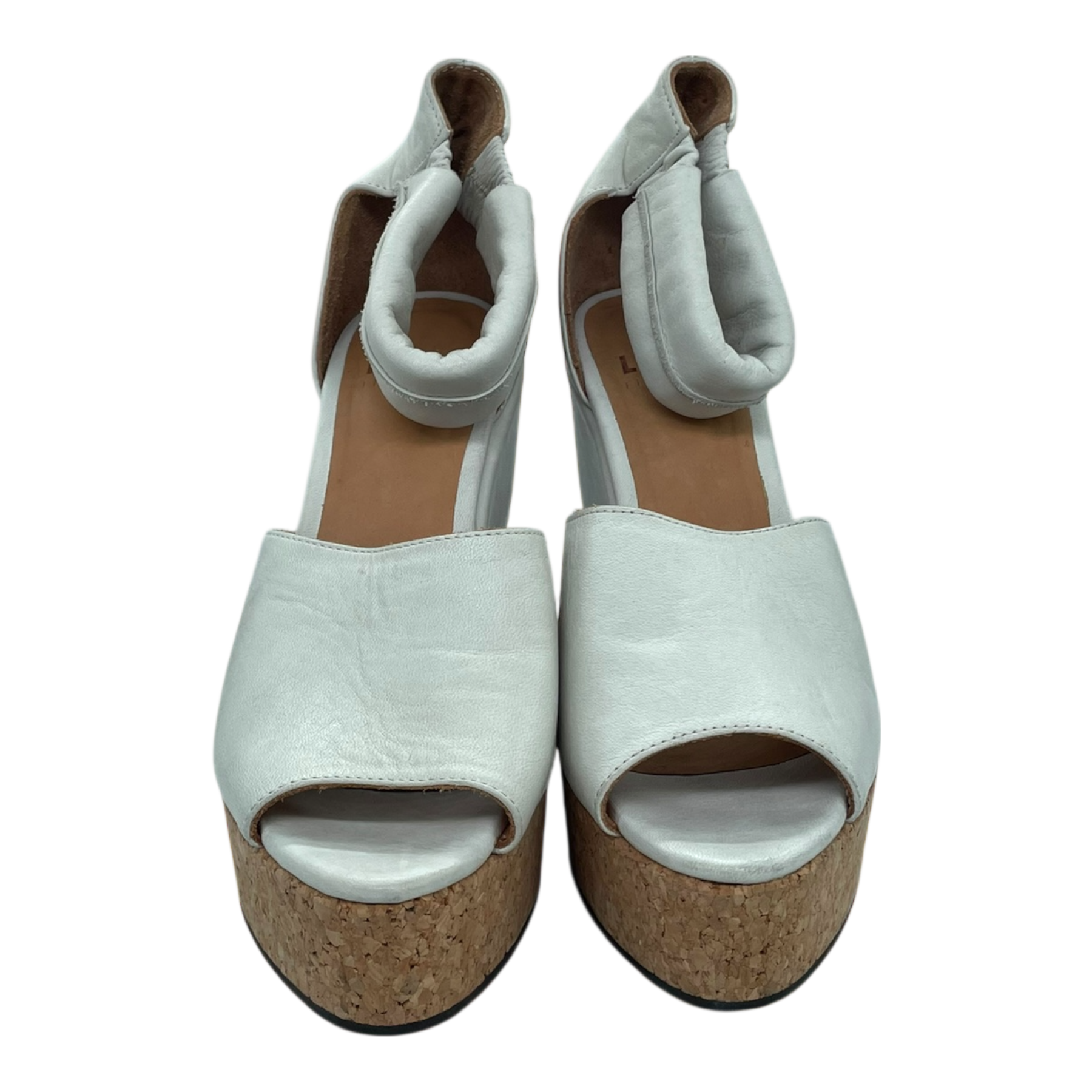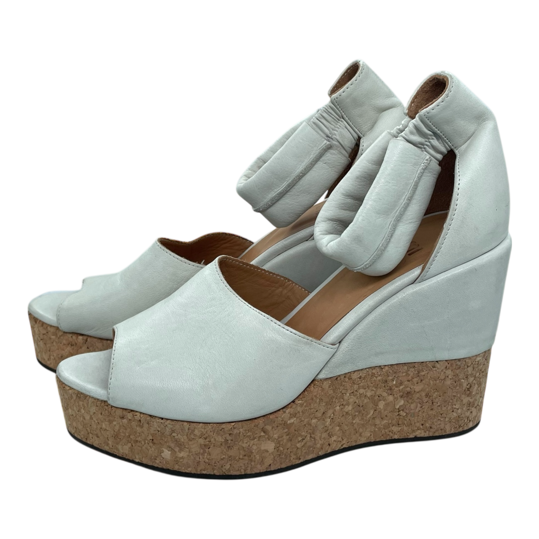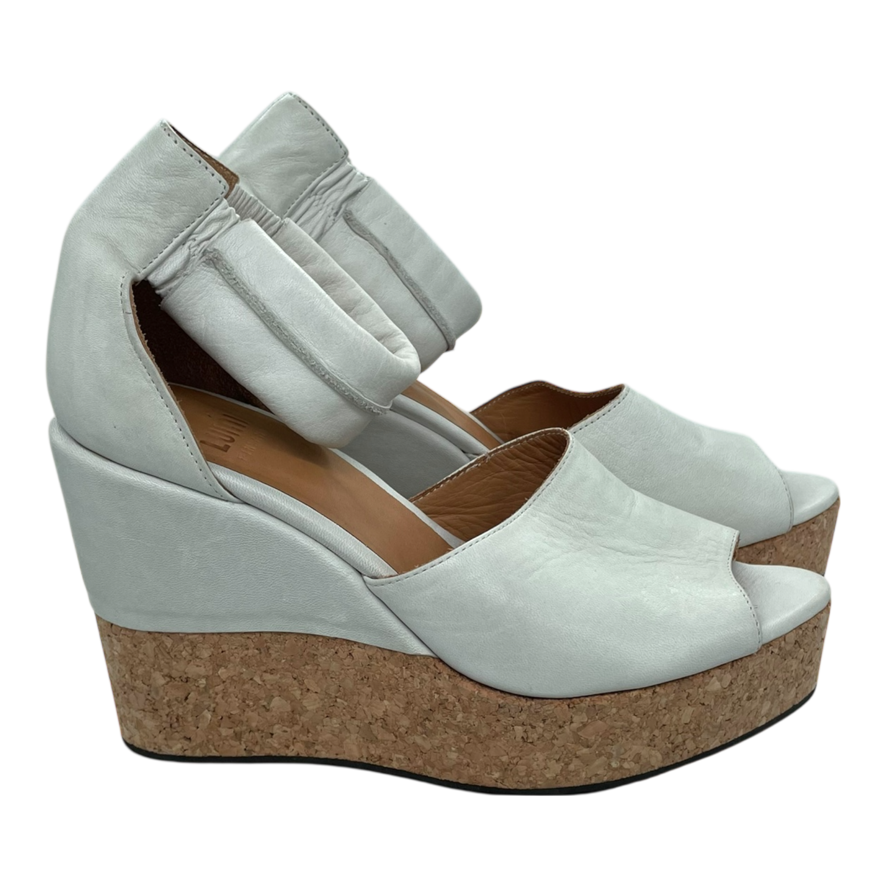 LUMI leather shoes with 10 cm heel, open toe, and elastic ankle strap.