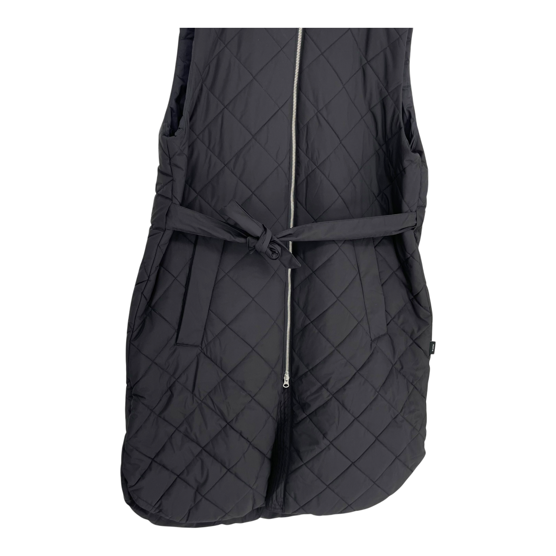 Makia Aura vest is a relaxed-fitting longer quilted vest with a stand-up collar and curved hem. The Aura Vest is finished with welt pockets and belt detail on the waist. For milder weather or layering.